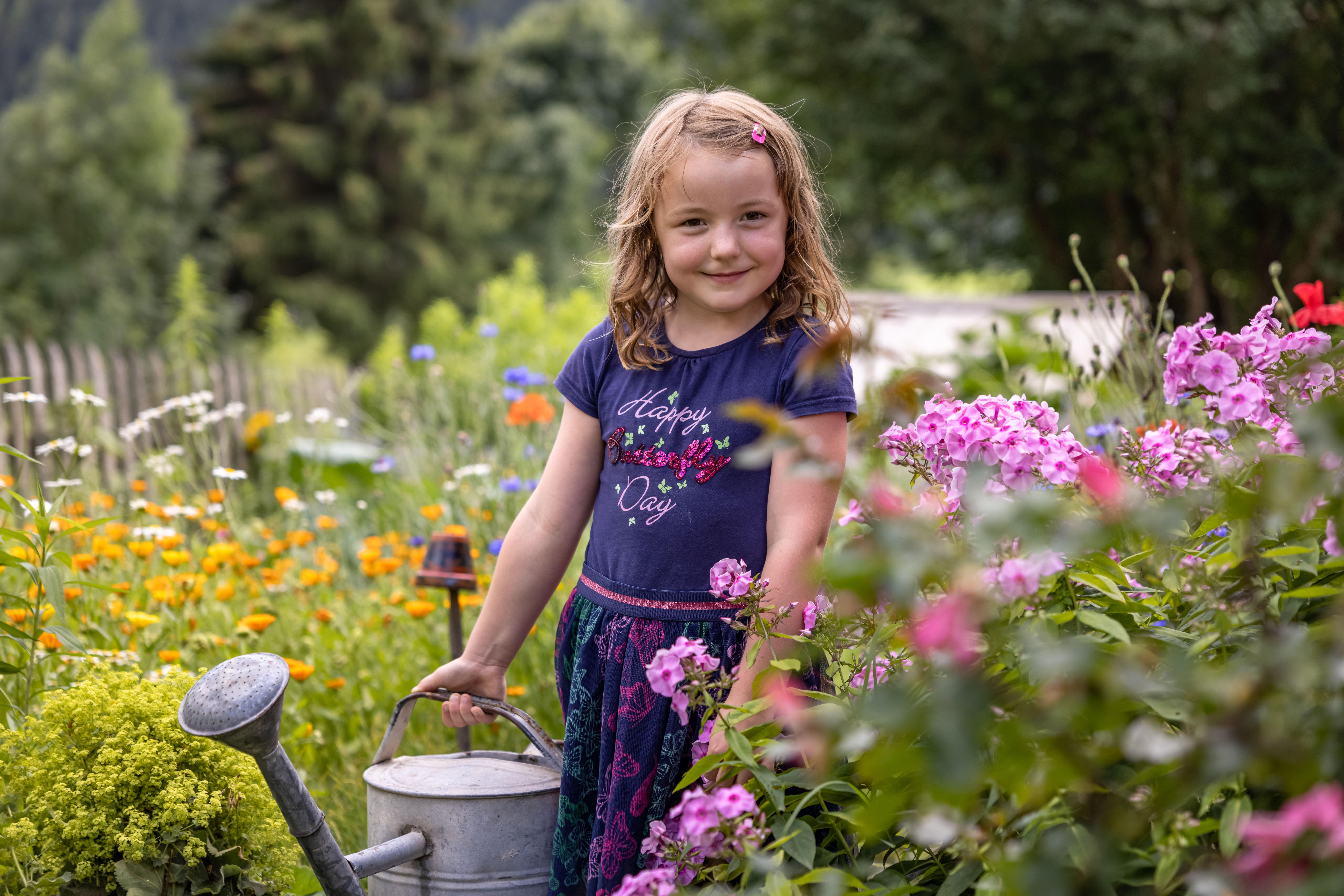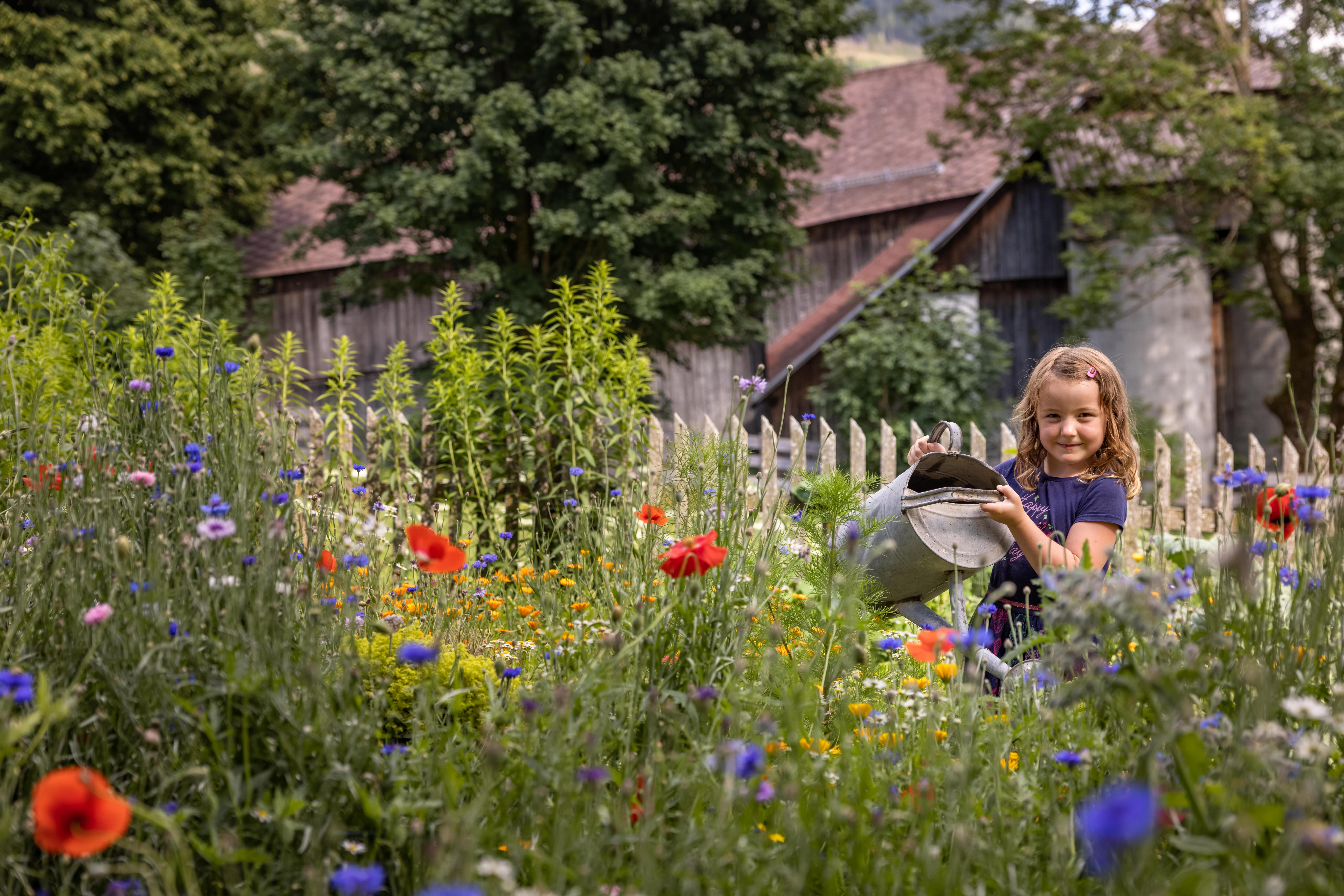 Im Sommer morgens mit einer frisch aufgebrühten Tasse Kaffe, die warmen Sonnenstrahlen auf der Haut, die Kinder toppen schon im Garten und alle sind glücklich. Am frühen Abend nach dem Ausflug auf der Heidi Alm oder einer Wanderung mit Gondelfahrt in St. Oswald noch schnell mit in den Stall, die Kühe füttern. Das ist aktiver Urlaub am Bio-Bauernhof.
