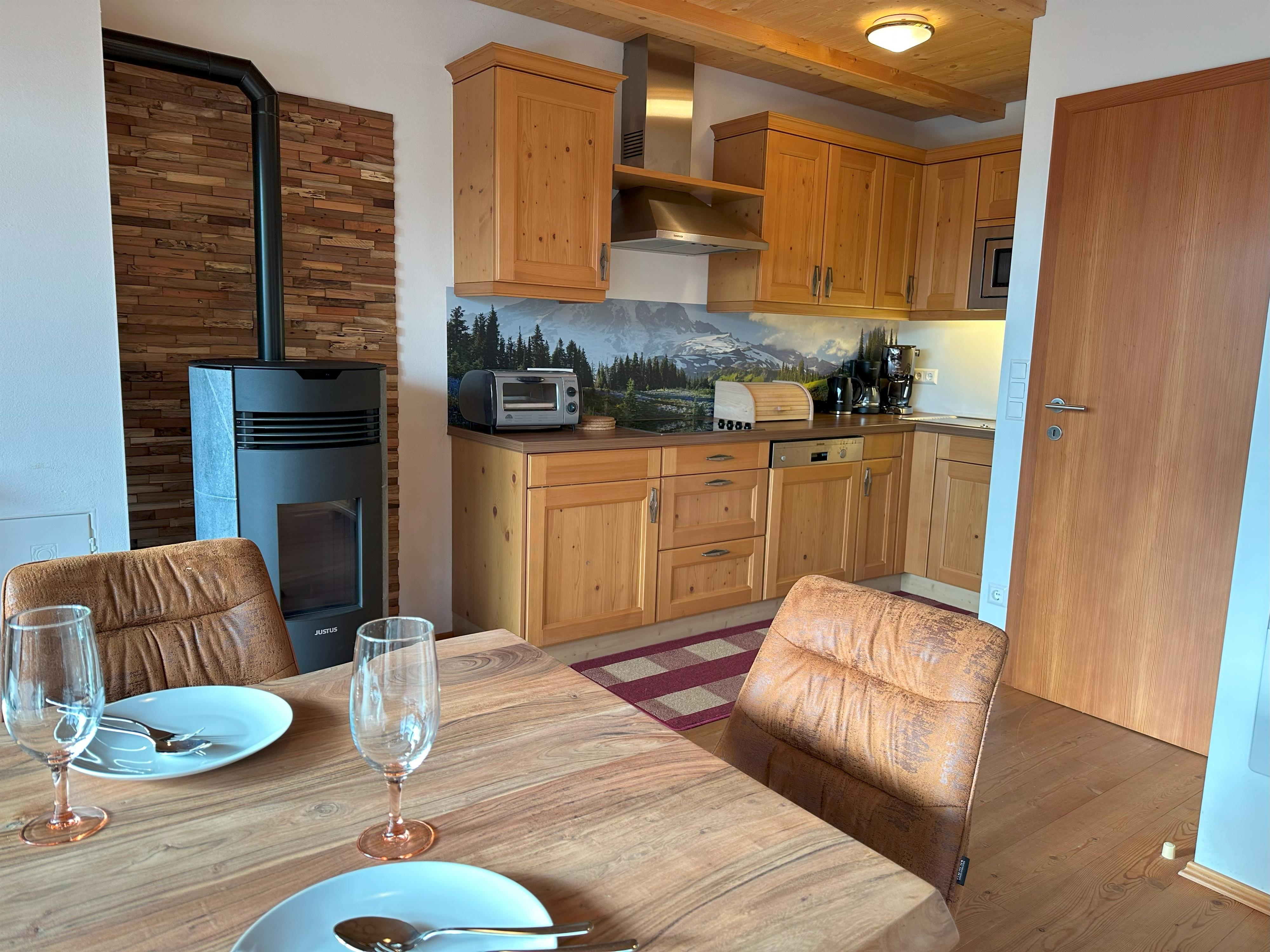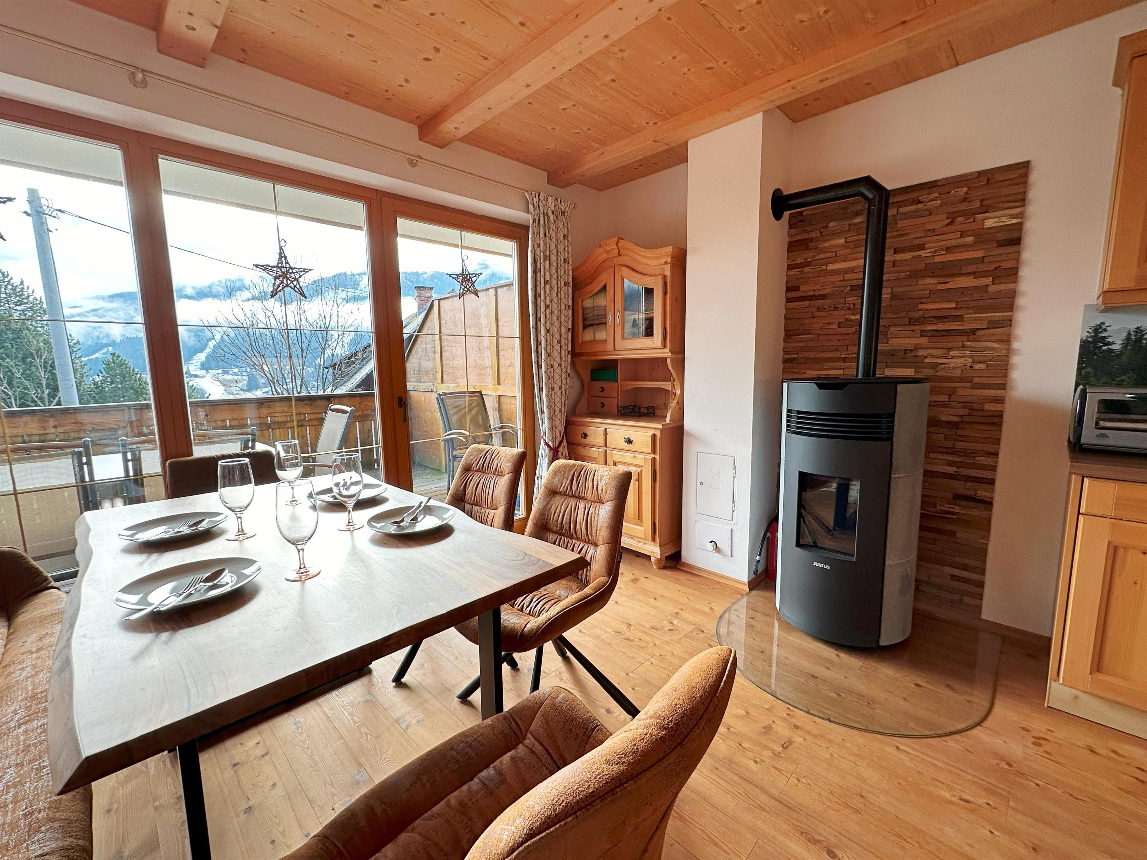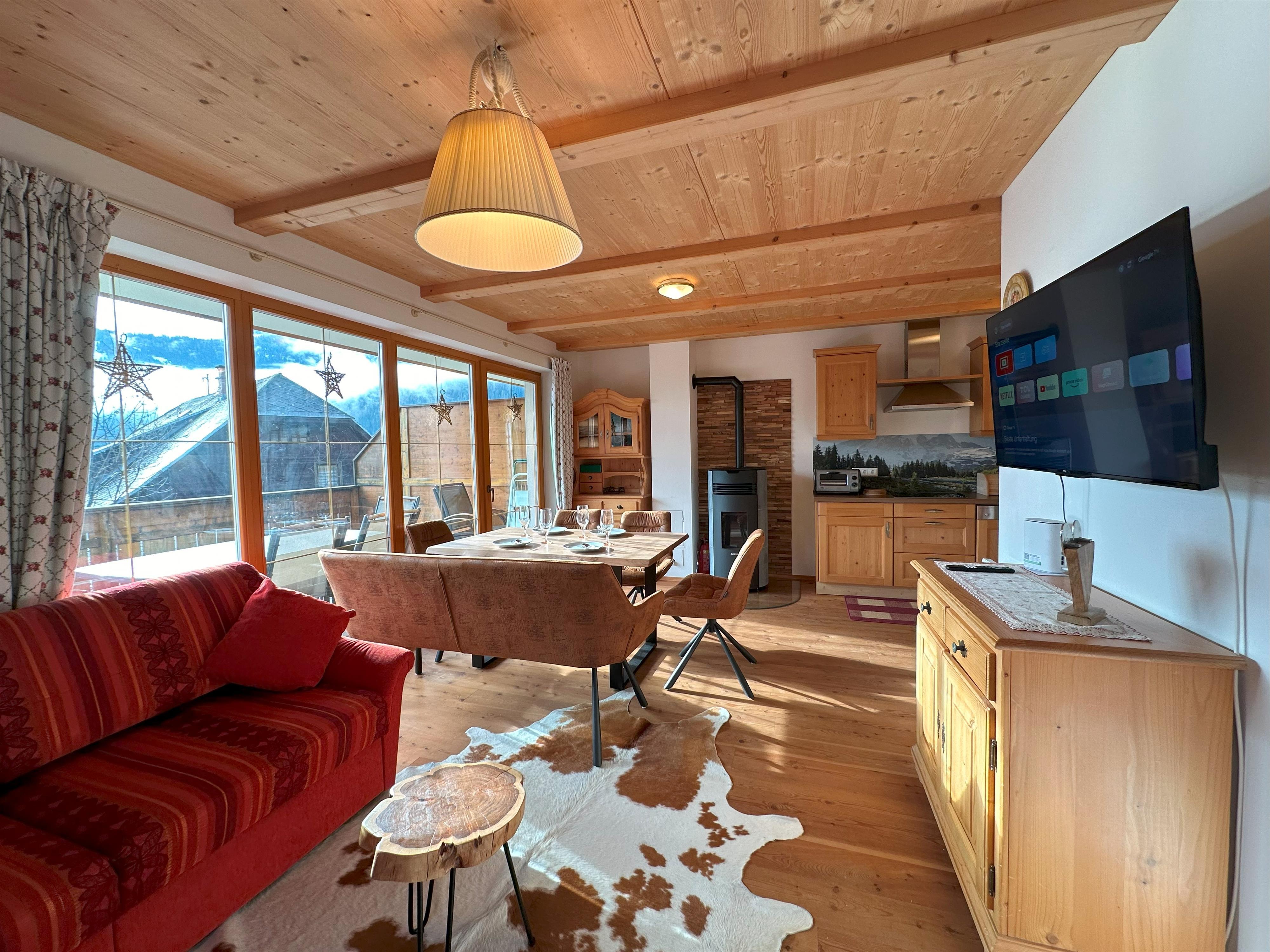 Helle und neue, SKI-TO-DOOR Wohnung für bis zu 7 Gästen im Ortsteil Obertschern , in panoramischer Lage mit Blick auf Tal und Skipiste, 5 Autominuten von Zentrum entfernt. Die Sonnwiesbahn liegt 50 m entfernt .