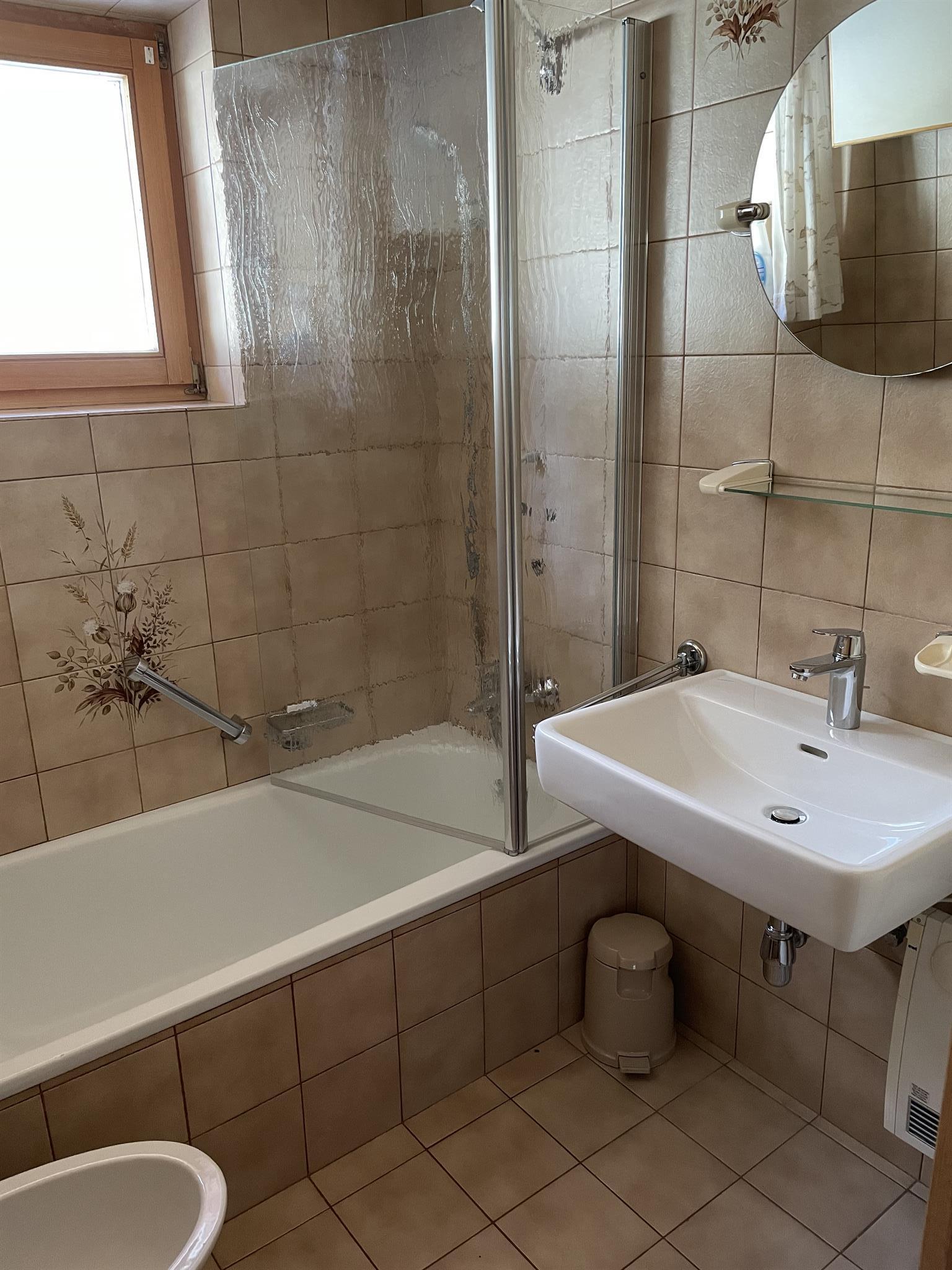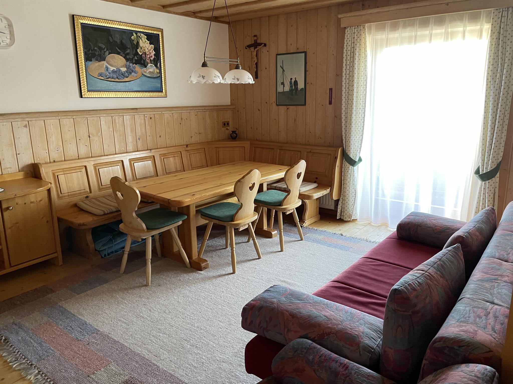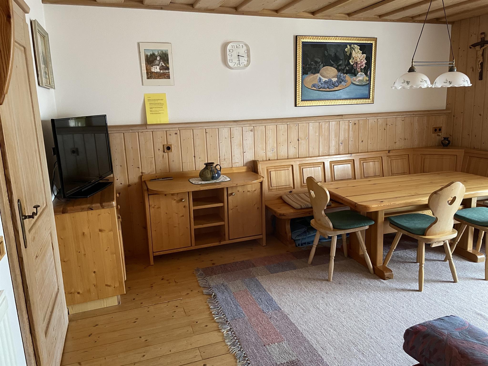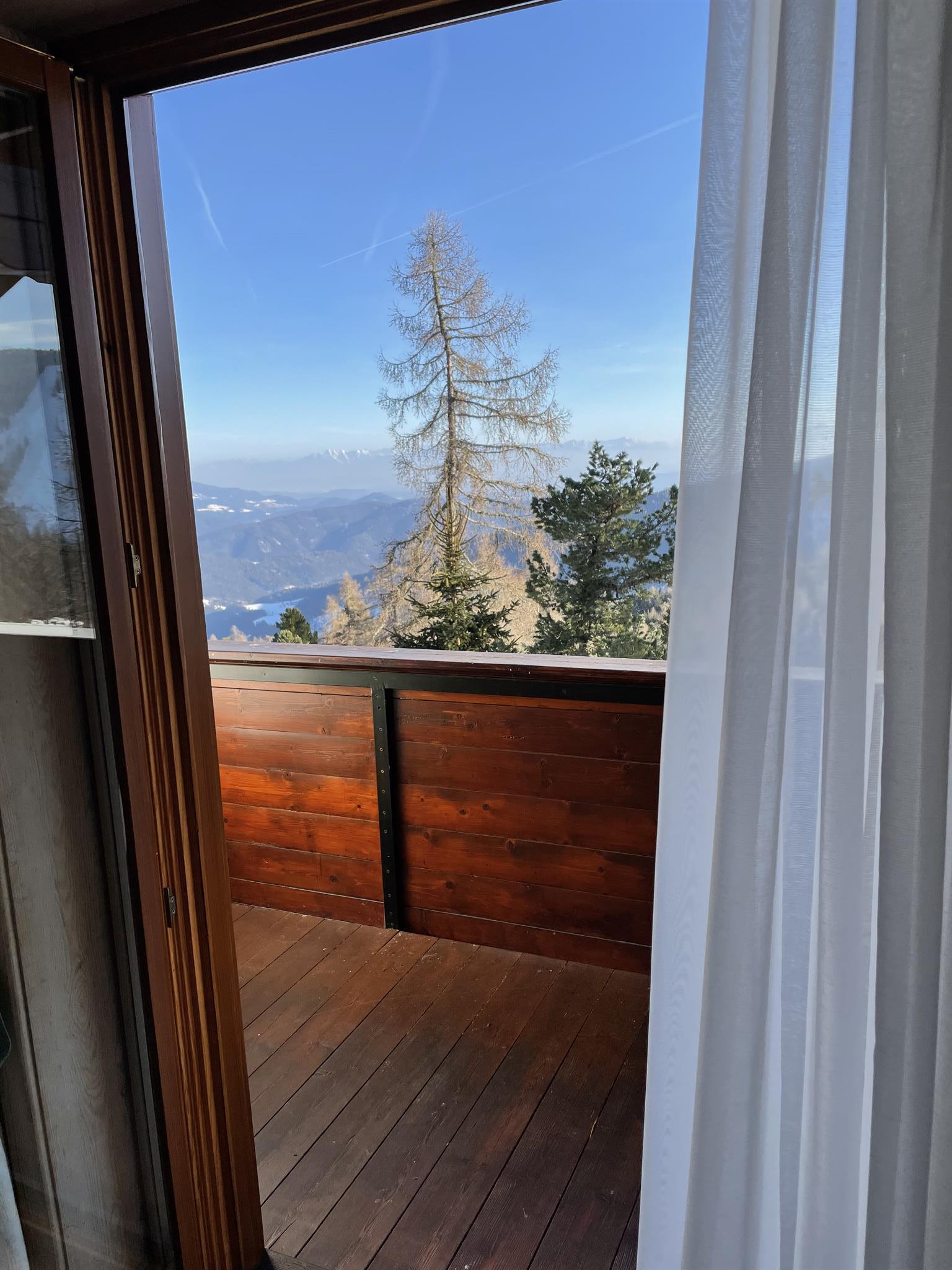 Vom gemütlichen Wohnraum führt eine Türe auf den südlich gelegenen Balkon mit herrlichem Panorama, der sich über die gesamte Breite des Wohnraumes erstreckt.