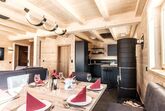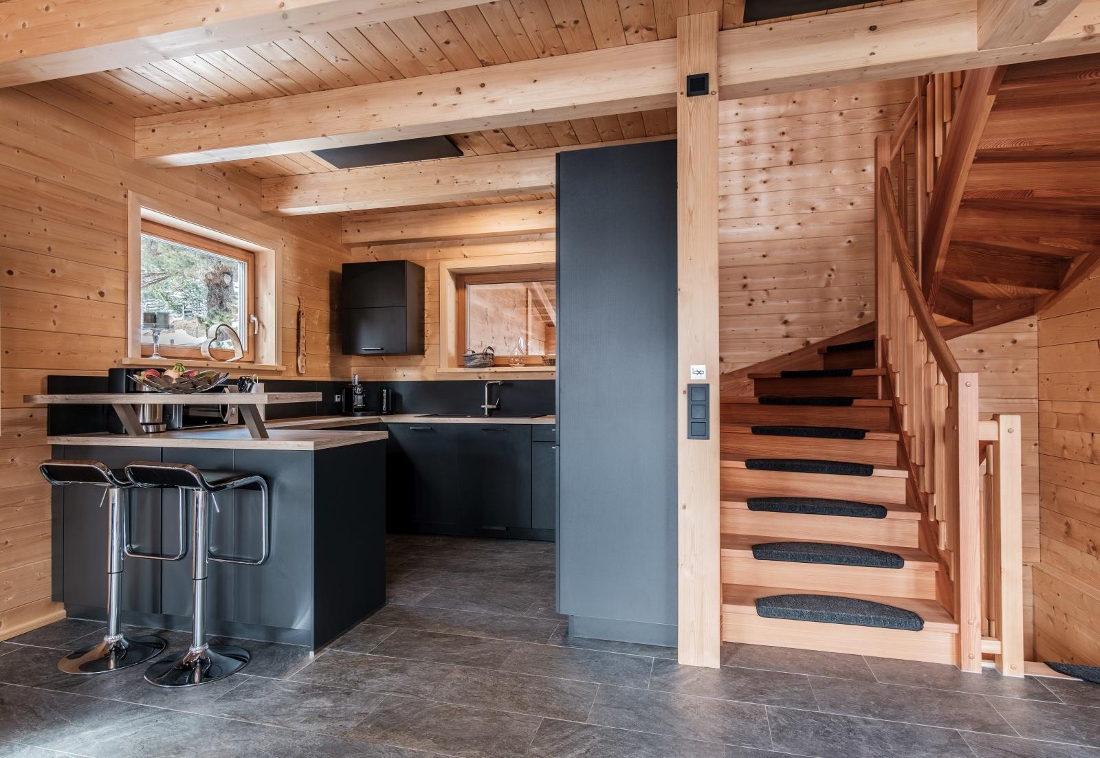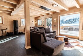 Das Wohnzimmer mit der offenen Küche und Theke lädt zum Verweilen ein. Während die Kinder nach einem aufregendem Skitag Netflix schauen, kochen Sie gemütlich in der Küche und lassen dabei den Blick über das Kaminfeuer und die Gipfel streifen. Alle Schlafzimmer verfügen ebenfalls über Sitzgelegenheiten und Sat-/Smart-TVs sowie 2 über einen Balkon. Auf der großen Süd-Panoramaterrasse finden Sie alles, was Sie für den perfekten Urlaub in den Bergen brauchen – Außenkamingrill, Hotpot und Gartenmöbel. Alle Extras vom WLAN bis hin Waschmaschine sind selbstverständlich inkludiert.