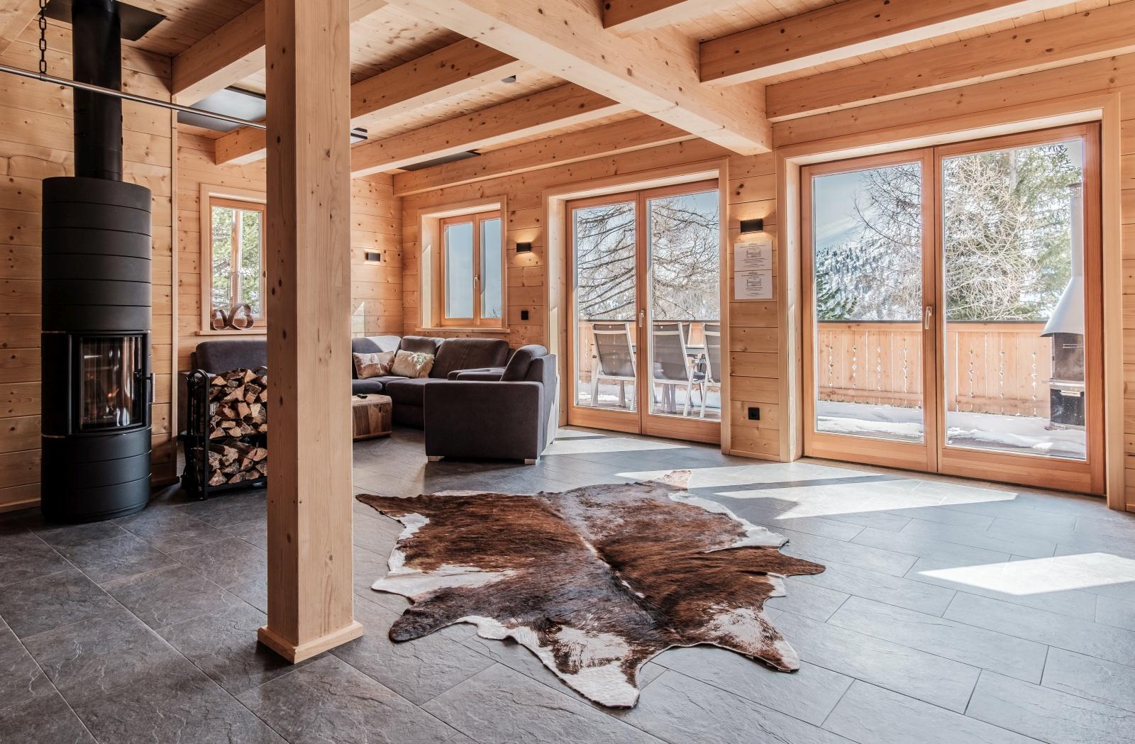 Die 2021 neu errichteten 4 Luxuschalets „Bergwinter“ liegen direkt an der Baumgrenze am Fuße der Heidialm mit herrlichem Bergpanorama und direktem Zugang zum Skigebiet. Sie bieten mit 145m² Wohnfläche zzgl. der Terrassen und Balkone über 2 Wohnebenen reichlich Platz für Erholung und die ganze Familie. Der Wohn- und Wellnessbereich sowie die Panoramaterrasse befinden sich im Erd- und die 3 großzügigen Schlafzimmer im Obergeschoss. Insgesamt gibt 3 Doppelbetten und 2 Schlafsofas sowie Babybetten, sodass die maximale Gästeanzahl 10 Personen (6 Erwachsene, 2 Kinder und 2 Babys) beträgt.