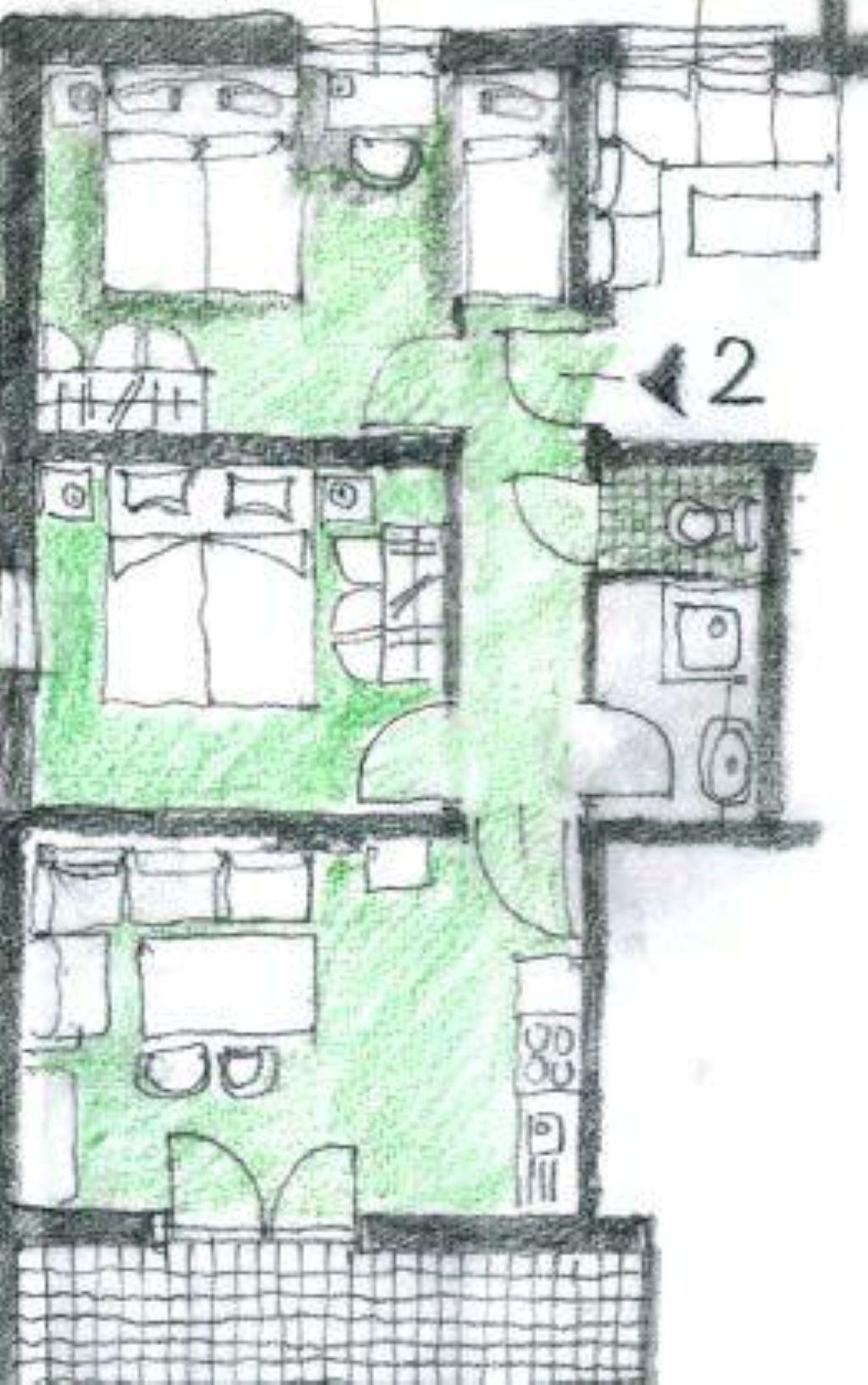 Vorraum, Dusche, WC, 2 Doppel-Schlafzimmer, Wohn-Esszimmer mit Kitchenette,