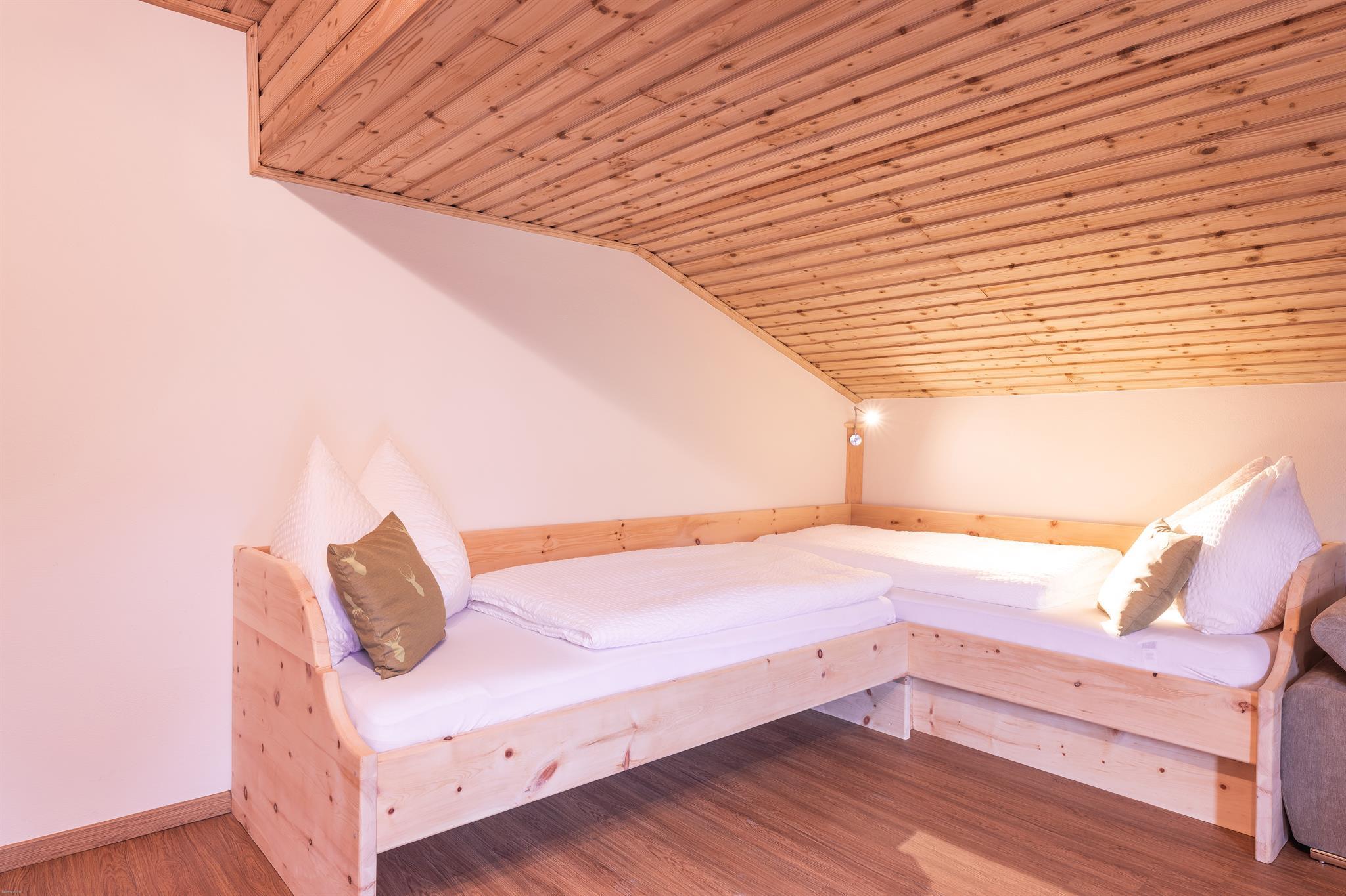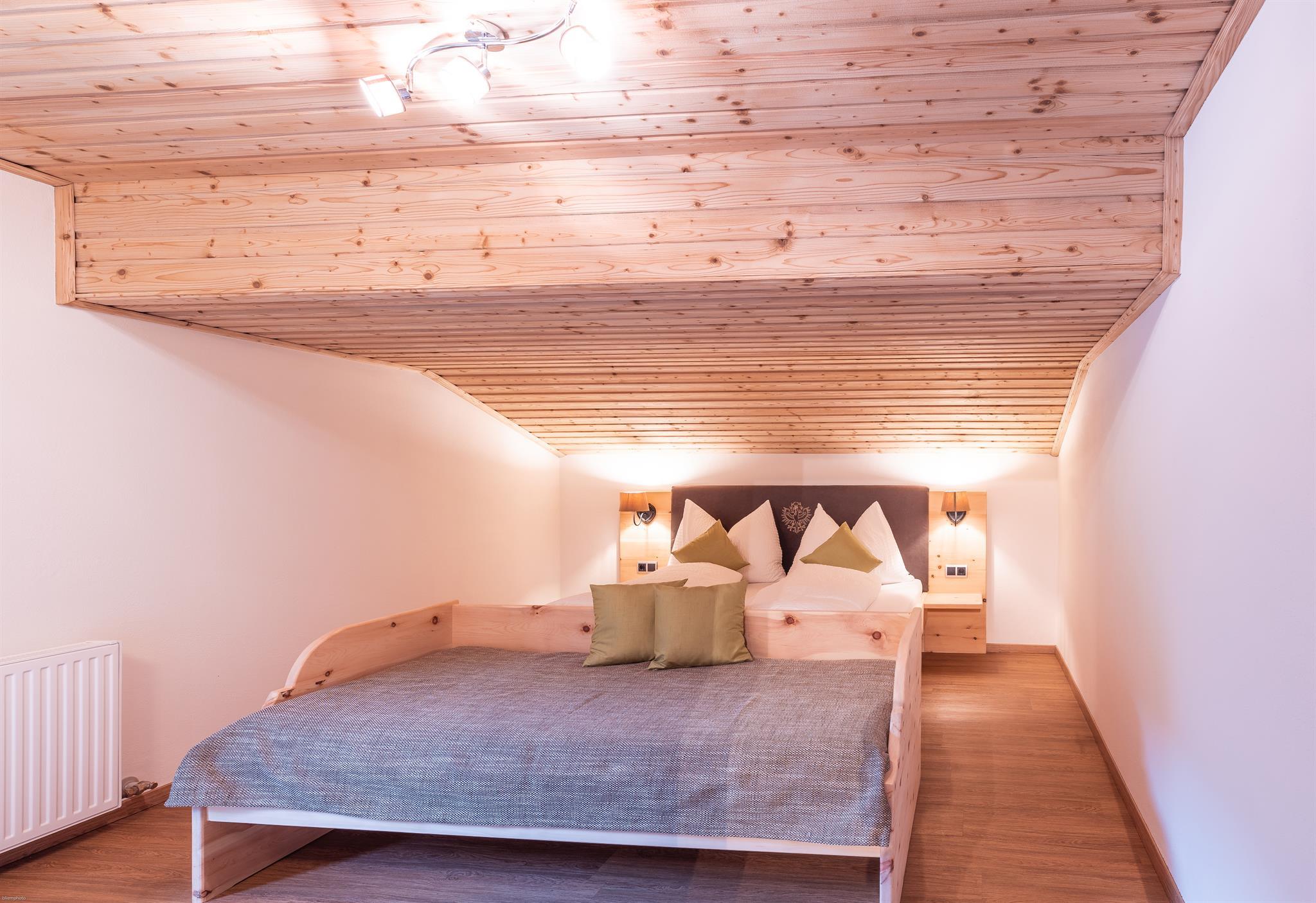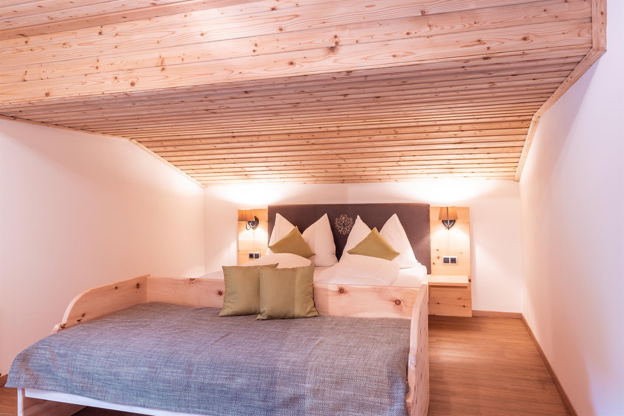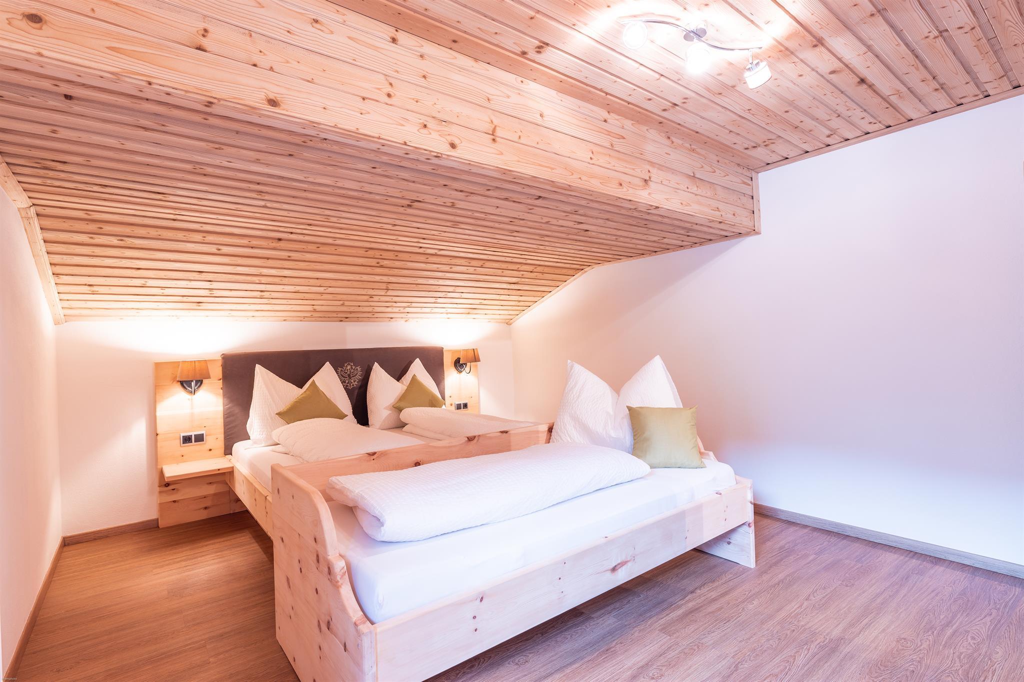 In unseren 2 Schlafzimmern und im Wohn-Schlafzimmer wurde die dufentende Tiroler Zirbe verarbeitet. Dieses Holz hat eine positive Wirkung auf das Wohlbefinden des Menschen und senkt nachweislich die Herzfrequenz. Eine niedrige Herzfrequenz bzw. ein langsamer Ruhepuls tritt auch bei Ausdauersportlern auf. Darüber hinaus bewirkt die Zirbe ein leichteres Einschlafen und hilft gegen Schlafstörungen.