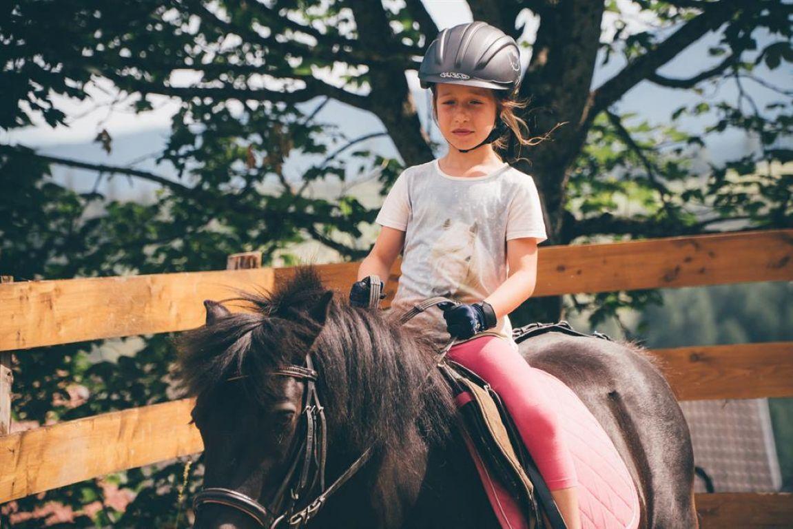 Für alle Pferdeliebhaber gibt es die Möglichkeit, unsere Ponys und Pferde zu putzen, zu satteln und zu füttern. Auf dem hofeigenen Reitplatz können die Kinder erste Reiterfahrungen sammeln oder ihre Fähigkeiten verbessern.