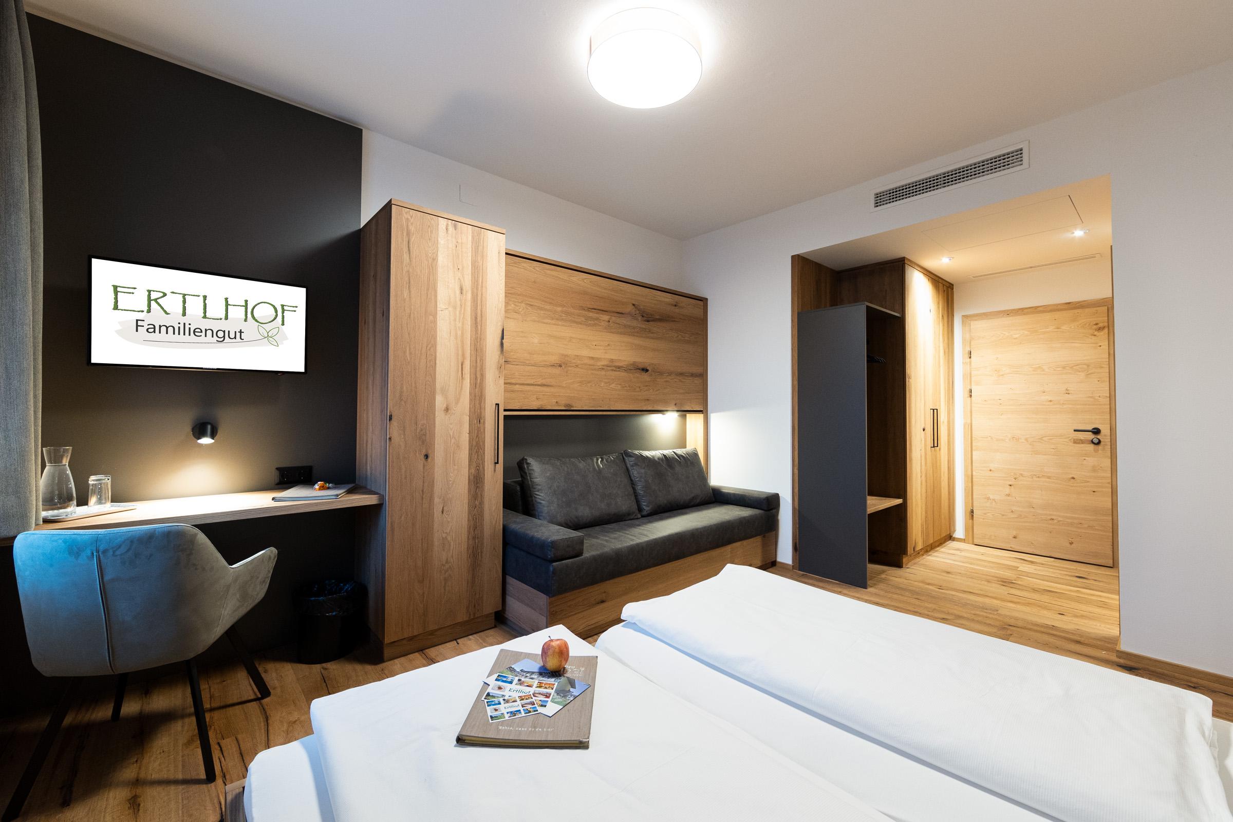 Das Familiengut Ertlhof verfügt über insgesamt 27 modern und geschmackvoll eingerichtete Zimmer in jeder Kategorie, vom Doppelzimmer bis hin zum Green Garden Familienzimmer. Alle Etagen sind natürlich auch mit dem Aufzug erreichbar. Der jetzige Zimmertrakt wurde im Jahr 2012 vollkommen modernisiert. Vor allem auch der Gartenbereich mit Freibad und Kinderbecken, aber auch die zur Erholung und Entspannung einladenden grünen Wiesen, Felder und Wälder der zugehörigen Landwirtschaft, runden das Urlaubsangebot ab.