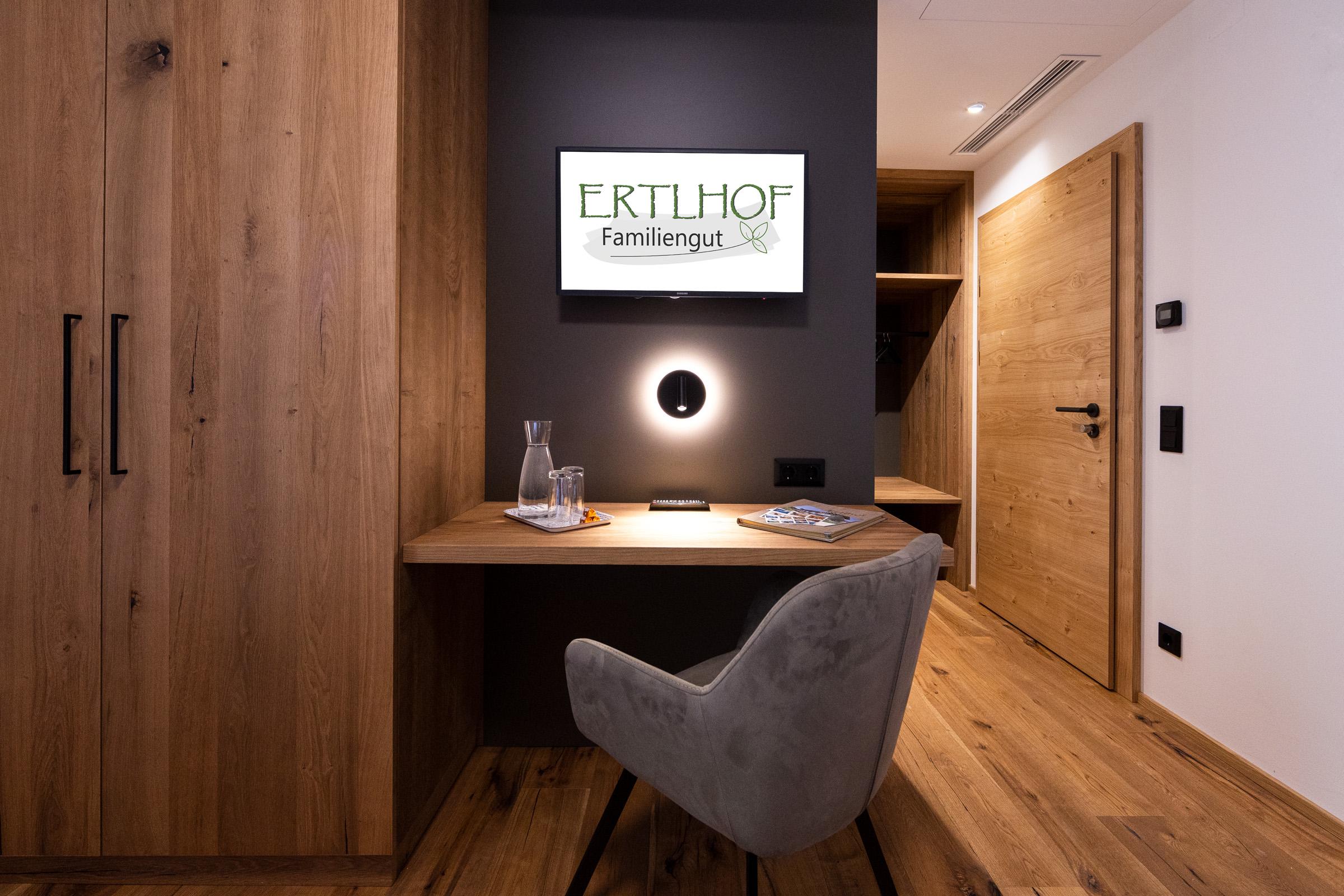Das Familiengut Ertlhof verfügt über insgesamt 27 modern und geschmackvoll eingerichtete Zimmer in jeder Kategorie, vom Doppelzimmer bis hin zum Green Garden Familienzimmer. Alle Etagen sind natürlich auch mit dem Aufzug erreichbar. Der jetzige Zimmertrakt wurde im Jahr 2012 vollkommen modernisiert. Vor allem auch der Gartenbereich mit Freibad und Kinderbecken, aber auch die zur Erholung und Entspannung einladenden grünen Wiesen, Felder und Wälder der zugehörigen Landwirtschaft, runden das Urlaubsangebot ab.