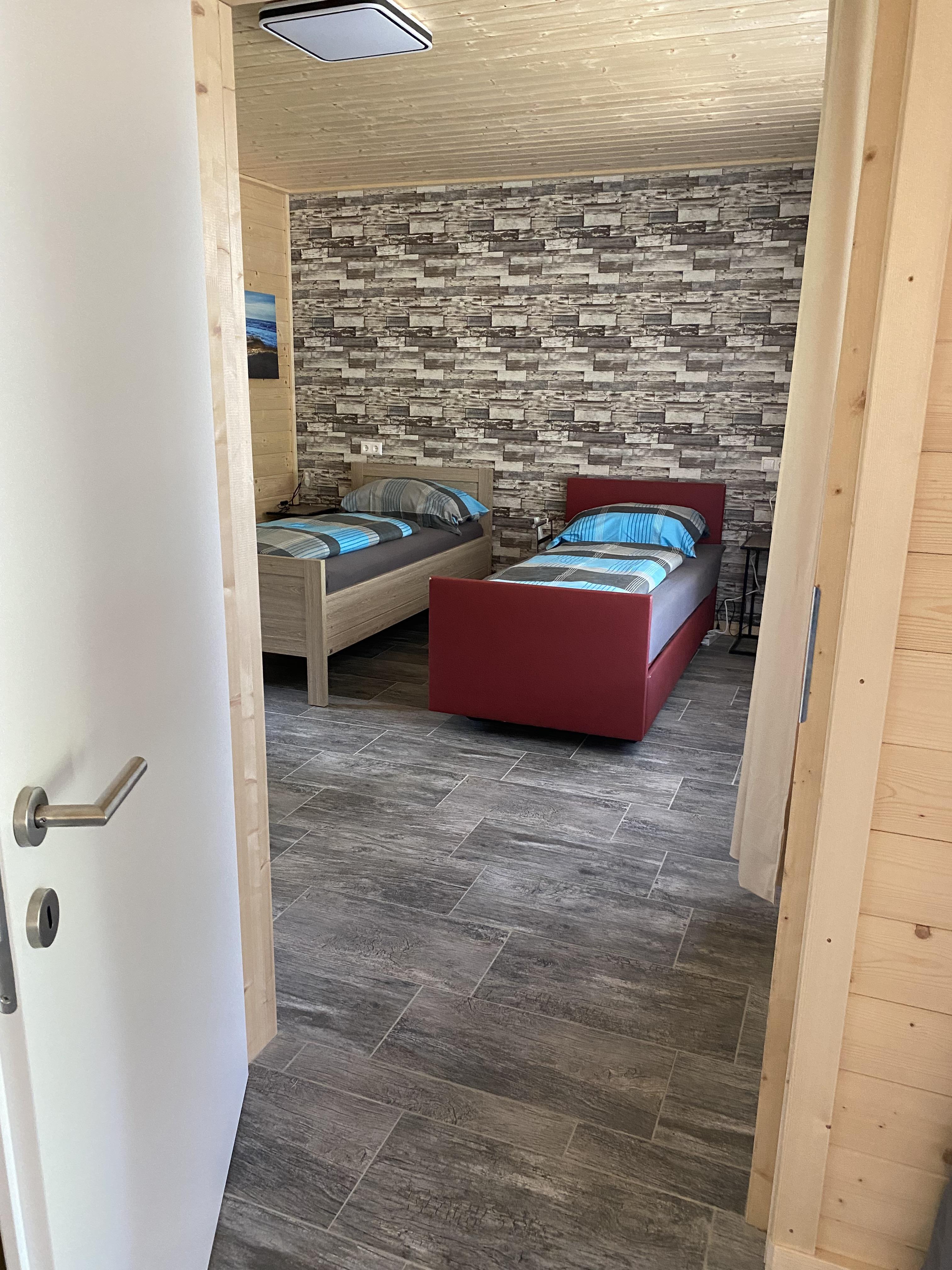 In Juni 2022 fertig gestellte behindertengerechte/barrierefreie Bungalows für Jedermann. Ob für Familien, Senioren oder Behinderte- sie sind für alle geeignet. Fischen im Rollstuhl möglich. Direkter Zugang zum Privatstrand mit Geländer, um in den See zu kommen. See ist nicht gleich tief, die ersten paar Meter sind seicht. Bungalow 1 bietet Platz für max. 8 Personen und Bungalow 2 und 3 sind beide geeignet für 6 Personen. Auch Gruppenferien sind möglich. Haus 2 und 3 können mit einander gekoppelt werden. Jeder Bungalow hat ein behindertengerechtes Badezimmer und Schlafzimmer. In Bungalow 1 gibt es noch 2 Doppelzimmer extra und in Bungalow 2 und 3 ist jeweils ein Doppelzimmer und ein kleineres Zimmer mit Stockbett vorhanden. Man kann mit Hoch-niederig Betten direkt auf die Terrasse fahren. Viel Platz zum Leben. Der Strand wird von alle Gäste benützt. Eislaufplatz vor der eigenen Haustür. Kurz gesagt - für Jedermann ist etwas dabei. Waschmachinebenützung nur auf Anfrage und gegen Gebühr möglich. In der Bungalow ist kein Waschmachine.