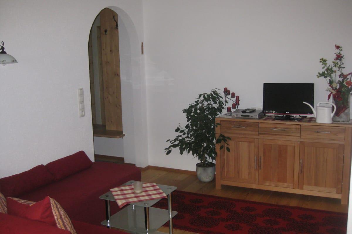 Die Ferienwohnung Morgensonne ist nach Osten ausgerichtet und besteht aus einem Dreibettzimmer mit Balkon, einem weiteren Doppelzimmer mit Zustellbett für kleine Kinder, einer Wohnküche mit Küchenzeile, Esstisch und Couch mit TV, einem WC und einem Duschbad mit Fenster. Kinderausstattung wie Gitterbett, Wickelauflage, Kinderstuhl uvm. ist vorhanden.