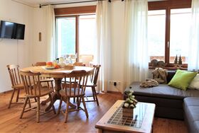 Bequeme Ferienwohnung für 4 bis 6 Gäste einen Steinwurf von der Maibrunn Skipiste, erreichbar zu Fuss. Ganz hinter dem Haus grüne Wiesen mit vielen Wandermöglichkeiten. Im 1. Stock mit Aufzug. Zwei doppelte Schlafzimmer, zwei Bäder, geräumiges Wohnzimmer mit doppelter Schlafcouch, Küche, zwei Balkone, beide mit Aussicht, kleiner Skiraum und Parkplatz in der Garage.