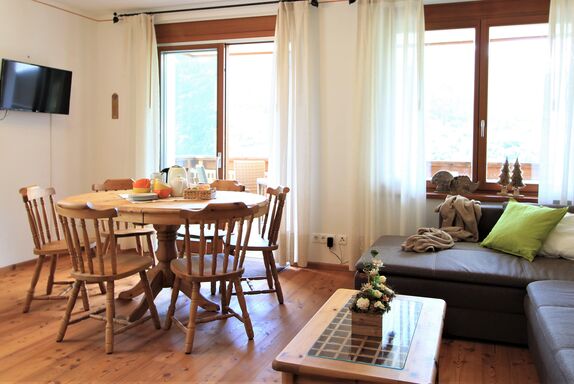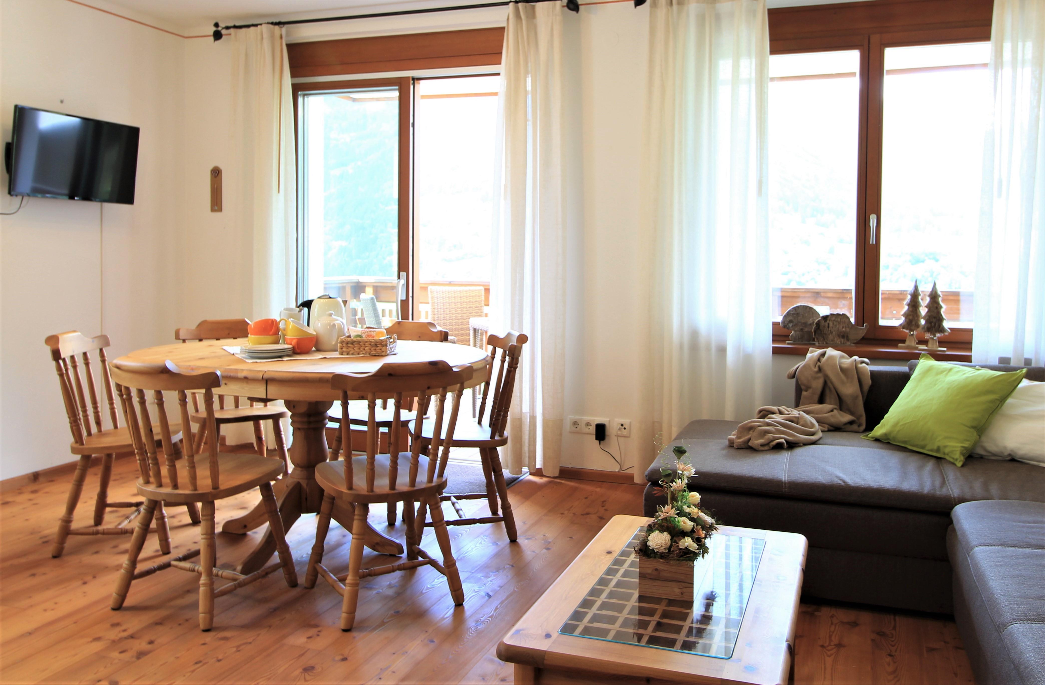 Bequeme Ferienwohnung für 4 bis 5 Gäste einen Steinwurf von der Maibrunn Skipiste, erreichbar zu Fuss. Ganz hinter dem Haus grüne Wiesen mit vielen Wandermöglichkeiten. Im 1. Stock mit Aufzug. Zwei doppelte Schlafzimmer, zwei Bäder, Waschmachine, geräumiges Wohnzimmer mit doppelter Schlafcouch, Küche mit Backofen und Geschirrspüler, zwei Balkone, beide mit Aussicht, kleiner Skiraum und Parkplatz in der Garage.