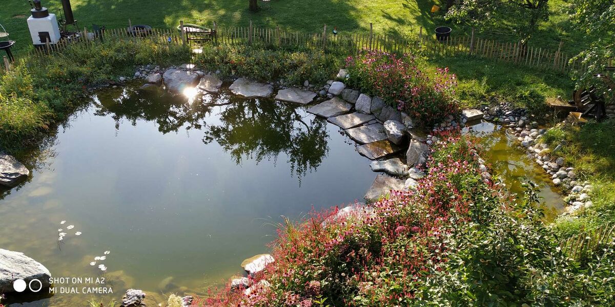 In unserem großzügigen Garten mit Fischteich und Liegewiese haben Sie die Möglichkeit abzuschalten oder einen Grillabend in unserer Grillhütte zu verbringen.