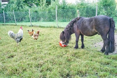 Für unsere kleinen Gäste sind unsere Mini Shettys, Hasen und Hühner sowie Hofkatzen zu bestaunen und natürlich zu streicheln.