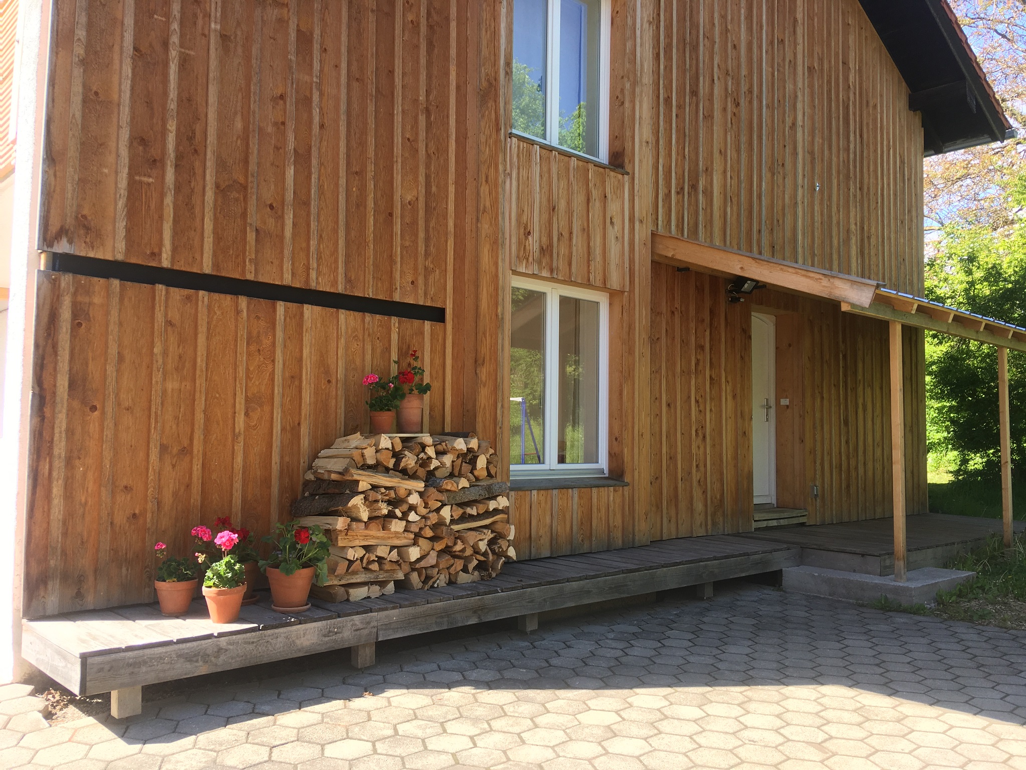 Herzlich Willkommen! Unser Haus liegt im schönen Nußdorf bei Traunstein im oberbayerischen Chiemgau. Die 100qm große Ferienwohnung bietet Platz für 1-5 Erwachsene, für Familien mit bis zu vier Kindern. Ihrem Urlaub als Großfamilie oder mit Freunden steht somit nichts mehr im Wege! Chieming am Chiemsee ist in ca. 6 km sehr gut mit dem Fahrrad oder Auto zu erreichen. Dort ist auch eine Dampferanlegestelle, um die faszinierenden Inseln, die Herreninsel mit seinem Prunkschloß von König Ludwig II und die Fraueninsel mit dem Kloster und der Münsterkirche, die man durchaus einen Kraftort nennen kann, per Schiff zu erreichen.Ausflüge in die Chiemgauer Alpen, in den Rupertigau mit seinem wunderschönem Waginger See, ins Berchtesgadener- aber auch ins Salzburger Land - von unserem Standort aus ist ein abwechslungsreicher Urlaub für Sie ganz nach Ihrem Wunsch möglich. Kultur, Bergwandern, Radfahren oder Chillen am See - unsere Region hält für jeden Geschmack etwas bereit. Wir freuen uns Sie bei uns begrüßen zu dürfen!