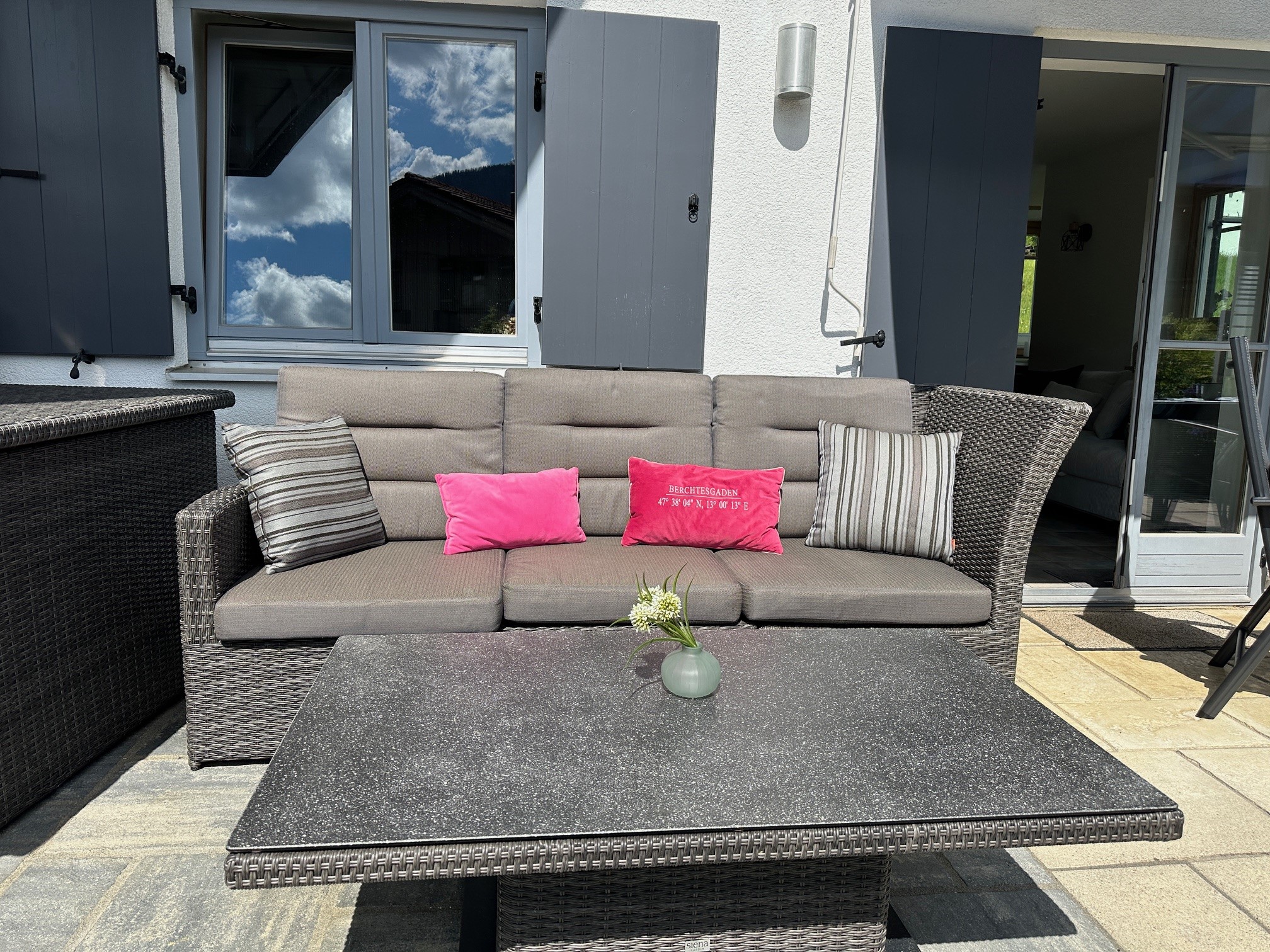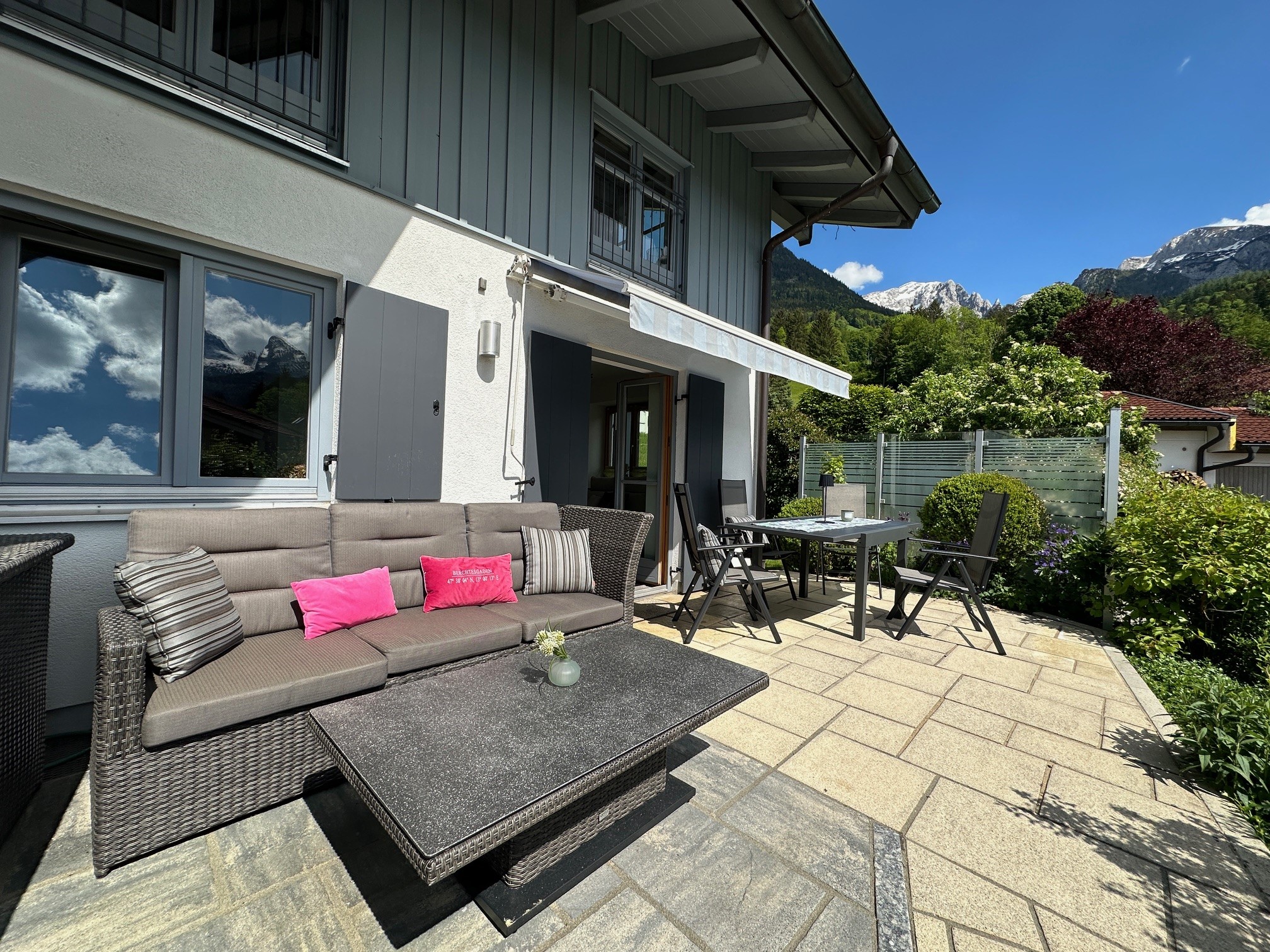 Die Ferienwohnung bietet 2 wunderschöne Terrassen mit tollem Ausblick auf die Berge zum Frühstück mit Bergblick oder Chillen und Erholen.