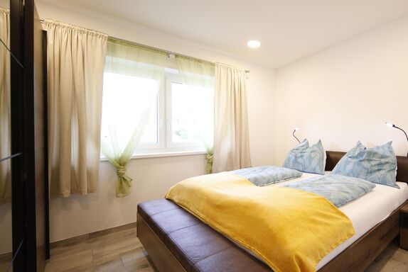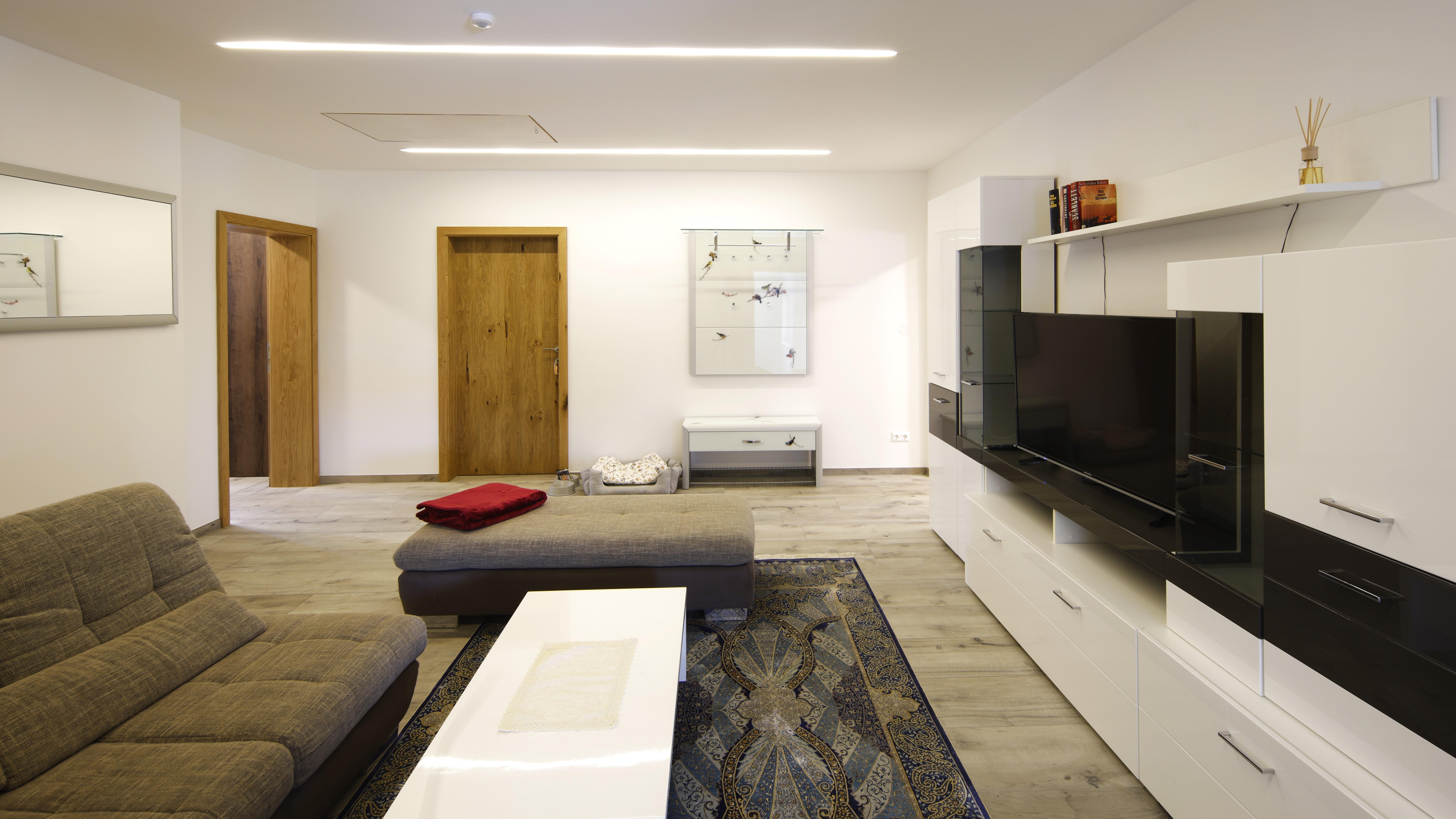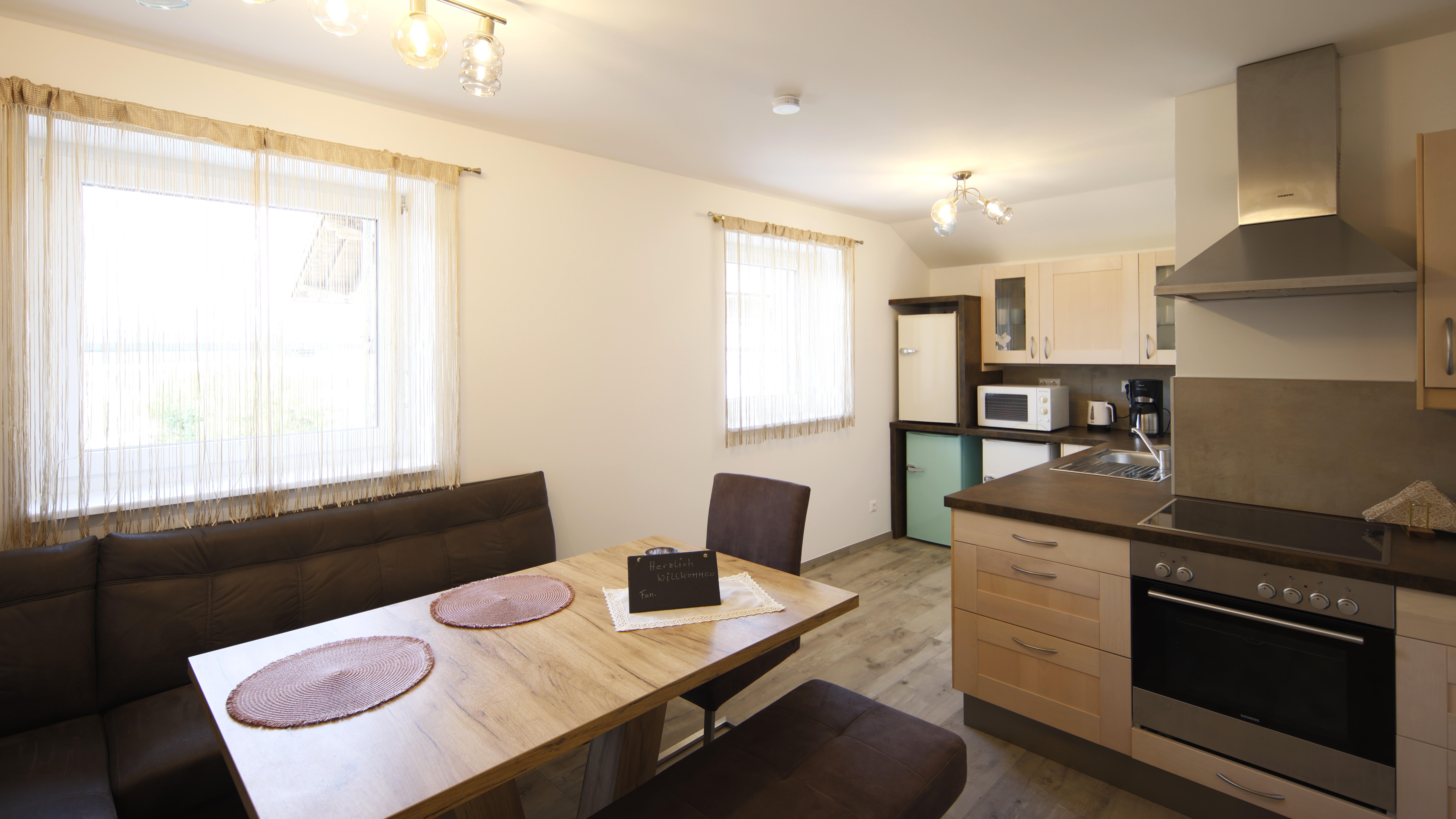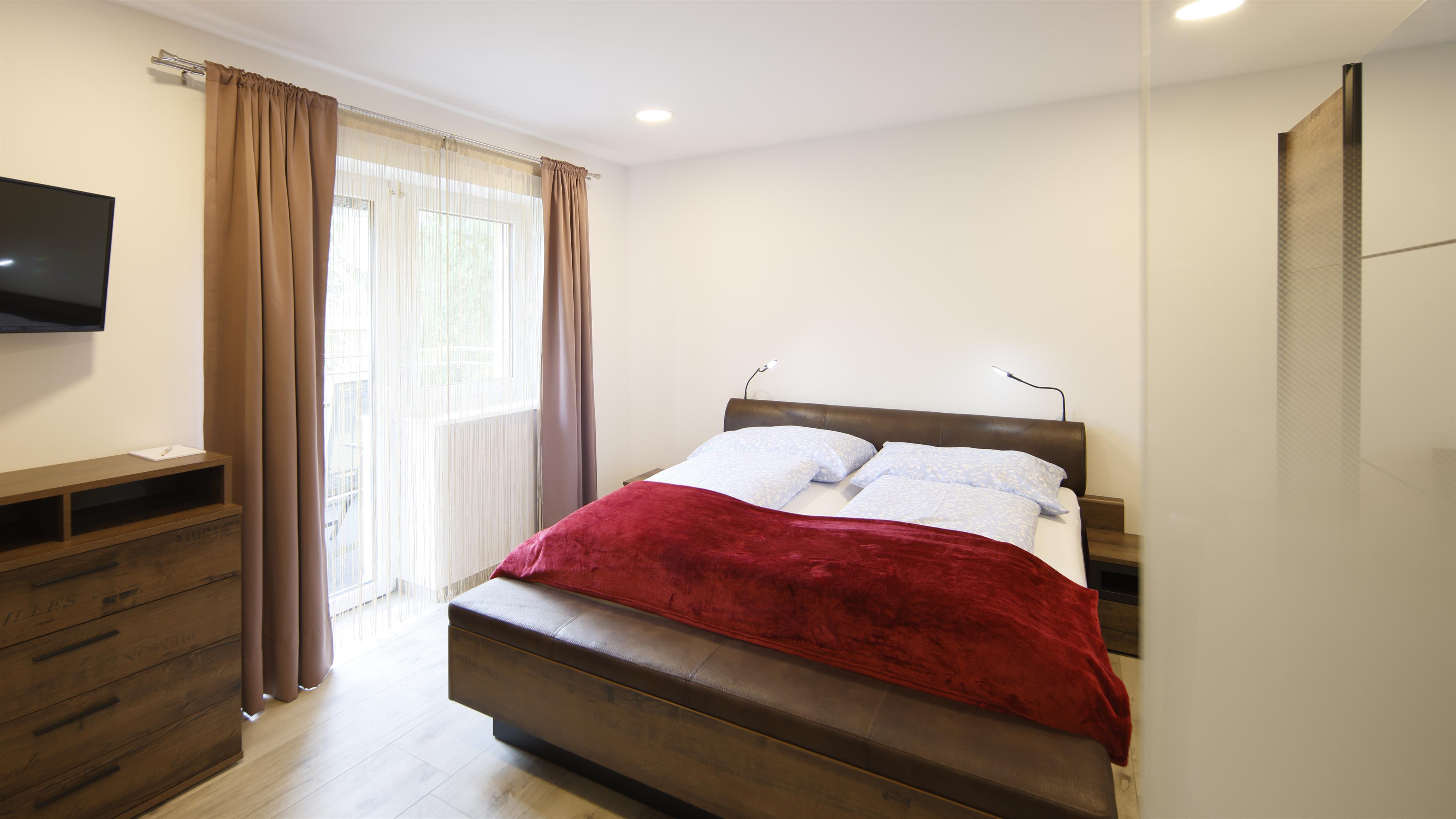 Das Apartment ist komplett neu eingerichtet. Es verfügt über 2 separate Schlafzimmer mit King-Size Bett, SAT-TV in jedem Zimmer. Die Küche ist komplett mit Geschirrspüler, Mikrowelle, Kaffeemaschine, Wasserkocher, Küchenutensilien und einem kompletten Geschirrset ausgestattet. Zusätzlich dazu finden Sie auch Tischwäsche und Geschirrtücher in unseren Ferienwohnungen. Im Wohnzimmer der Apartments befinden sich eine gemütliche Sitzecke welche als Schlafcouch genutzt werden kann. In jedem Zimmer befinden sich Hand- und Duschtücher, Föhn sowie diverse Kosmetikartikel.
