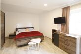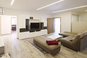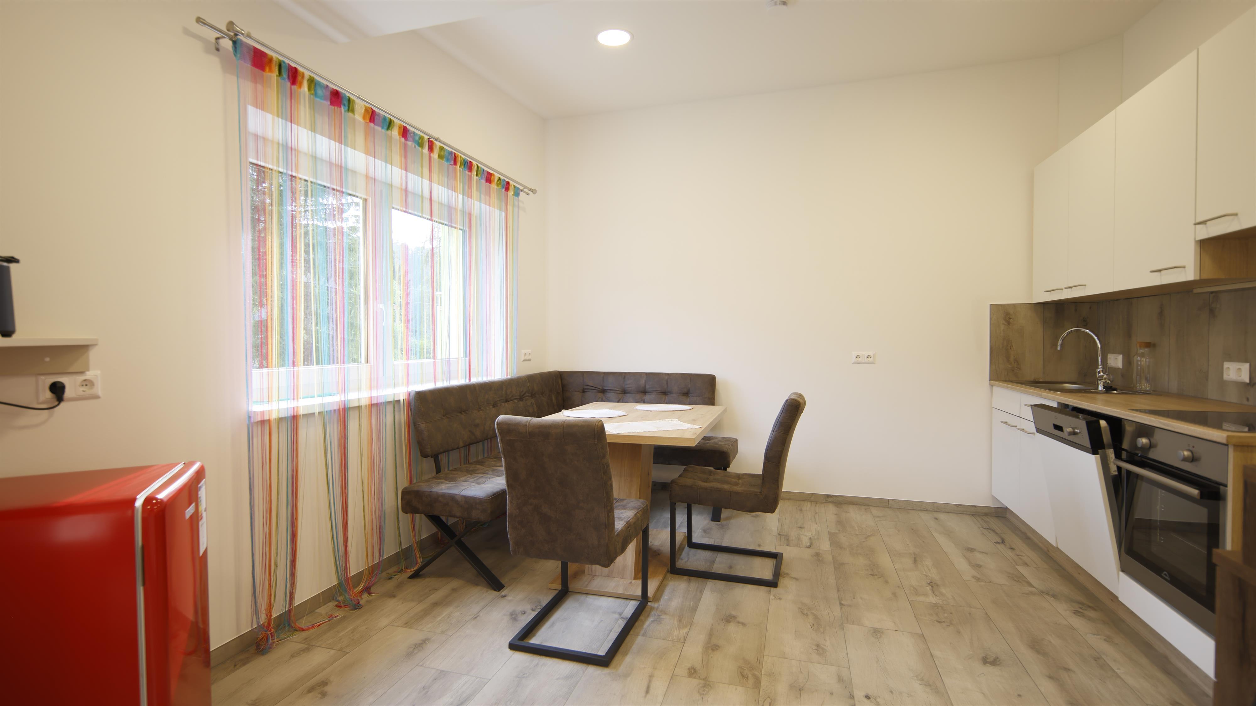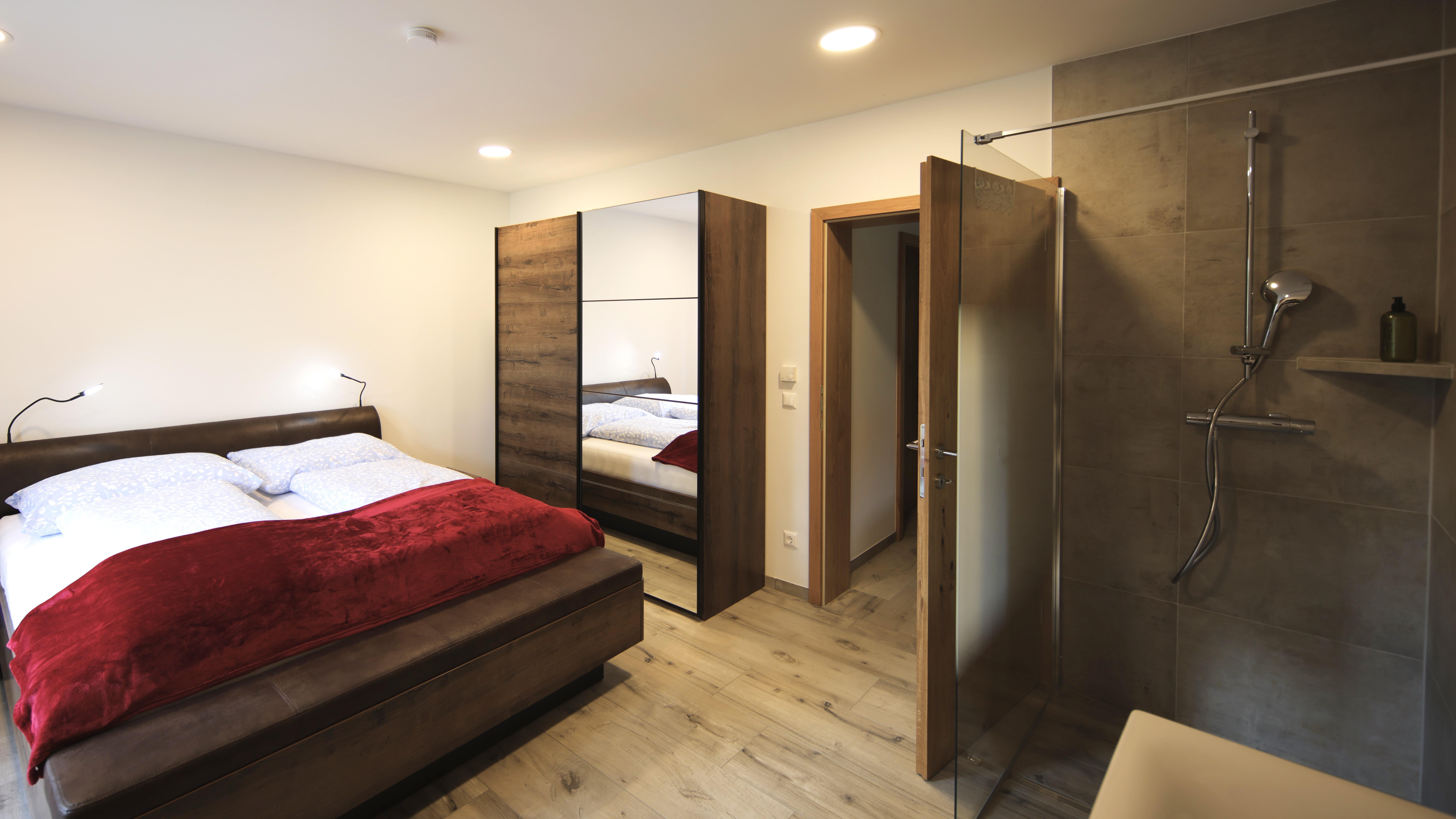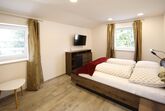Das Apartment ist komplett neu eingerichtet. Es verfügt über 3 separate Schlafzimmer mit King-Size Bett, SAT-TV und jeweils eigener Dusche und Waschbecken in jedem Zimmer. Die Küche ist komplett mit Geschirrspüler, Mikrowelle, Kaffeemaschine, Wasserkocher, Küchenutensilien und einem kompletten Geschirrset ausgestattet. Zusätzlich dazu finden Sie auch Tischwäsche und Geschirrtücher in unseren Ferienwohnungen. Im Wohnzimmer der Apartments befinden sich eine gemütliche Sitzecke welche als Schlafcouch genutzt werden kann. In jedem Zimmer befinden sich Hand- und Duschtücher, Föhns sowie diverse Kosmetikartikel.