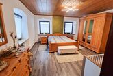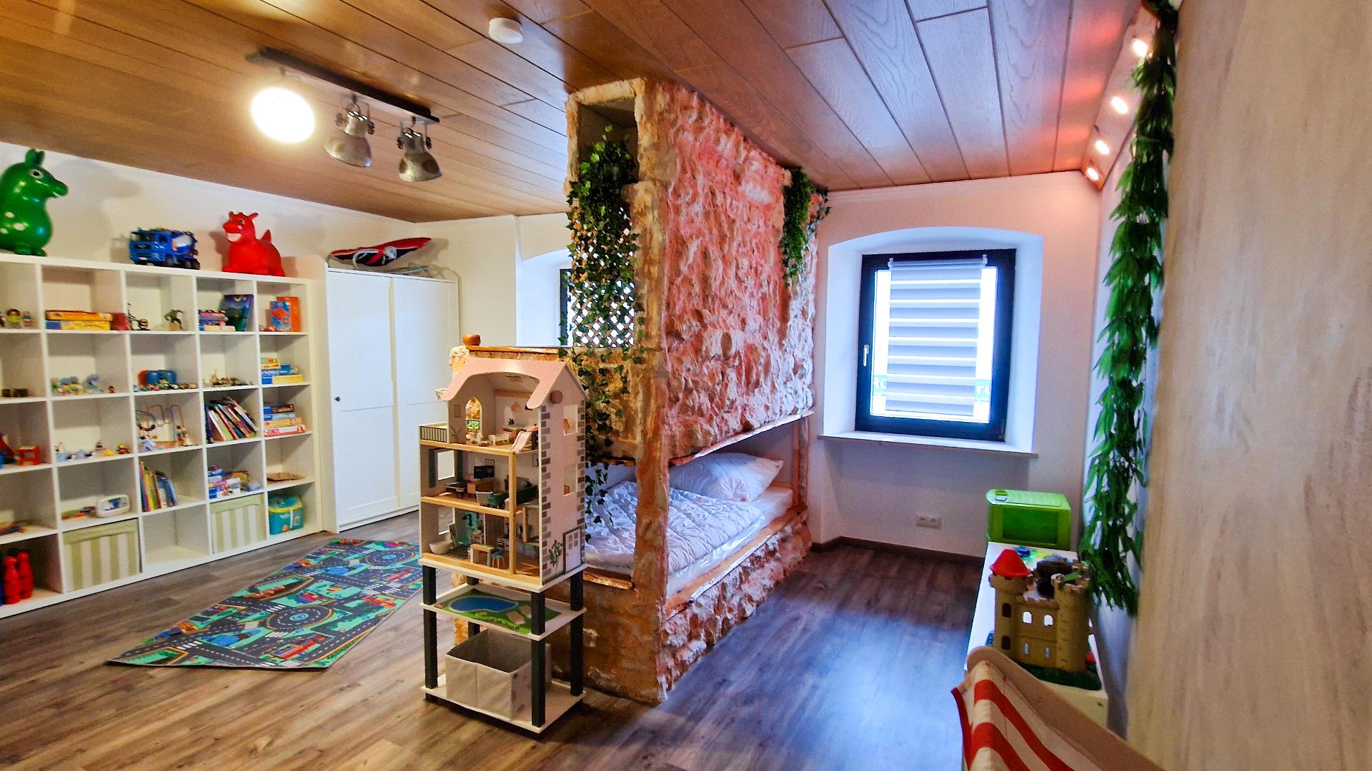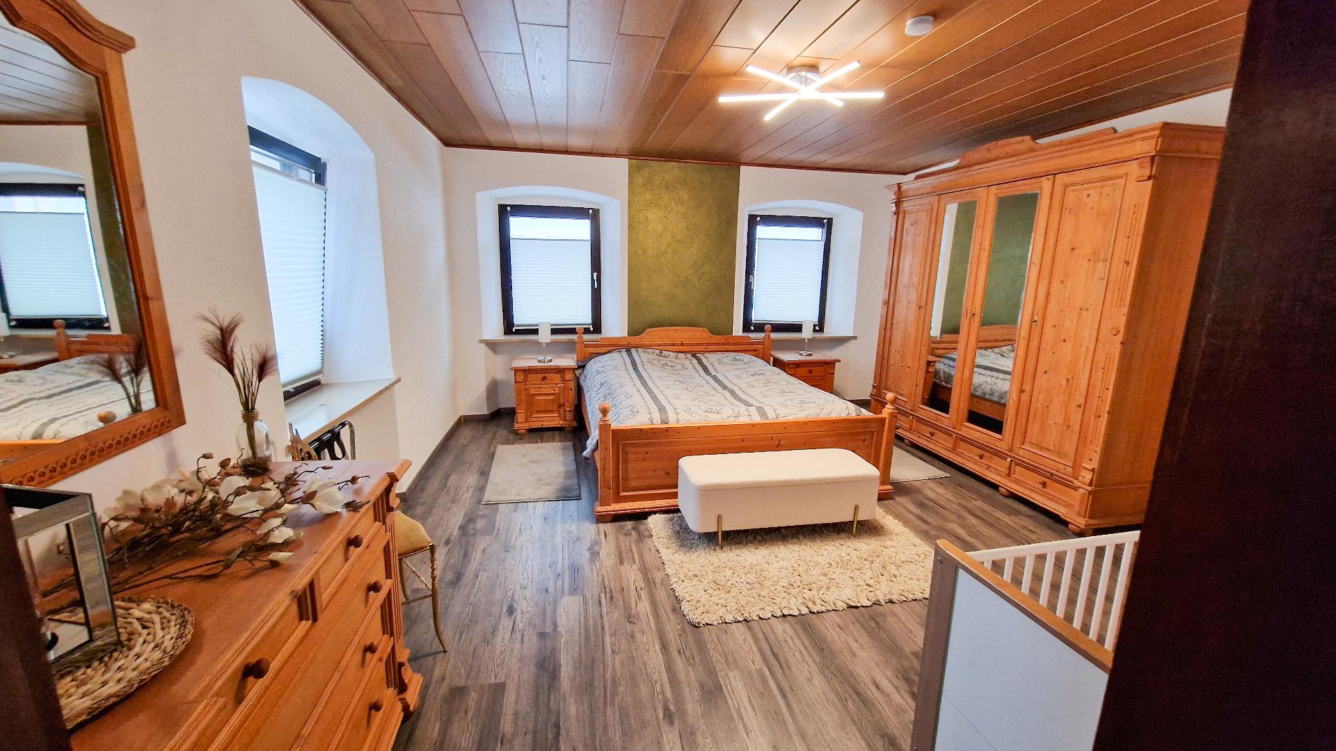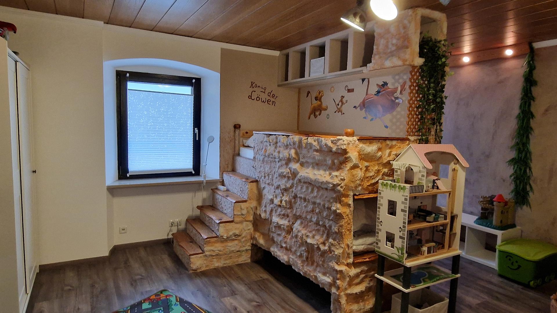 Im staatlich Anerkannten Erholungsort Stamsried liegt unsere Ferienwohnung mit 230qm, über zwei Etagen, und bietet Platz für 1 - 10 Personen. Das gemütliche Wohnzimmer mit Schlafsofa und Flachbild - TV lädt zum Verweilen ein. Die komplett ausgestattete Küche mit Geschirrspüler, Kühlschrank incl. Gefrierschrank, Herd, Backofen, Mikrowelle, Wasserkocher, Toaster und Kaffeemaschine lässt keine Wünsche offen. In der gemütlichen Essecke können Sie entspannt ihr Frühstück oder ihr zubereitetes Mahl zu sich nehmen. Von dort aus haben Sie auch die Möglichkeit, bei Sonnenschein auf der großen Terrasse Platz zu nehmen, oder bei regnerischem Wetter, auf dem Balkon auszuweichen. Die Ferienwohnung verfügt über 2 Schlafzimmer mit je 1 Doppelbetten, ein Kinderzimmer mit 1 Stockbett, die in einem Felsen gebaut sind und zwei Zustellbetten. Viele verschiedene Spiele, Spielsachen, Kinderbücher, Kaufmannsladen stehen für die kleinen zum Spielen bereit. Für die kleinsten Gäste haben wir auch an ein Gitterbett, Reisebett mit separater Matratze, Babybadewanne nebst Angelcare, Wickelunterlage und einen Tritt, gedacht. Zwei Hochstühle und ein Wipper sind auch vorhanden. Das geräumige Badezimmer mit Doppelwaschbecken, Dusche, Badewanne, großen Spiegel und einen Fön runden das Gesamtbild ab. Zum Reinigen Ihrer Kleidung stehen eine Waschmaschine und ein Trockner zu Verfügung. Eine gemütliche Leseecke mit Büchern lädt sie zum entspannen ein. Auch können Sie sich im Hauseigenen Fitnessraum auspowern oder ein lustiges Kicker Match erleben. Bitte beachten Sie, das keine Haustiere erlaubt sind. Das Wlan und den Parkplatz vor dem Haus können Sie kostenfrei nutzen. Bettwäsche und Handtücher sind nicht im Preis mit inbegriffen und müssten auf Wunsch, bei uns gebucht werden.