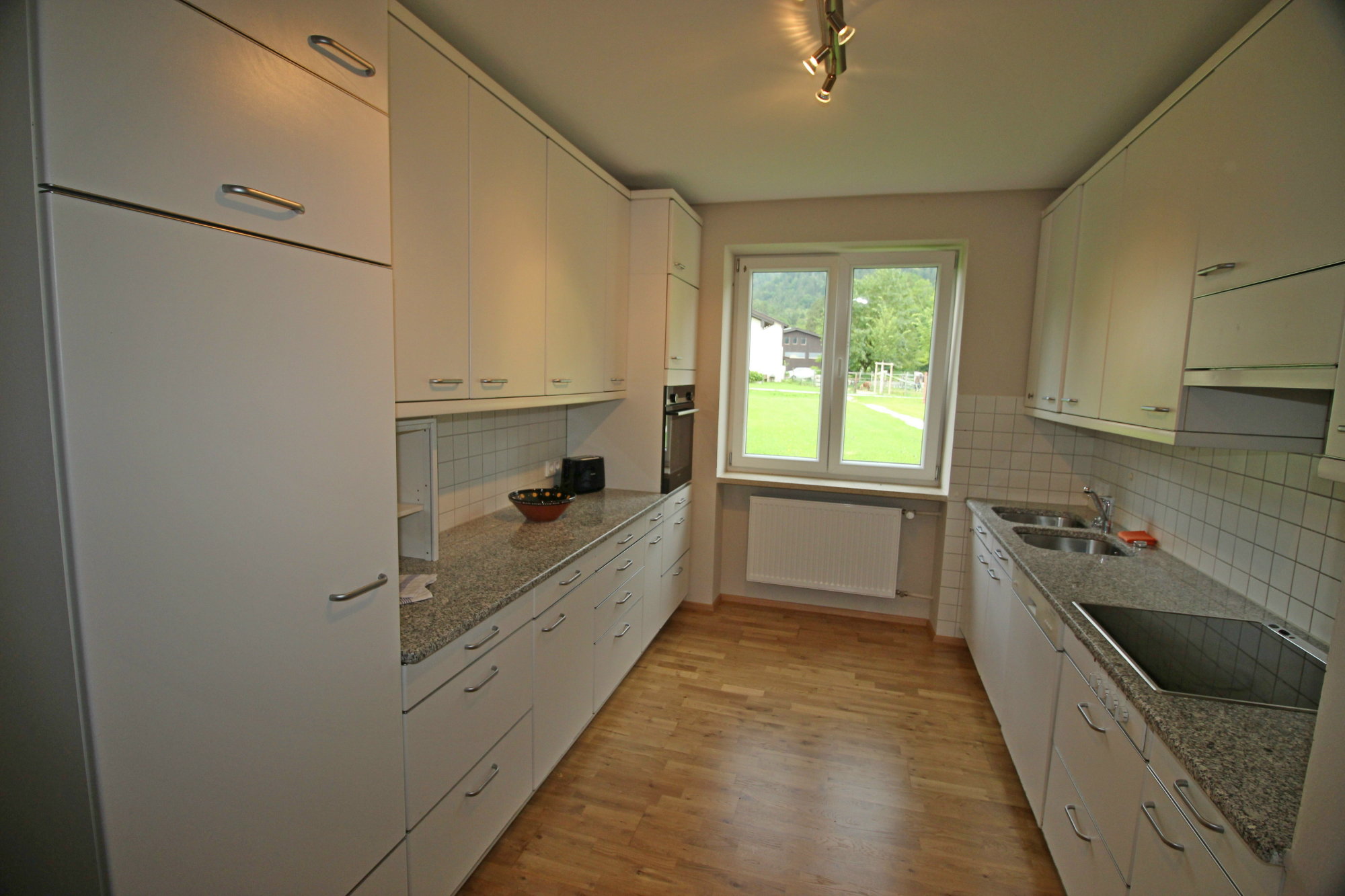 Bestens ausgestattete Küche mit Ceranfeld-Herd (4 Platten), Backofen, Kühl-/Gefrierschrank, Geschirrspüler, Mikrowelle, Toaster, Wasserkocher, Kaffeemaschine, Mixer und Pürierstab.