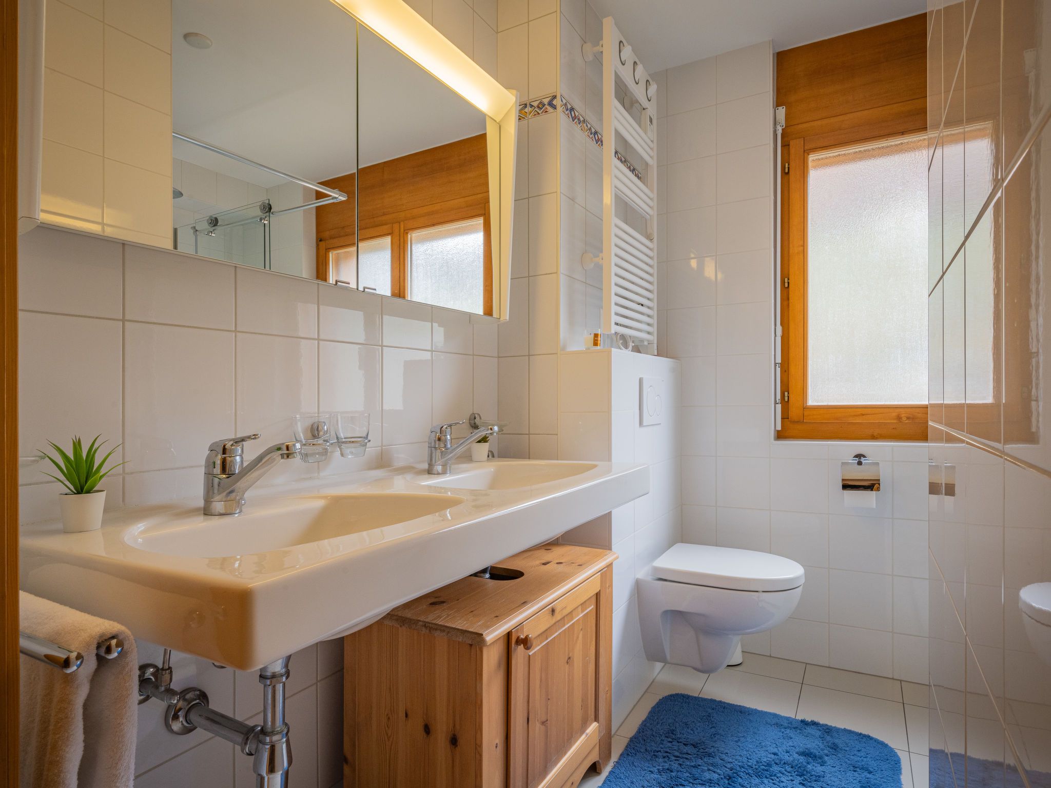 Caroubier 6, 3-Zimmer-Wohnung 80 m2 im 2. Stock, Südlage. Geräumig, schön und geschmackvoll eingerichtet: Eingang. Offenes grosses Wohn-/Esszimmer mit offenem Kamin, Esstisch und Kabel-TV. Ausgang zum Balkon, Richtung Süden. 1 Zimmer mit 1 franz. Bett (160 cm, Länge 200 cm). 1 Zimmer mit 1 Diwanbett (140 cm). Grosse, offene Küche (Backofen, Geschirrspüler, 4 Glaskeramikplatten, Toaster, Wasserkocher, Mikrowelle, elektrische Kaffeemaschine, Kapseln für die Kaffeemaschine (NESPRESSO) extra, Racletteofen, Fondue Set (Chinoise, Käse)). Dusche/WC, sep. WC. Obergeschoss: offene grosse Galerie mit Dachfenster mit 2 Betten (90 cm, Länge 200 cm), Kabel-TV. Balkon 13 m2, Südlage. Sehr schöne Sicht auf die Berge und das Tal. Zur Verfügung: Bügeleisen, Haartrockner. Internet (Wireless LAN, gratis). Parkplatz Nr. 6 devant le box n°6 (überdacht, 1 Auto), Garage Nr. 6 (1 Auto), Höhe 210 cm, Breite 290 cm. Bitte beachten: Nichtraucher-Unterkunft. Anstelle eines abgeschlossenen Schlafzimmers befinden sich manche Schlafplätze in einem offenen Bereich (Galerie, Nische etc.).