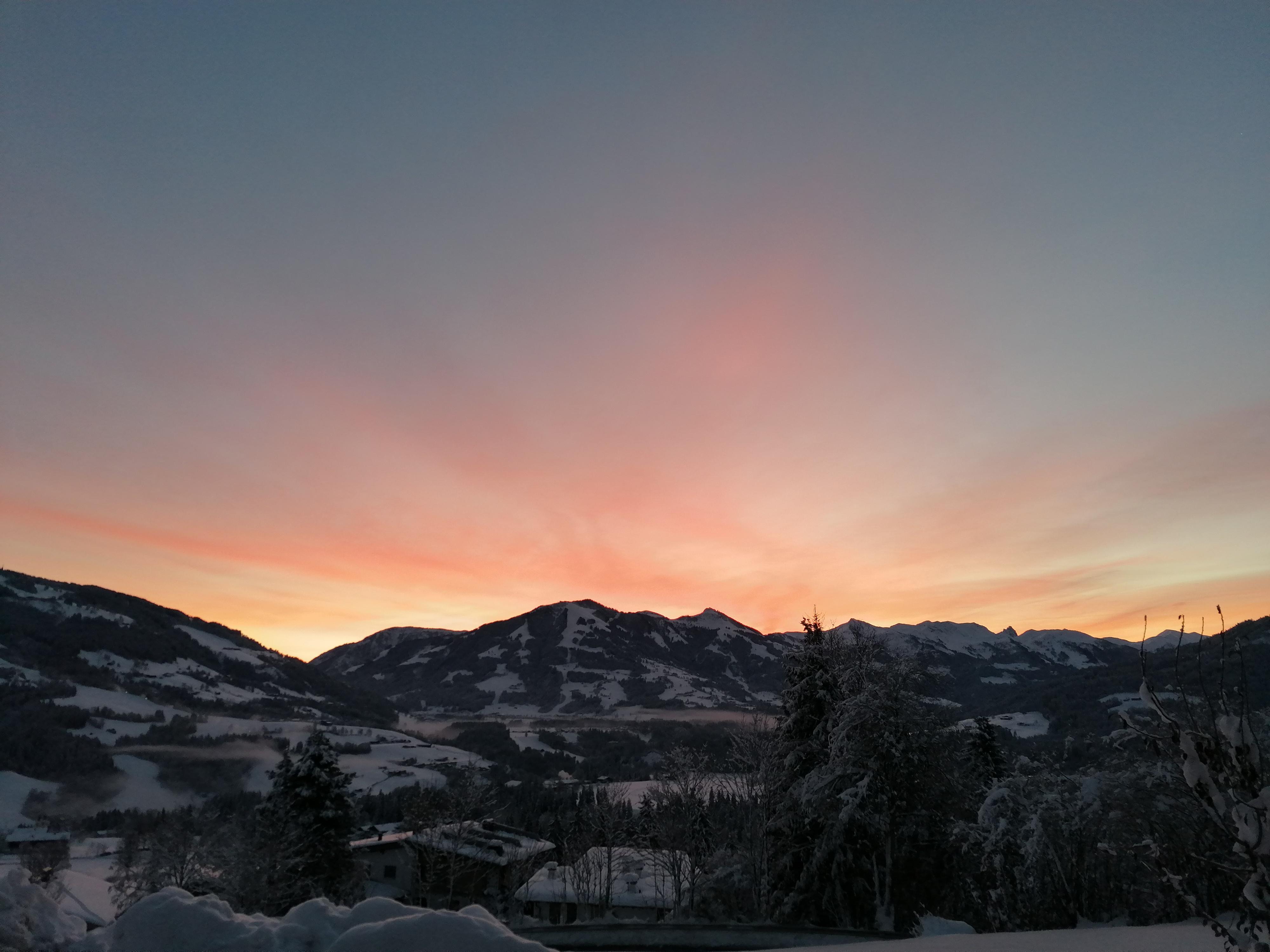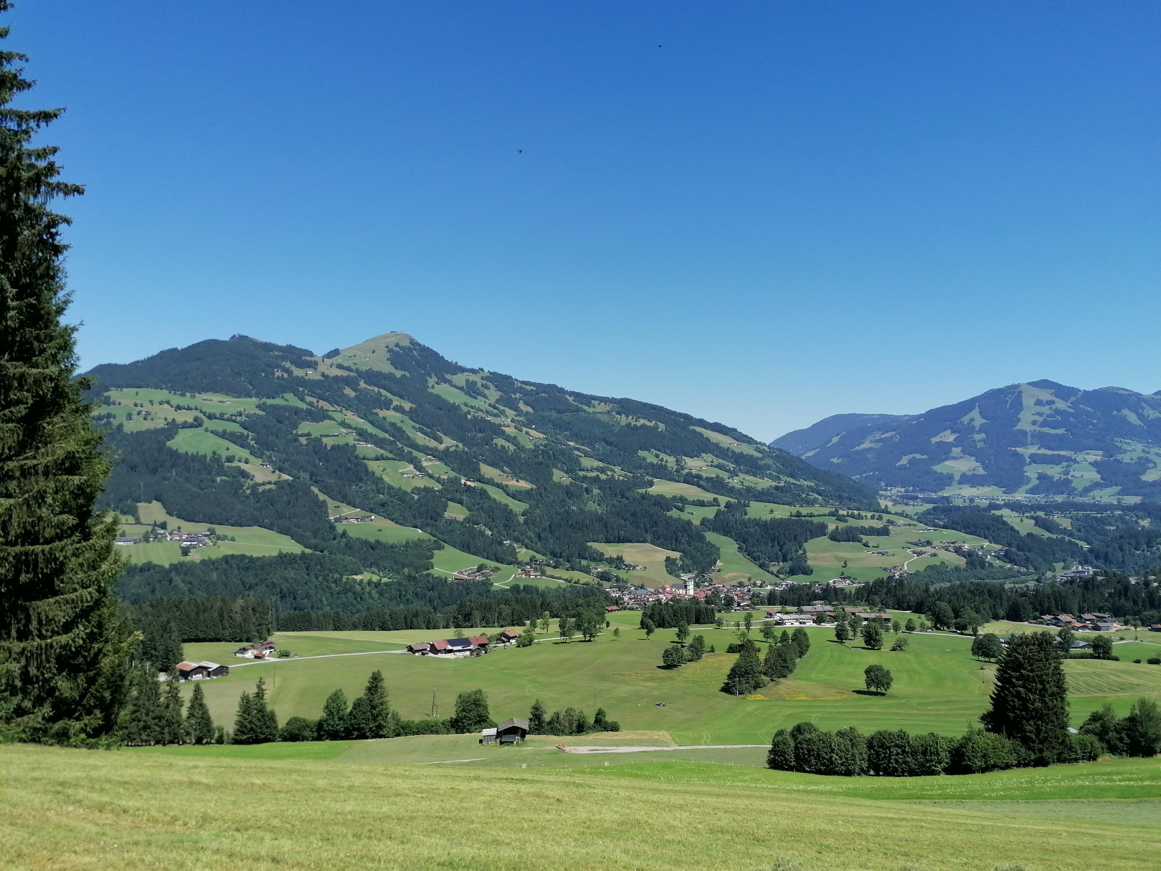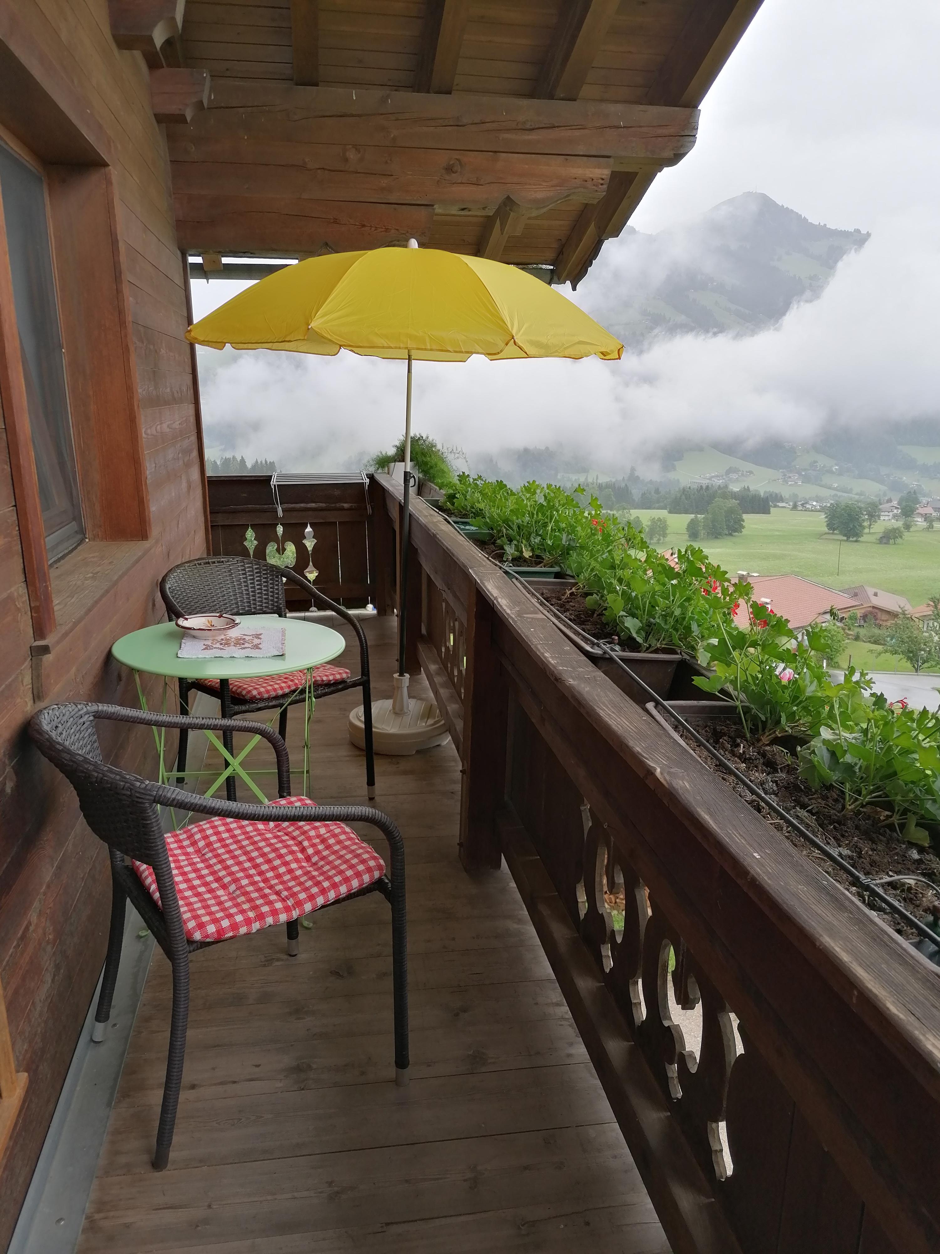 Überdachter Balkon mit Panoramablick über das Brixental und auf die Hohe Salve.