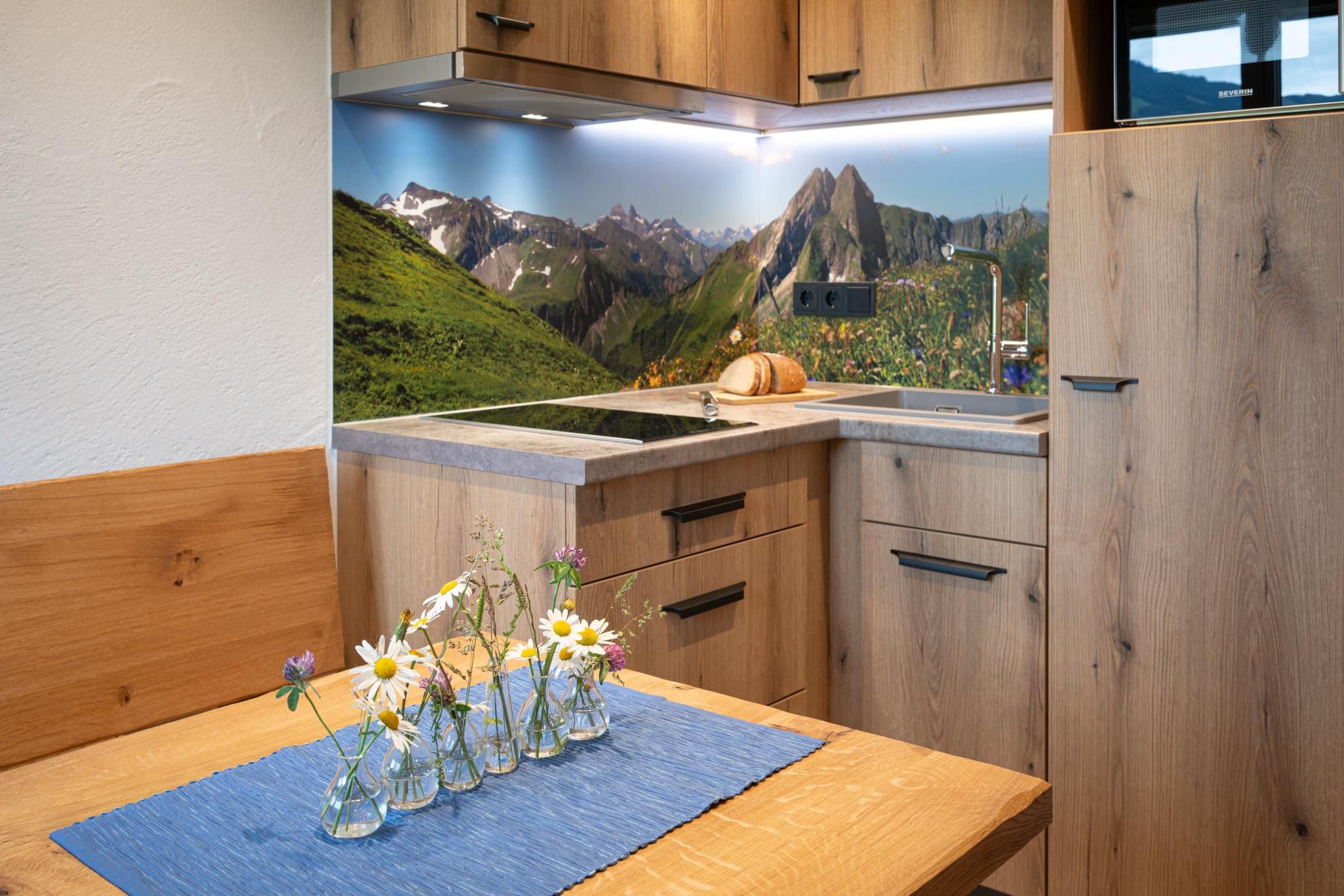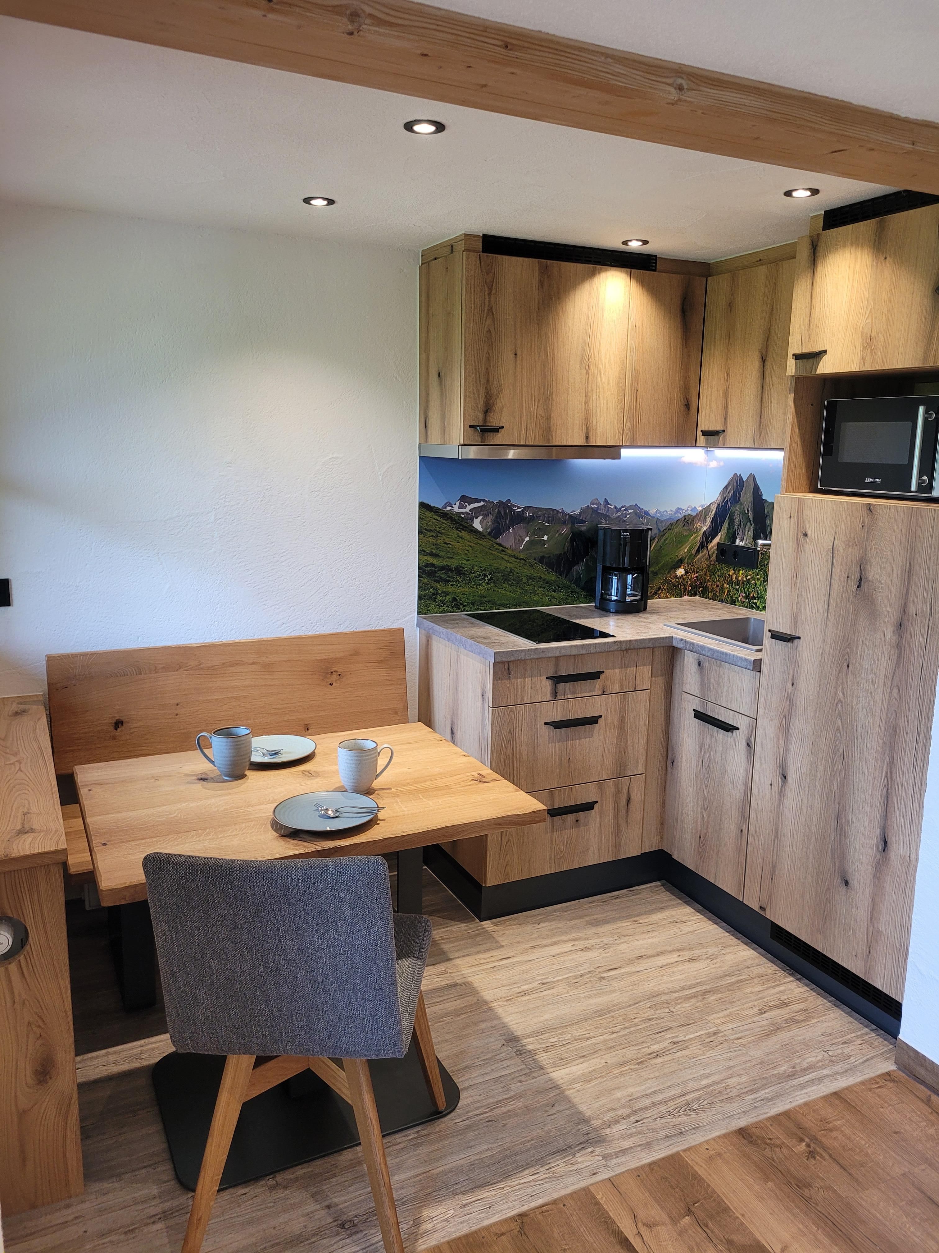 Das überschaubare, kuschelige 2 Personen- Appartement ist nicht nur preiswert sondern auch sonst bei unseren Gästen sehr beliebt. In Kombination mit der Wohnung Rubihorn eignet sich diese Wohnung besonders gut für Urlauber, die getrennt schlafen aber sonst gerne zusammen sind – Eltern, Kind (er) und Großeltern oder Freunde und Bekannte.