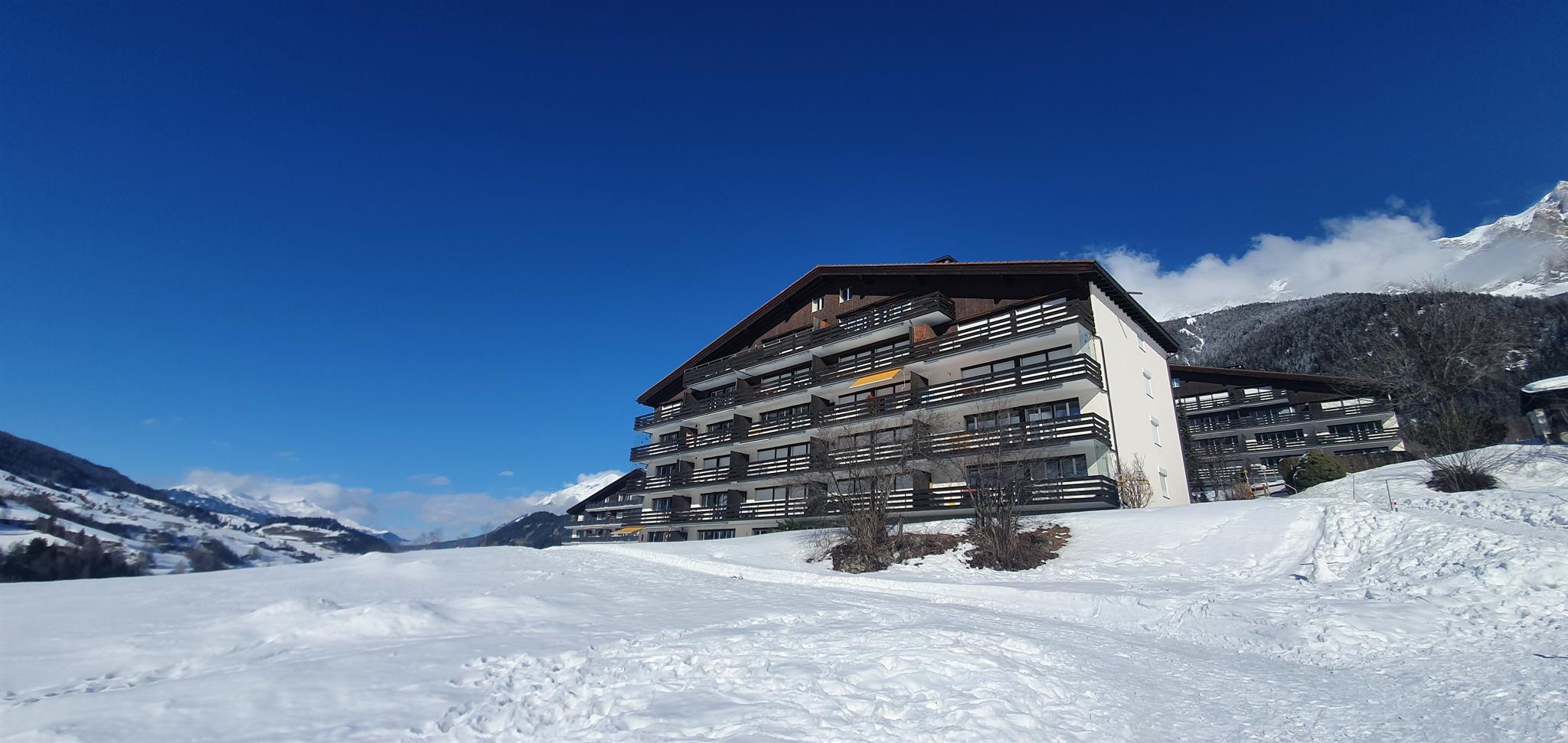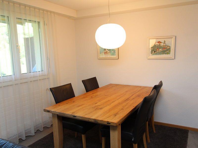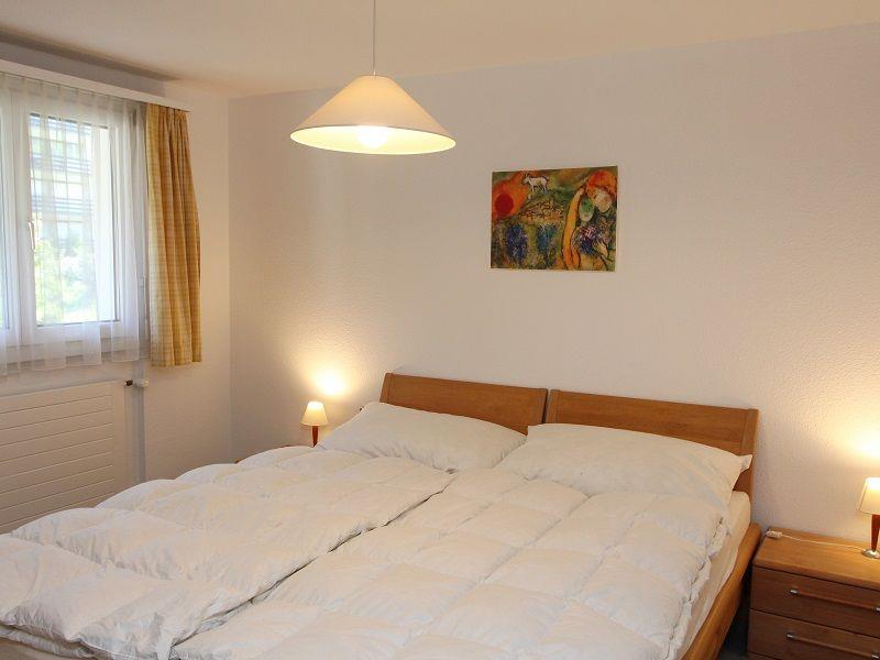2 1/2 Zimmerwohnung ca. 55m2. Wohn-Esszimmer mit einem Schrankbett, 1 Schlafzimmer mit einem Doppelbett. Küche im Wohnzimmer integriert mit Backofen, Geschirrspüler und Kühlschrank. Badewanne mit Duschvorrichtung/WC. Haustiere nicht erlaubt. Nichtraucherwohnung. TV. Cheminée in der Wohnung. Balkon und Parkplatz. Kinderspielplatz, Waschmaschine, Trockner, Lift, Skiraum, Tischtennisraum und Kompostierung zur Mitbenutzung. Telefon beim Hauswart von 16.00 h - 18.00 h.