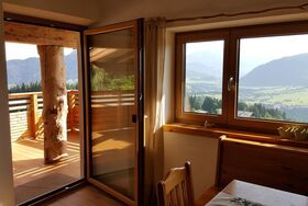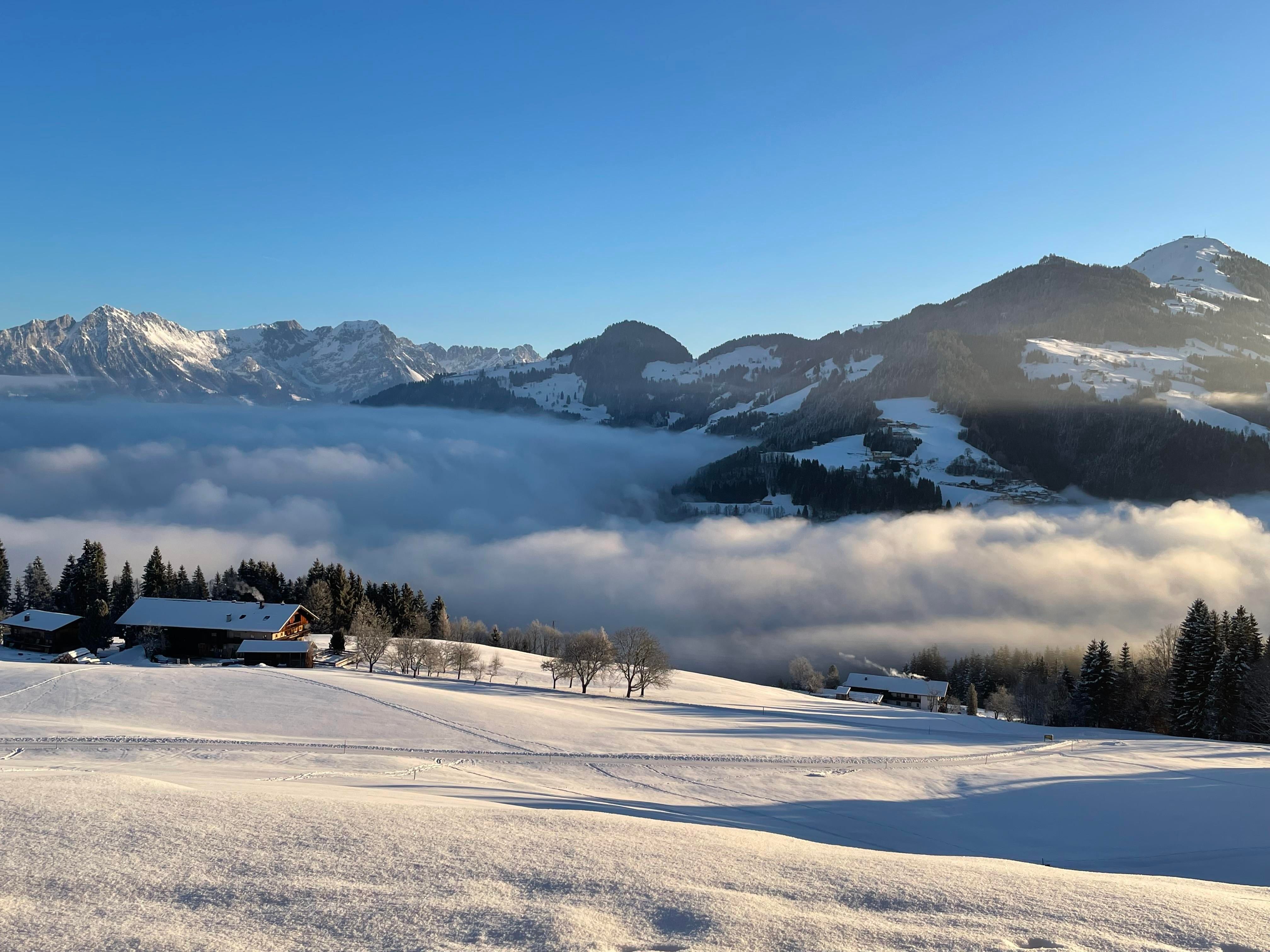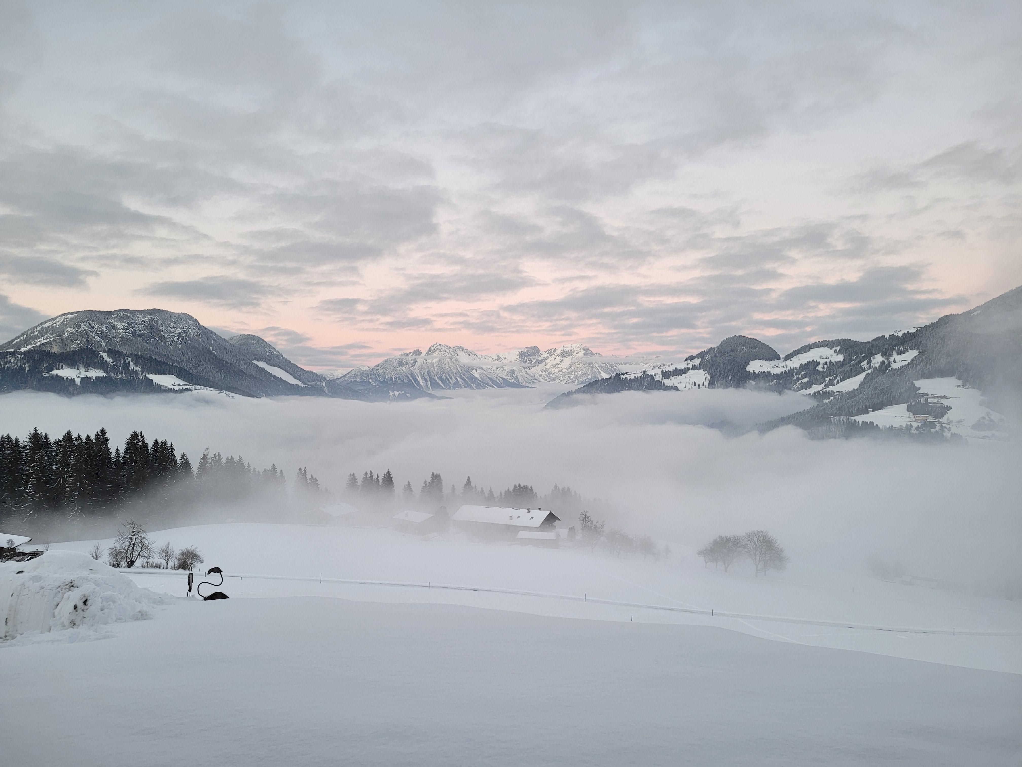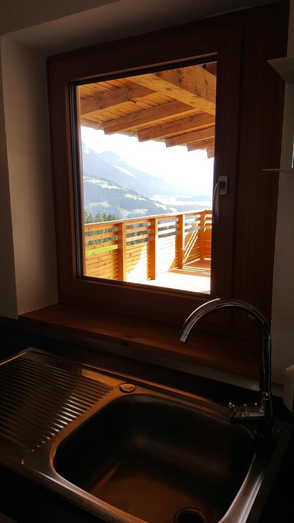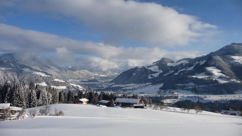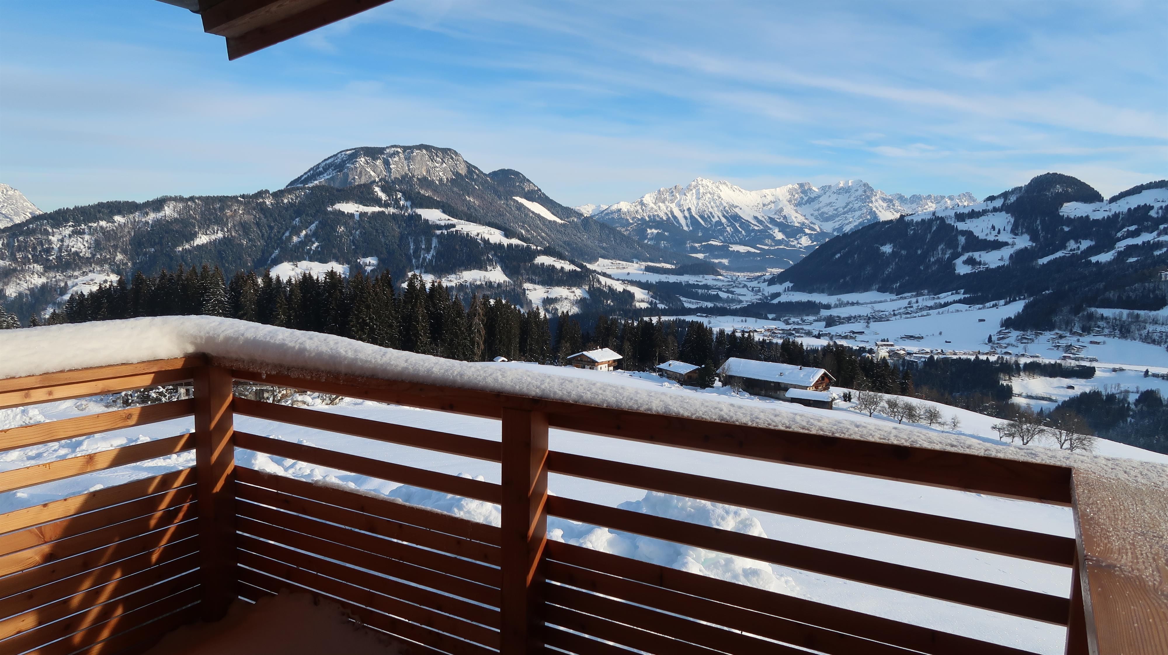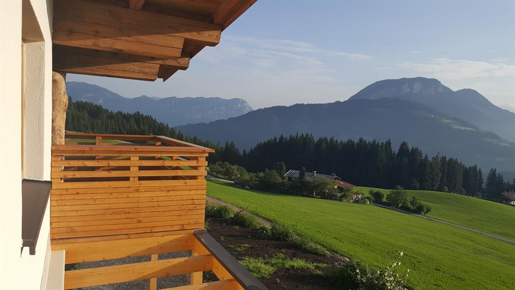 Die Ferienwohnung liegt auf knapp 1.000m Höhe in ruhiger Lage mit grandiosem Blick auf den Wilden Kaiser, die Hohe Salve und Co.