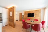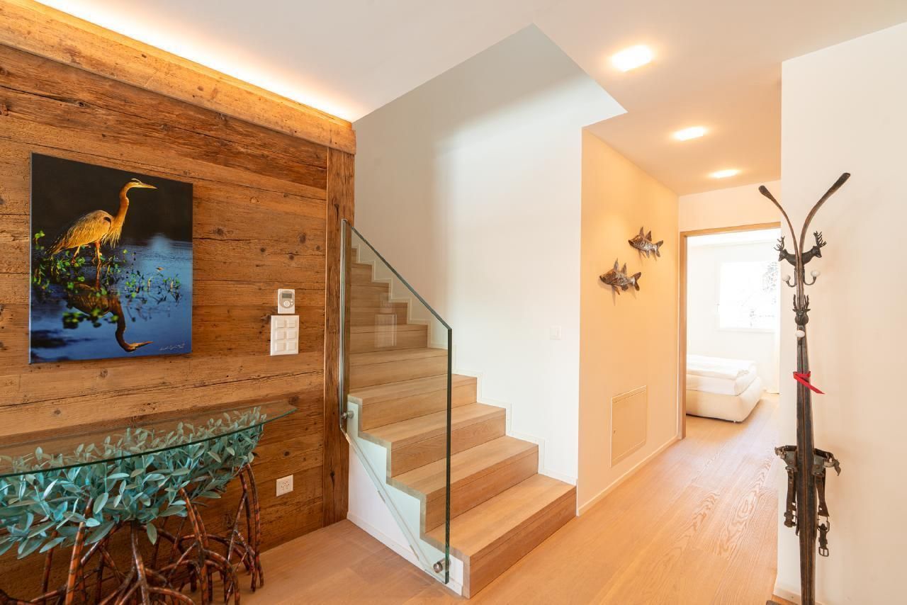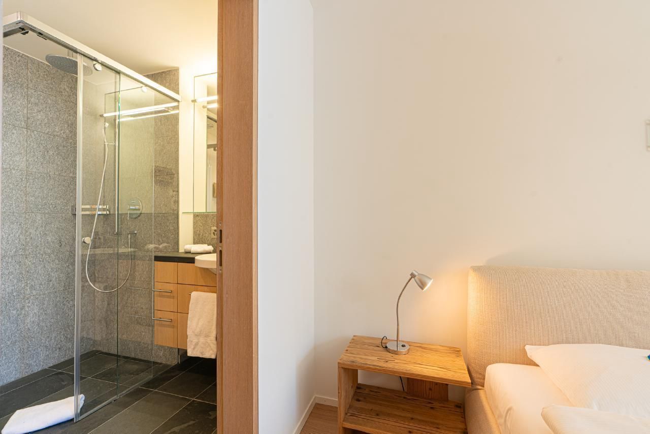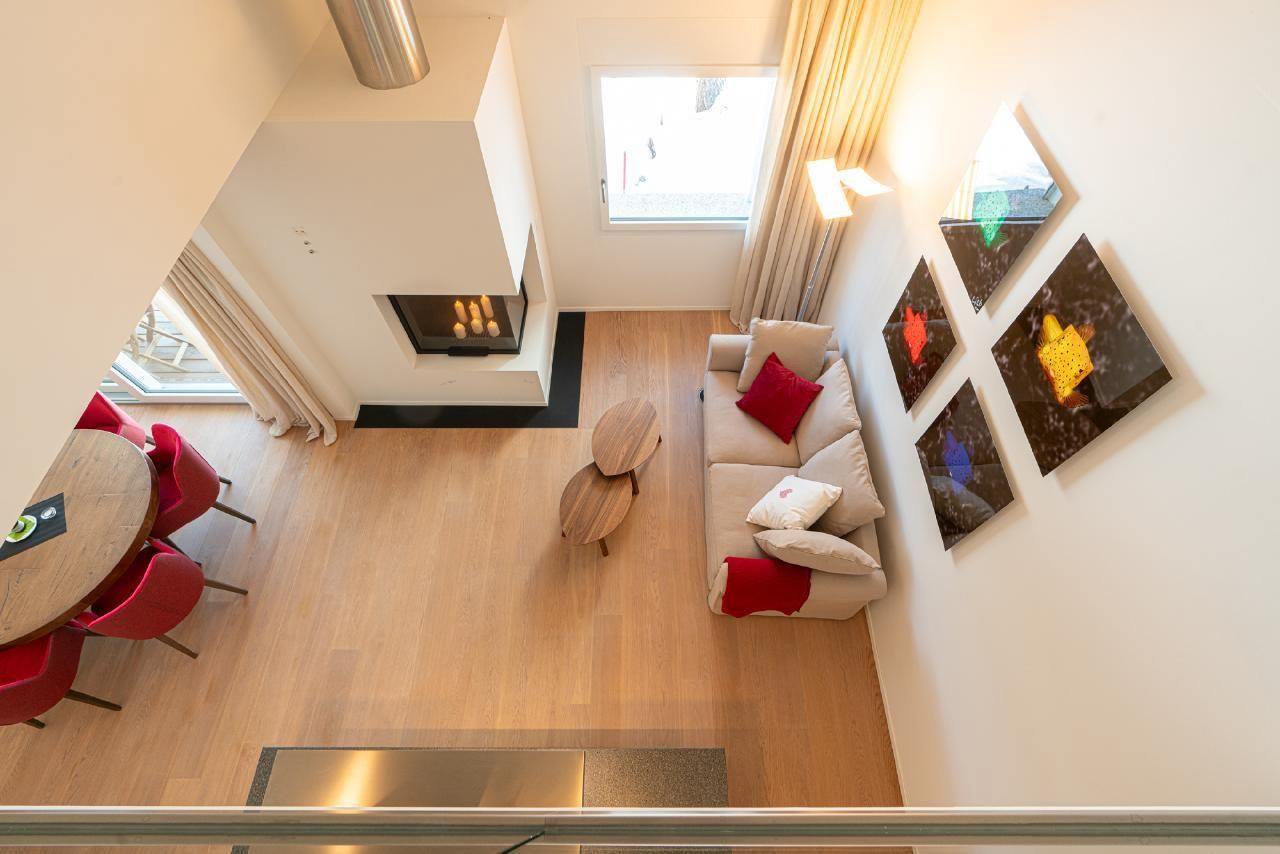 Die Wohnung verfügt über 2 Doppelschlafzimmer, 2 Badezimmer und ein separates WC. Die ganze Wohnung ist mit Parkett ausgestattet. Die Küche ist vollständig eingerichtet. Auf Wunsch sind Racletteofen und Fondueausstattung verfügbar. Die Wohnung ist sehr sonnig. Auf der Galerie gibt es einen Arbeitsplatz für unsere Gäste, die im Homeoffice arbeiten. Der Keller, wo sich auch die Waschmaschine und der Wäschetrockner befindet, bietet genügend Platz für Skier und Skischuhe mit Trockner, Fahrräder und dergleichen. Es gibt 2 reservierte Garagenplätze in der Tiefgarage.