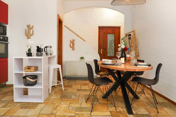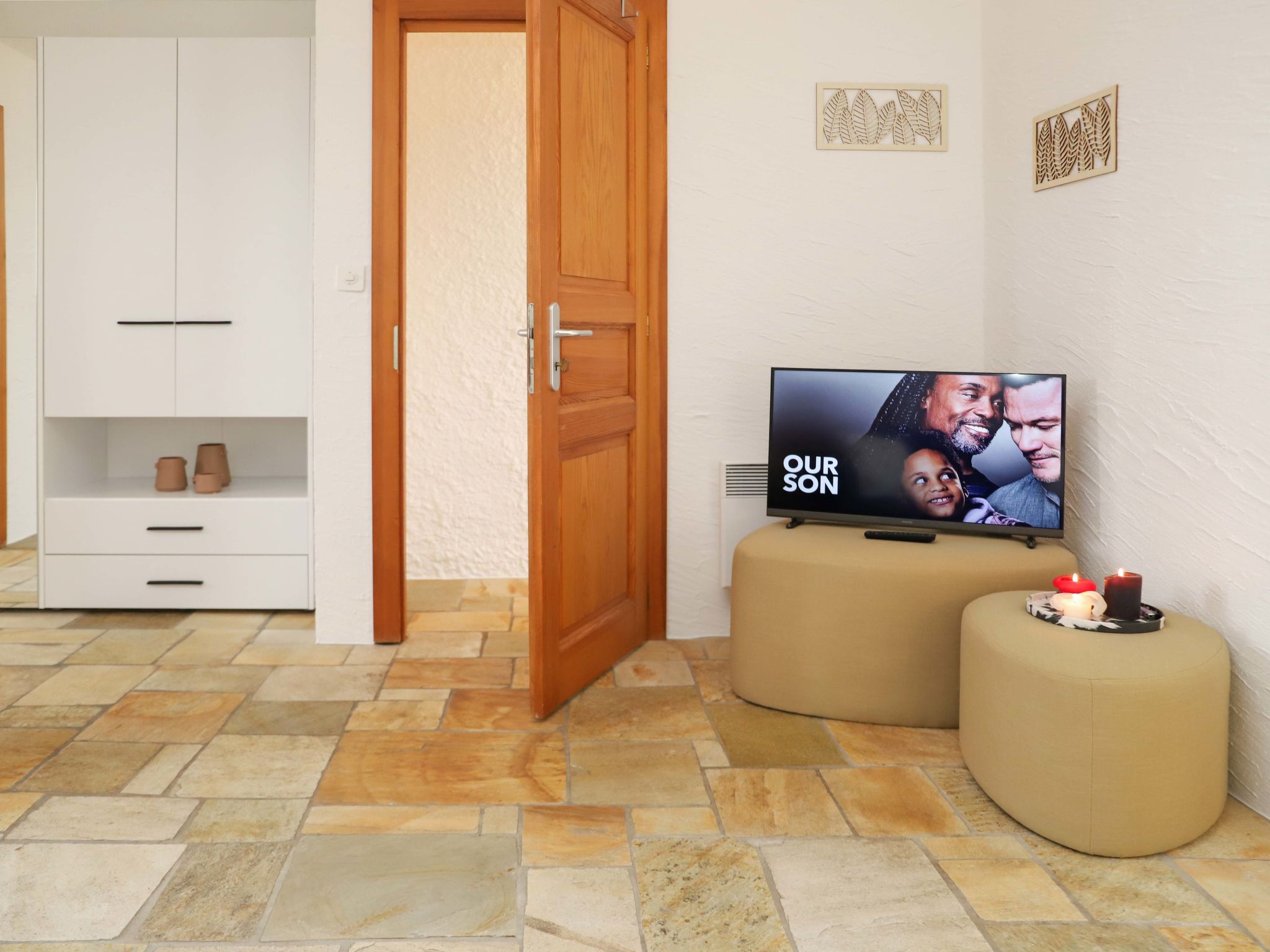 Le 55Cici, 2-Zimmer-Doppelhaushälfte 77 m2 auf 2 Stockwerken, Südlage. Geräumig und hell, komfortabel und geschmackvoll eingerichtet: Wohn-/Esszimmer. Ausgang zur Terrasse, Richtung Süden. Offene Küche (Backofen, Geschirrspüler, 4 Glaskeramikplatten, Toaster, Wasserkocher, Mikrowelle, elektrische Kaffeemaschine, Kapseln für die Kaffeemaschine (Dolce Gusto) extra, Racletteofen, Fondue Set (Chinoise, Käse)). Sep. WC. Obergeschoss: Wohn-/Schlafzimmer mit 1 Doppelbett (2 x 80 cm, Länge 200 cm), TV. Ausgang zum Balkon. Dusche/WC. Balkon, Nordlage, grosse Terrasse, Südlage. Balkonmöbel, Liegestühle (3). Schöne Sicht auf die Berge und die Landschaft. Zur Verfügung: Waschmaschine, Wäschetrockner, Bügeleisen, Haartrockner. Internet (Wireless LAN). Parkplatz beim Haus. Bitte beachten: Nichtraucher-Unterkunft. Maximal 1 Haustier/Hund erlaubt.