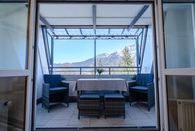 In absoluter Ruhe, aber dennoch nur wenige Schritte von der Fußgängerzone entfernt, genießen Sie in einem architektonisch anspruchsvollen Haus von Ihrem Balkon oder der Sonnenterrasse den Blick auf ein faszinierendes Bergpanorama. Die Appartements sind im klassisch-eleganten Stil eingerichtet und haben eine Größe zwischen 45 und 98 qm. Sie bieten bis zu vier Personen Platz und verfügen alle über getrennte Wohn- und Schlafräume, Bad und Balkon. Unsere Ferienwohnungsanlage ist mit Panoramaaufzug, Innenlift, Waschküche, Fahrradraum, sowie einer Tiefgarage ausgestattet. Außerdem verfügen wir über eine Lounge mit Getränkekühlschrank (Selbstbedienung). Hunde sind in unserem Haus willkommen.