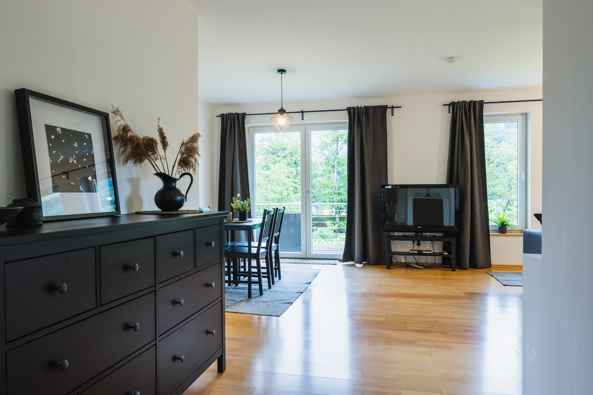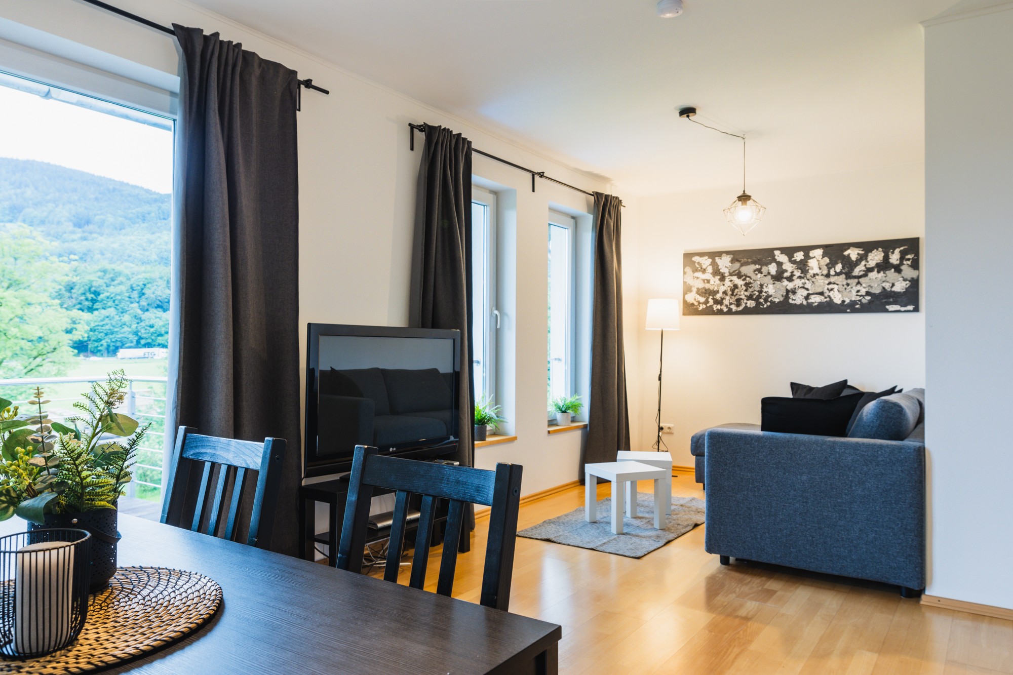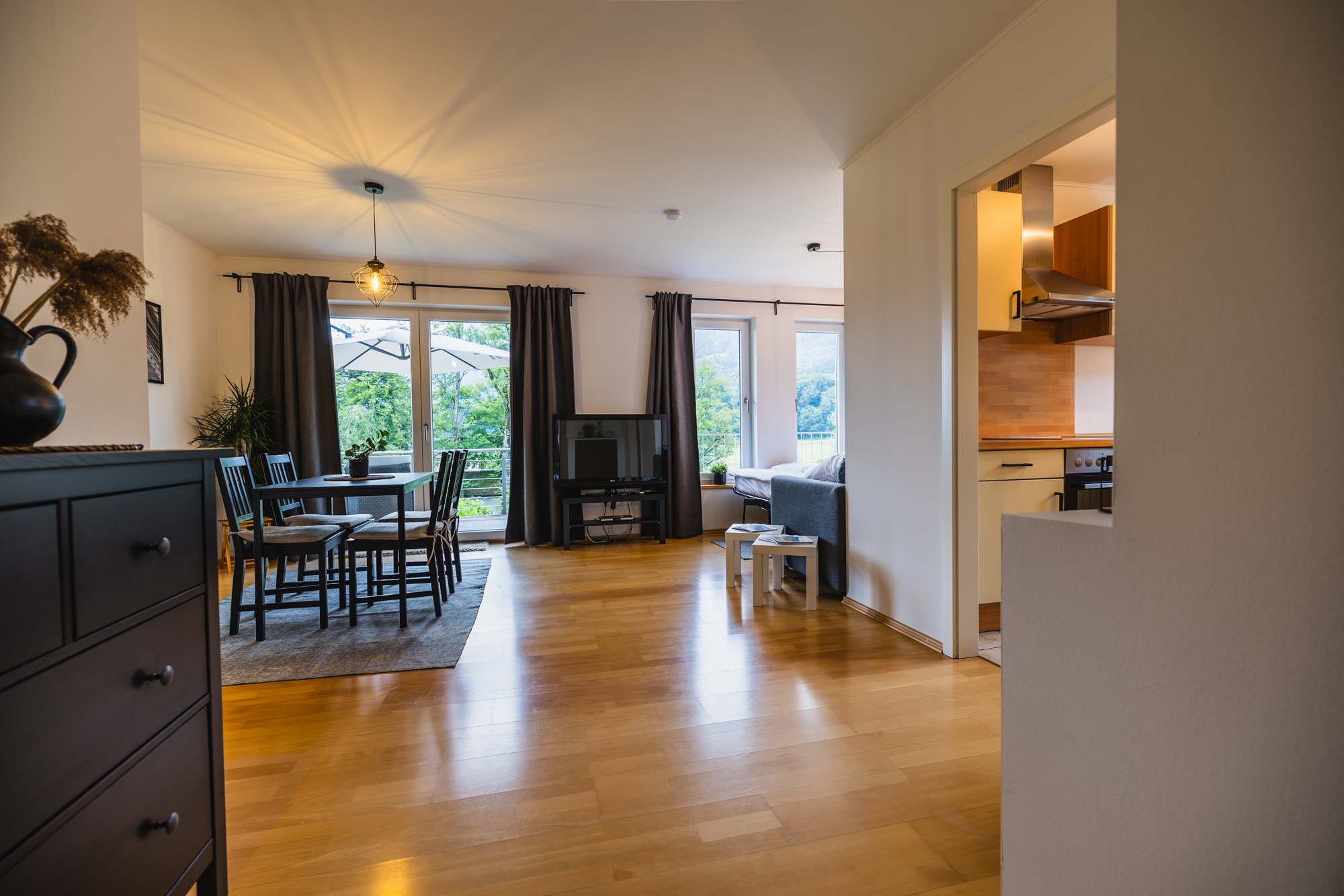 Unsere hochwertige Gästewohnung liegt in einem der schönsten Naturgebiete Deutschlands. Umgeben von Bergen, in der kleinen Gemeinde Anger.