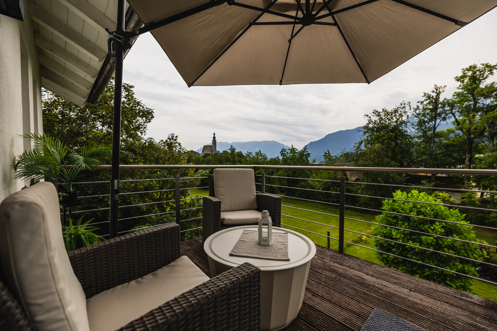 Ihr habt direkt vom Frühstückstisch aus, einen traumhaften Blick auf die Stoißer Ache, den Teisenberg und das Staufenmassiv.