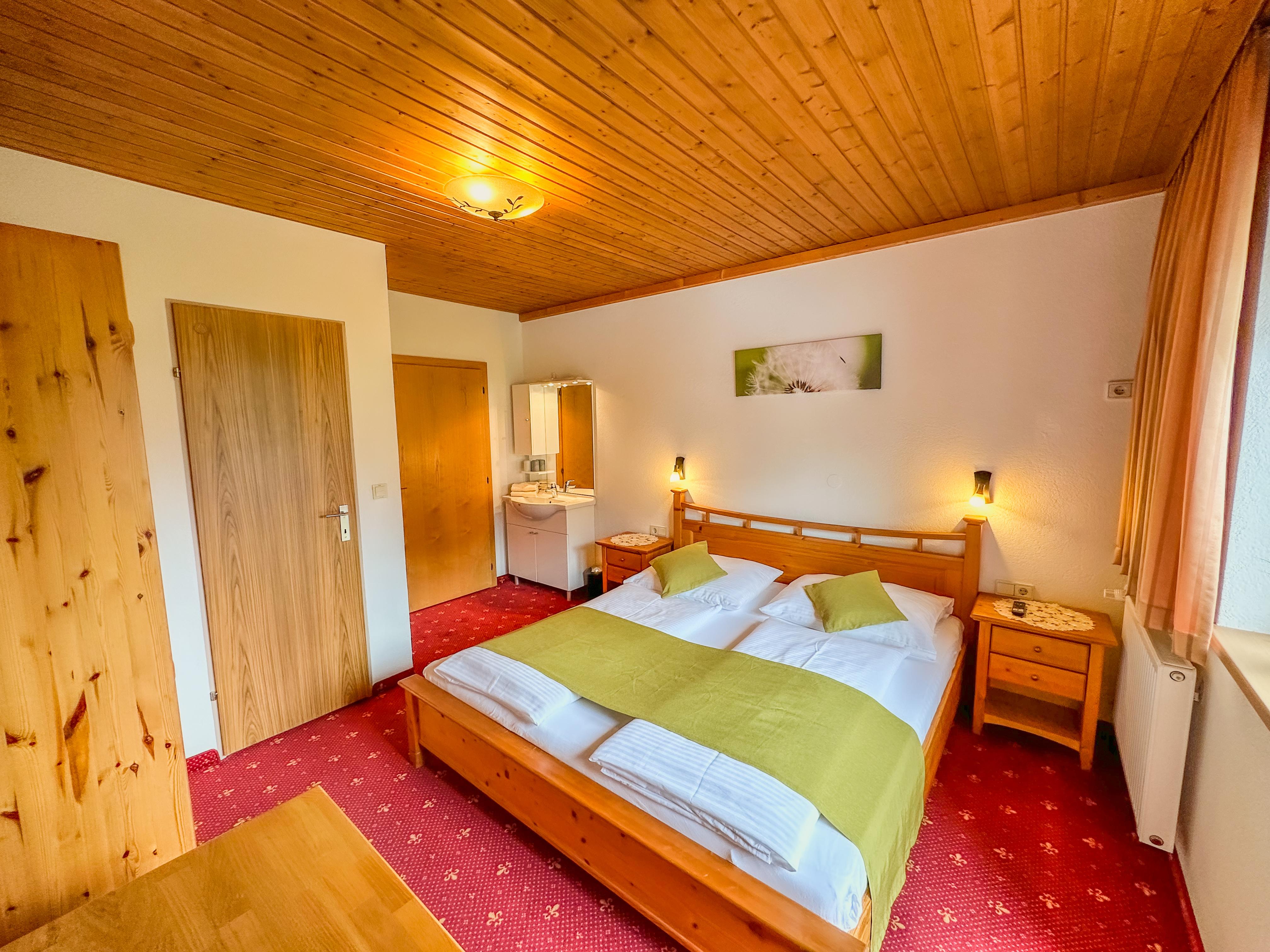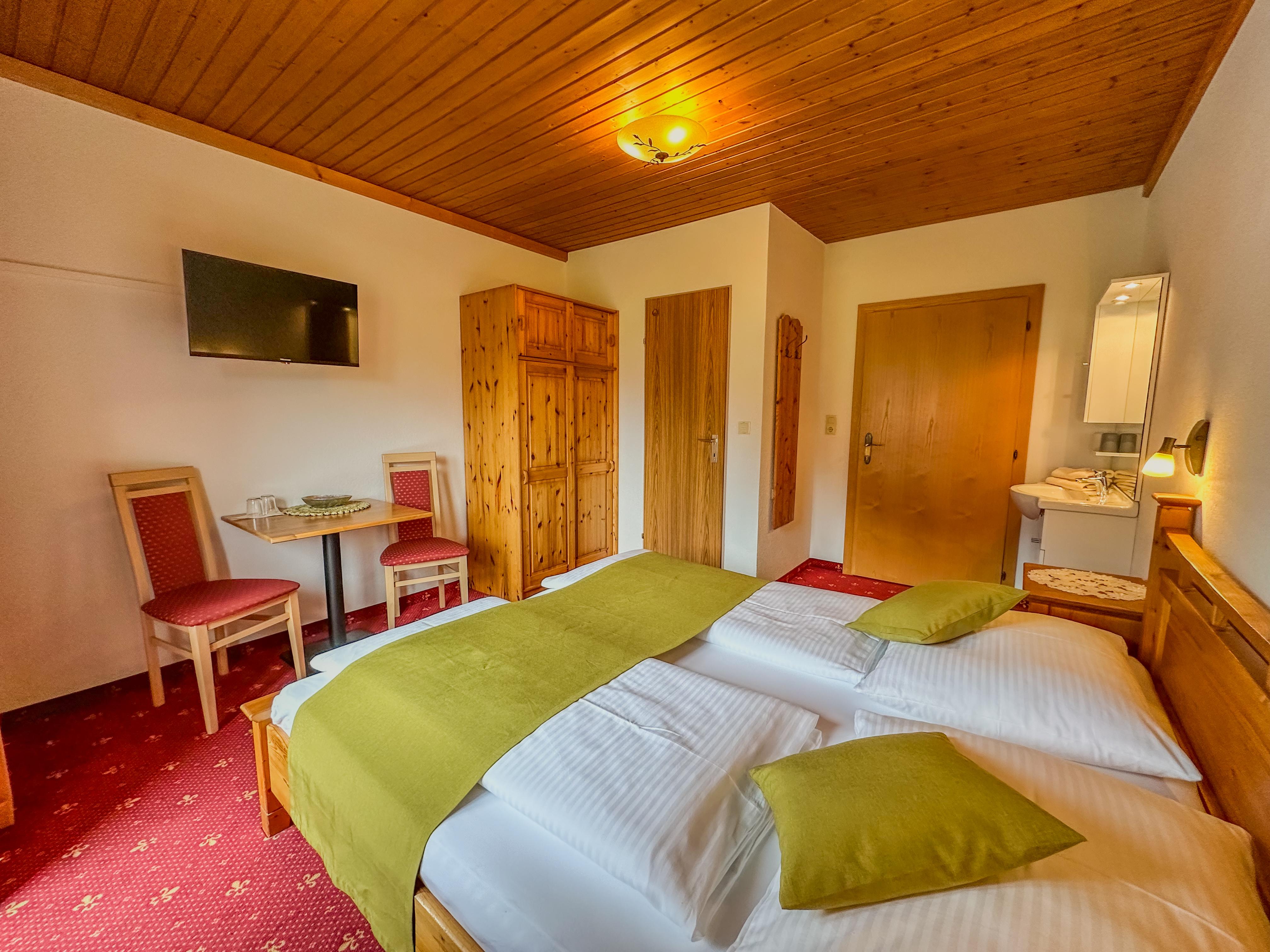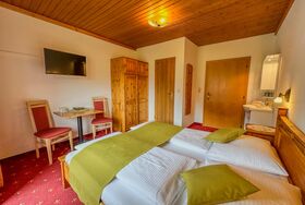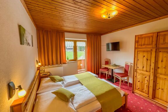 Gemütliches Doppelzimmer für 2 Personen (16m²) mit Bergblick, Flachbild-TV, kleinem WC/Duschbereich, kostenfreien W-LAN sowie einem eigenen Balkon.