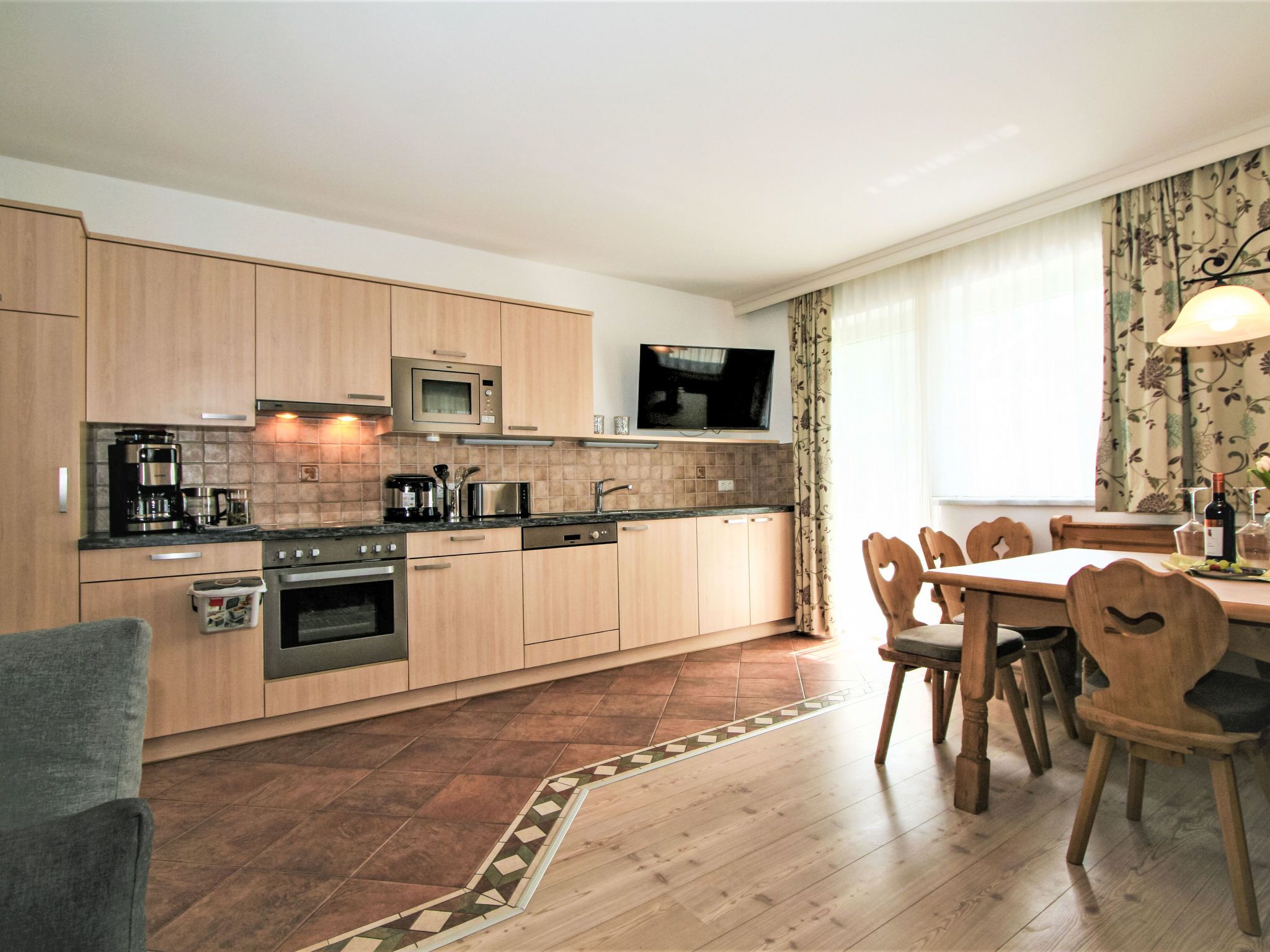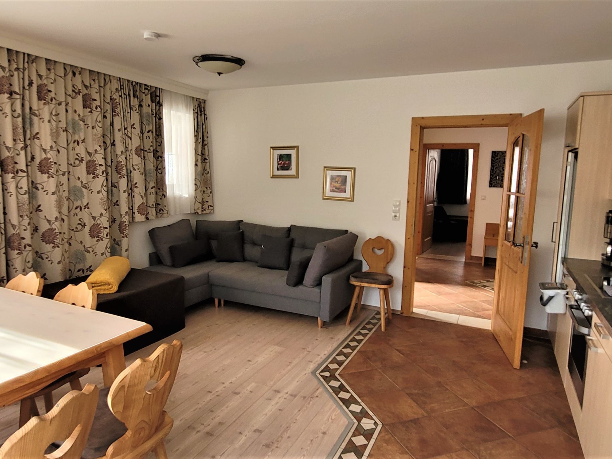 Apartment Wallischer Johann, 4-Zimmer-Wohnung 87 m2, im Erdgeschoss. Modern und mit viel Holz eingerichtet: 1 Doppelzimmer mit Sat-TV (Flachbildschirm). 1 Doppelzimmer mit 1 Bett. 1 Zimmer mit 1 Bett, 1 Doppelbett und Sat-TV (Flachbildschirm). Wohnküche (Backofen, Geschirrspüler, 4 Glaskeramikplatten, Toaster, Wasserkocher, Mikrowelle, elektrische Kaffeemaschine) mit 1 Doppeldiwanbett und Sat-TV (Flachbildschirm). Dusche/WC, sep. WC. Grosse Terrasse. Terrassenmöbel, Gartengrill. Schöne, auf die Berge. Zur Verfügung: Internet (Wireless LAN, gratis). Parkplatz.