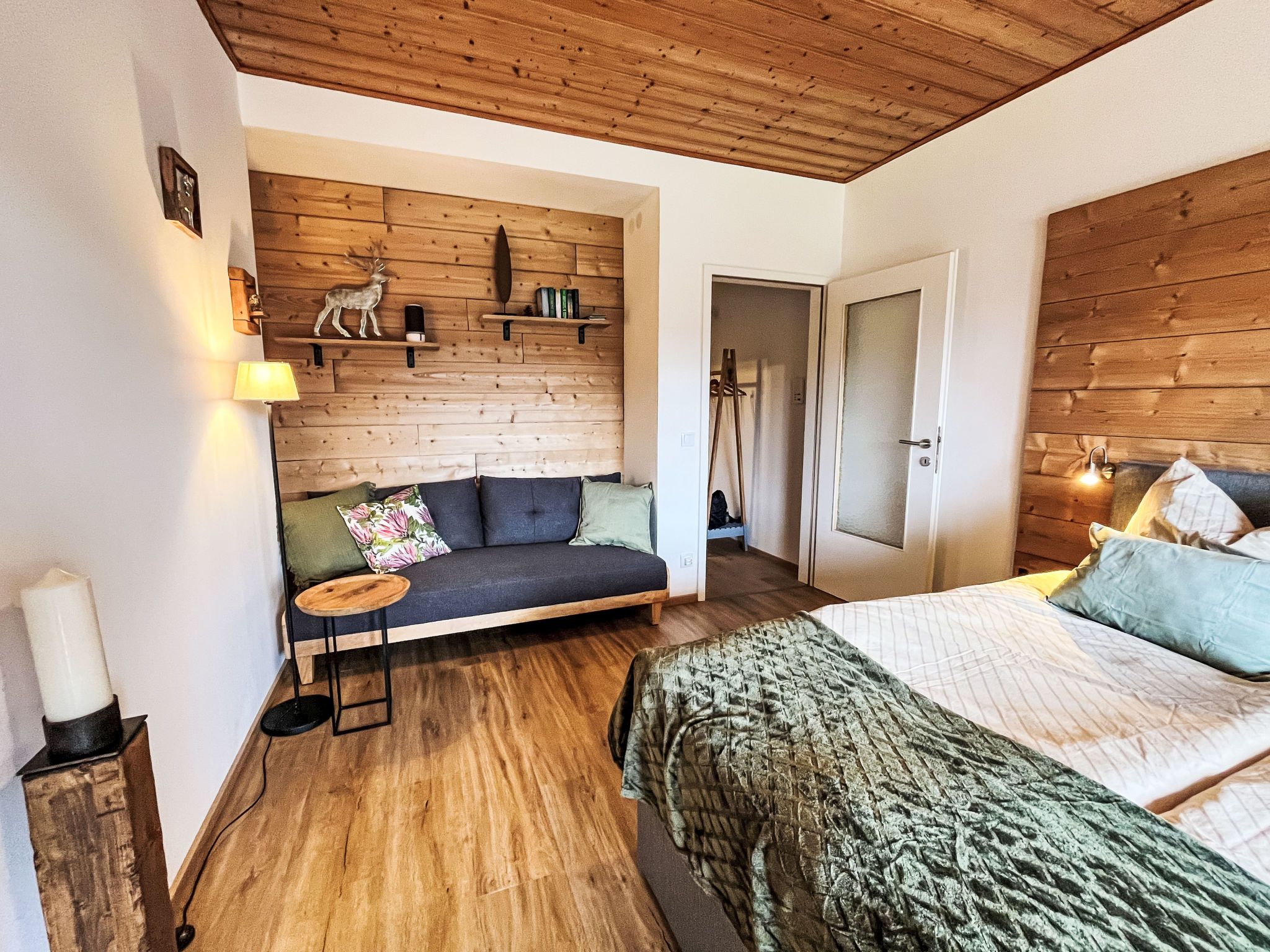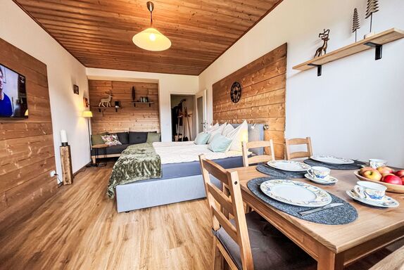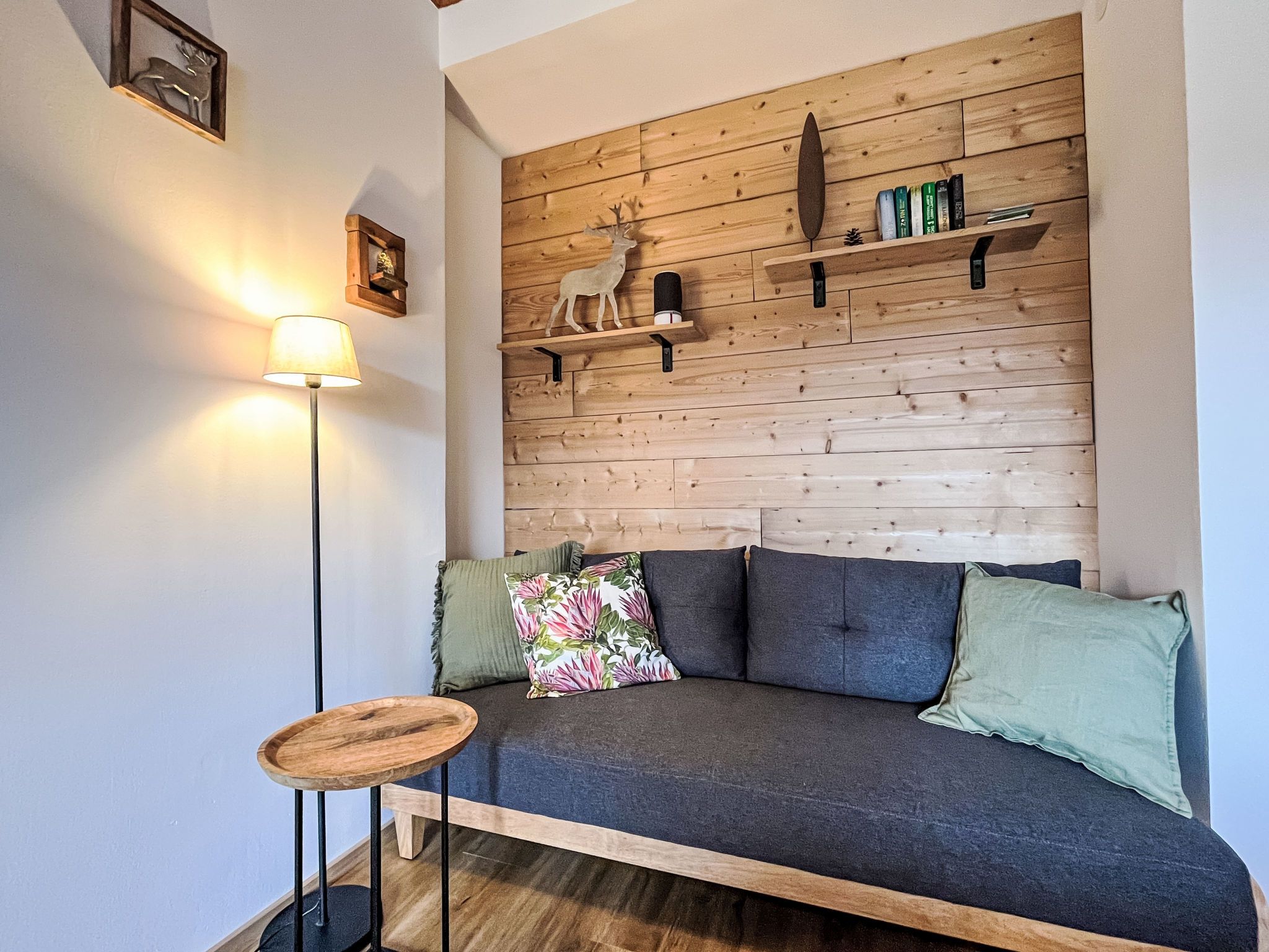 Wolf, 1-Zimmer-Wohnung 33 m2, im erhöhten Erdgeschoss. Objekt geeignet für 2 Erwachsene + 1 Kind. Renoviert im Jahre 2024: Wohn-/Schlafzimmer mit 1 Diwanbett, 1 Doppelbett, Esstisch, Sat-TV und Internationale TV-Sender (Flachbildschirm). Ausgang zur Loggia. Kleine Küche (Mini-Backofen, Backofen, 2 Glaskeramikplatten, Toaster, Wasserkocher, Mikrowelle, elektrische Kaffeemaschine, Kapseln für die Kaffeemaschine (Nespresso) extra). Dusche/WC. Heizung. Parkettboden. Balkon. Balkonmöbel. Zur Verfügung: Internet (Wireless LAN, gratis). Bitte beachten: Nichtraucher-Unterkunft.