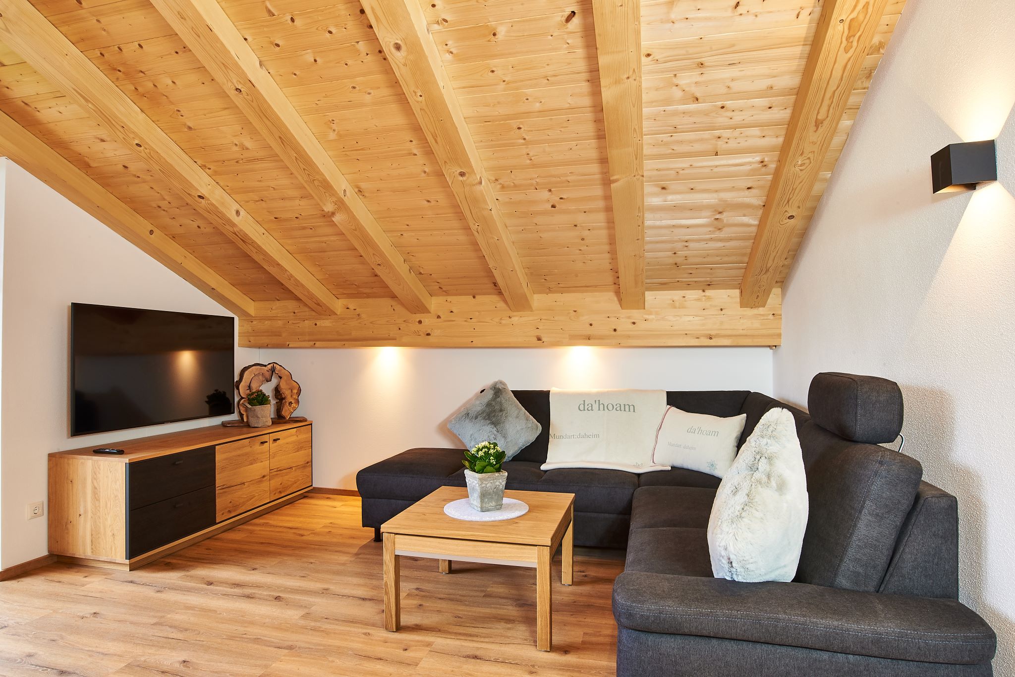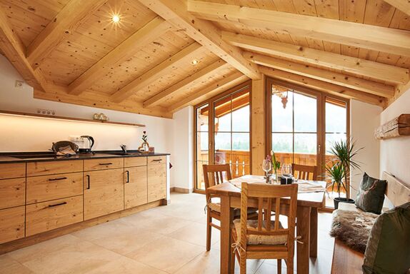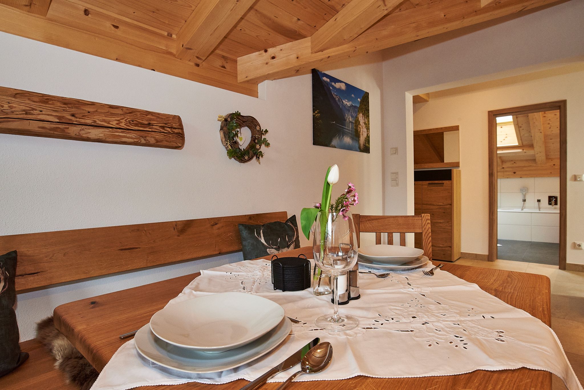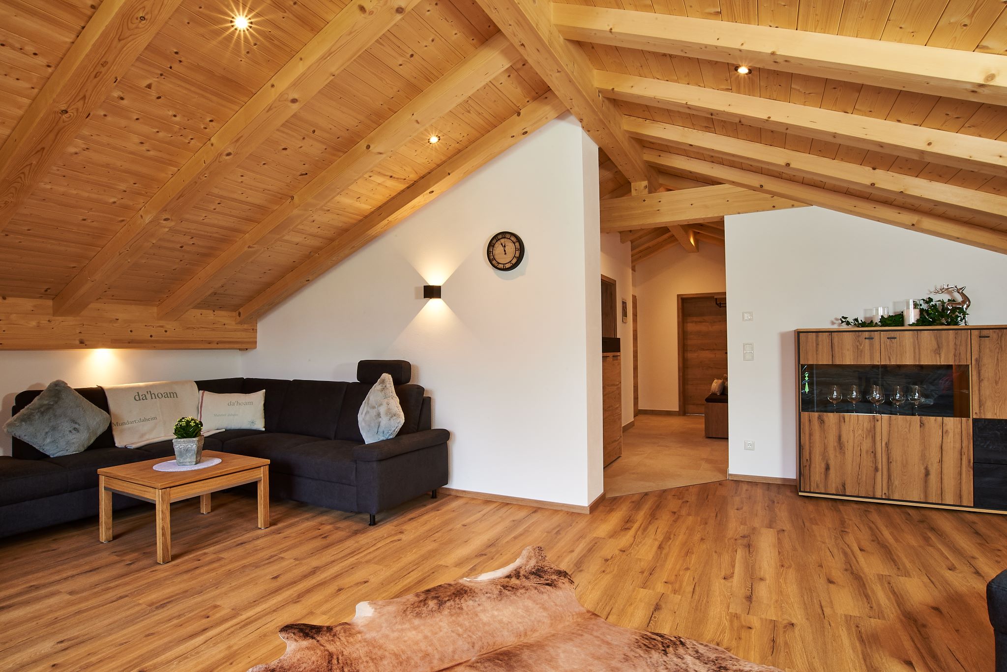 Wunderschöne Dachgeschoss-Ferienwohnung im Neubau mit Sichtdachstuhl. Ein großer Süd-und Ostbalkon bietet Ihnen einen schönen Blick auf die Berge. In der Dachgaube befindet sich eine im Landhausstil eingerichtete Küche. Das Schlafzimmer verfügt über ein 1,80x2m Bett. Das große Wohnzimmer ist mit einer Schlafcouch und Smart TV ausgestattet. Das vollausgestatte Bad mit Dusche, Badewanne, Waschmaschine, WC ist modern eingerichtet. Kostenloses W-Lan steht unseren Gästen zur Verfügung.Kinder werden in der Ferienwohnung Königssee gerne ab 14 Jahre beherbergt.
