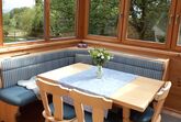 Die gemütliche Ferienwohnung Gaisberg befindet sich im Erdgeschoss. Sie hat zwei Schlafzimmer, eine Wohnküche, ein Badezimmer mit barrierefreier Dusche und einen großen Wintergarten mit Blick auf die Natur.