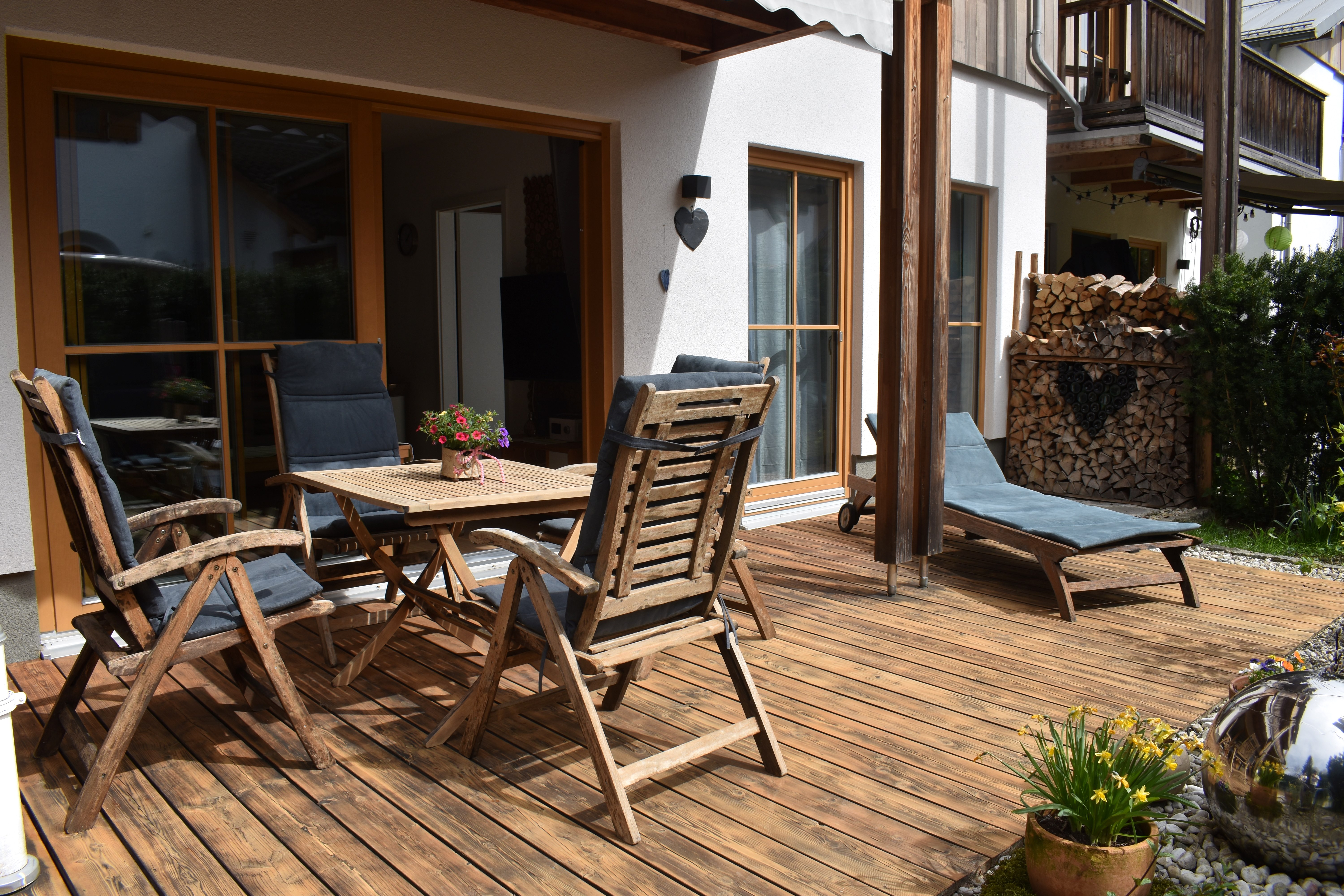 Die Wohnung beinhaltet einen großzügigen, offen gestalteten Wohn- Ess- und Kochbereich, 2 Schlafzimmer (1x mit Doppelbett und 1x mit 2 Einzelbetten) und 2 Bäder (einmal mit Dusche und Badewanne und einmal mit Dusche). Moderne TV Geräte finden Sie im Wohnzimmer und in einem Schlafzimmer. Die hochwertige Einrichtung der Wohnung lädt ein zum Entspannen. Alle Räume verfügen über Fußbodenheizung, die individuell regelbar ist; in den Wohnräumen können Sie den Komfort von Echtholzböden genießen. Sowohl von dem Wohnbereich als auch von beiden Schlafzimmern aus kann man auf die Terrasse gehen. Auf der 25m2 großen, möblierten, sonnigen und windgeschützten Holz Terrasse ist auch eine Grillmöglichkeit vorhanden. In dem kleinen blühenden Garten mit einem Zierbrunnen können Sie den Blick auf den Jenner genießen und die Seele baumeln lassen. Kinder sind bei uns herzlich willkommen!