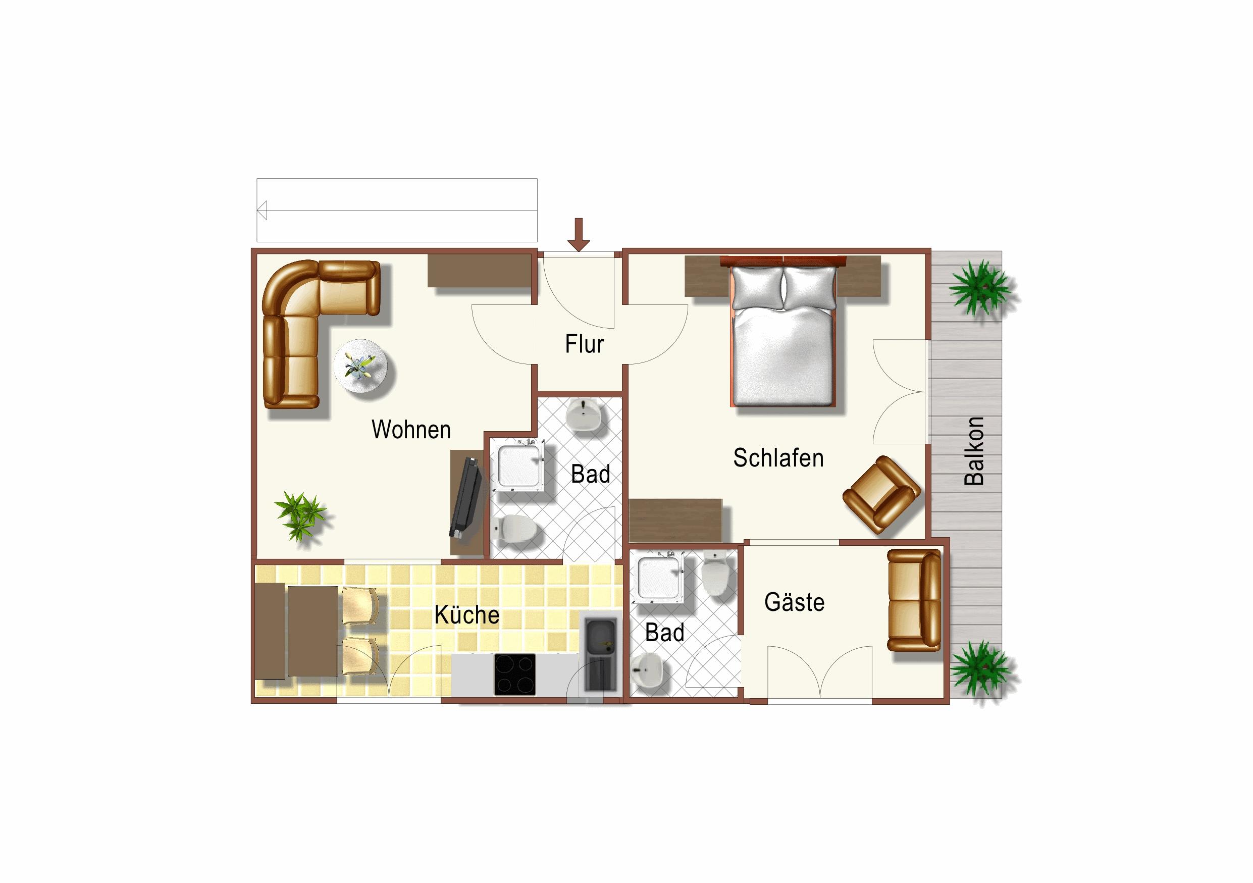 Wohnfläche 55 m²