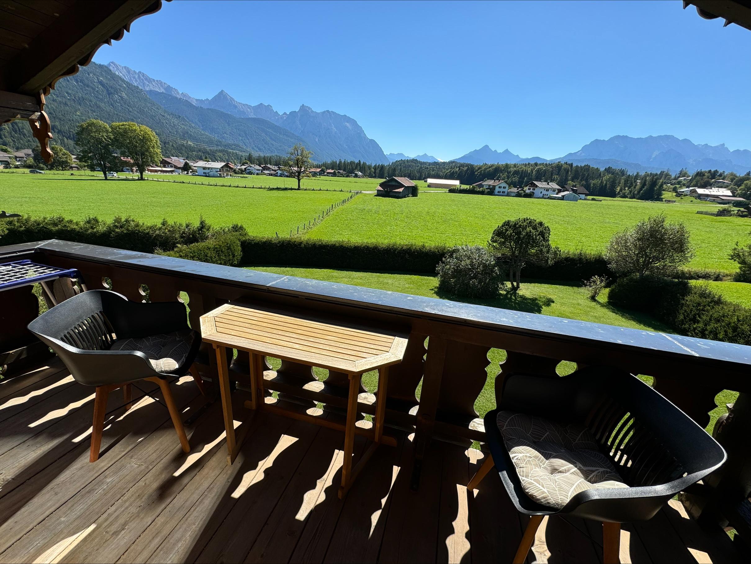 Unsere frisch renovierten Ferienwohnungen mit Blick auf das gesamte Karwendel- und Wettersteingebirge liegen in zentraler und ruhiger Lage im Herzen von Krün. Freuen Sie sich auf einen Balkon mit Ausblick auf eine atemberaubenden Bergkulisse, kostenfreies WLAN und Privatparkplätze am Haus.