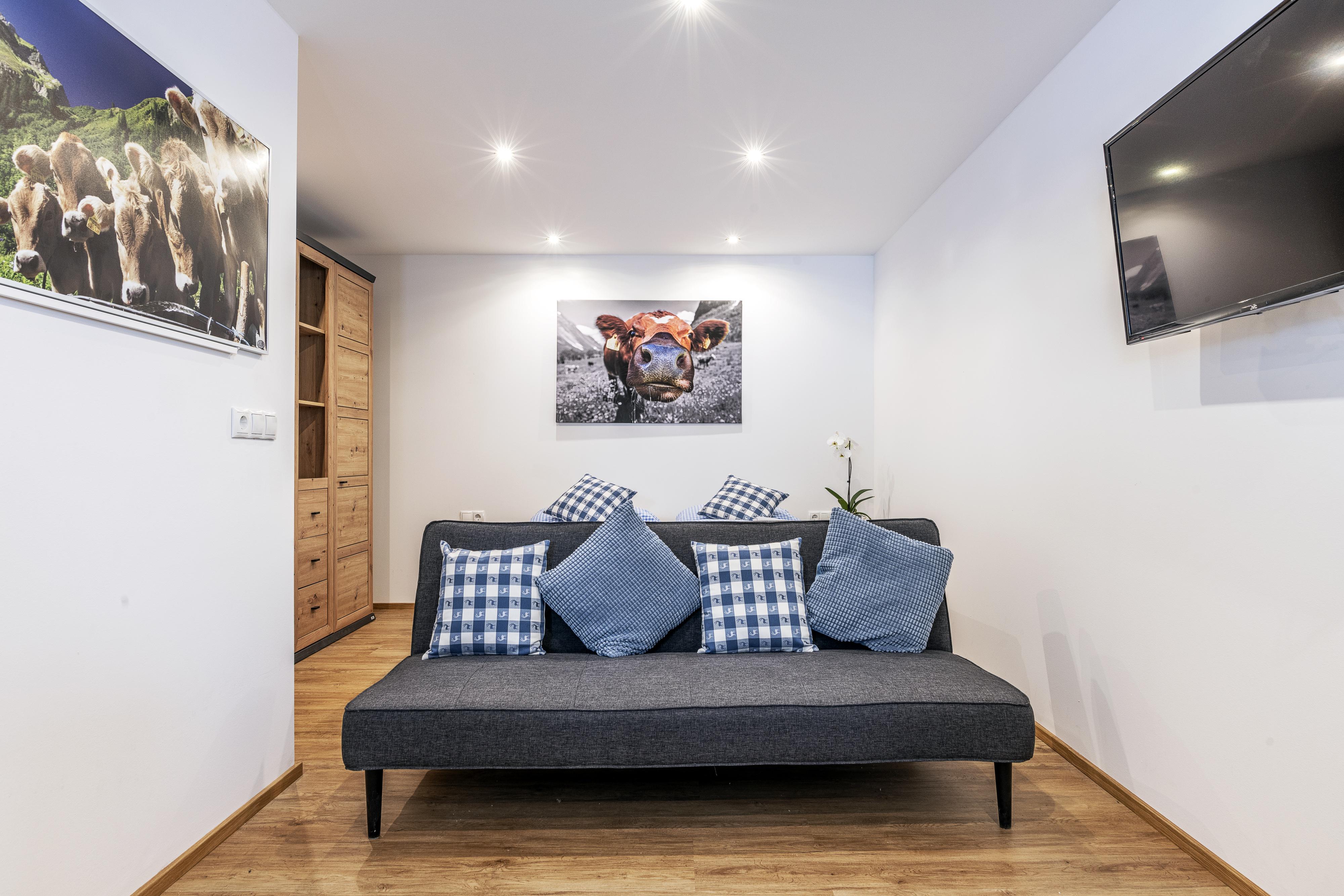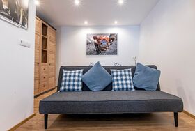 Unsere 38 m² große Wohnung ist ideal für Paare oder Familien mit Kind. Sie bietet ein Doppelbett, Couch, Schrank, Esstisch, Kabel-TV und eine kleine Küche mit Herd, Backofen, Mikrowelle, Toaster & Kaffeemaschine. Im Bad warten Dusche/WC, Bettwäsche & Handtücher auf euch. WLAN & Parkplatz gratis. Im Garten entspannt ihr mit traumhaftem Bergblick und den imposanten Skisprungschanzen.