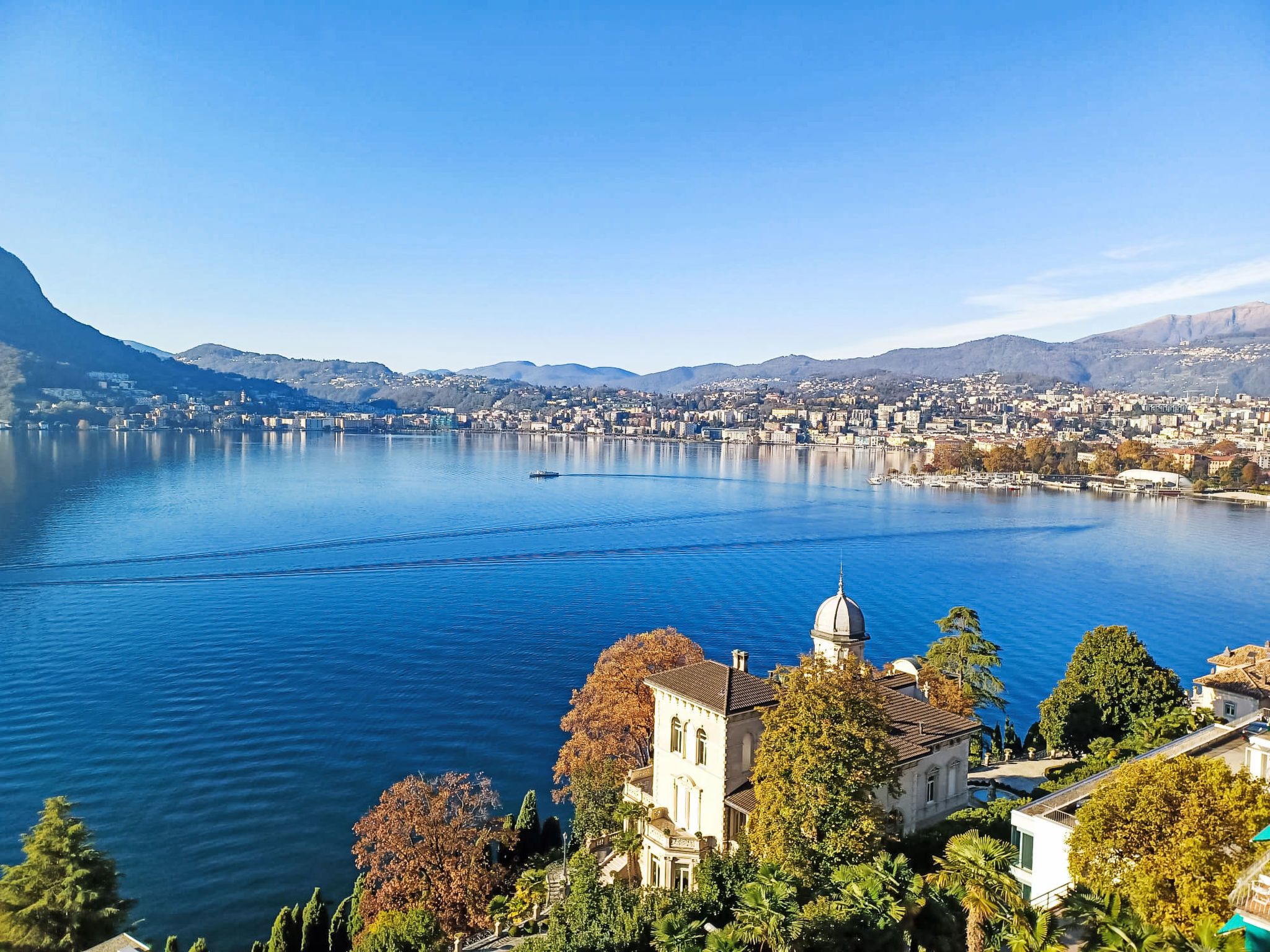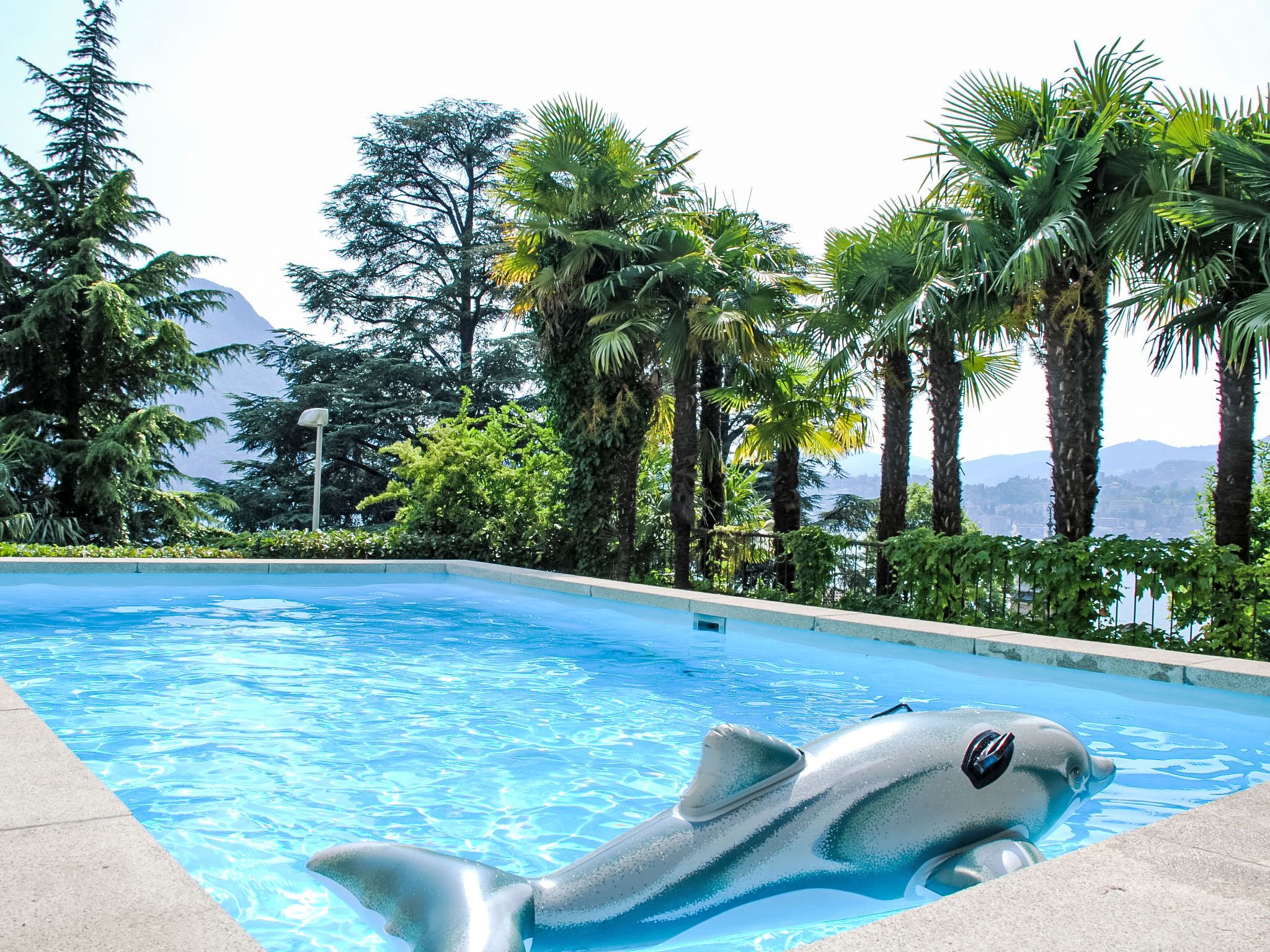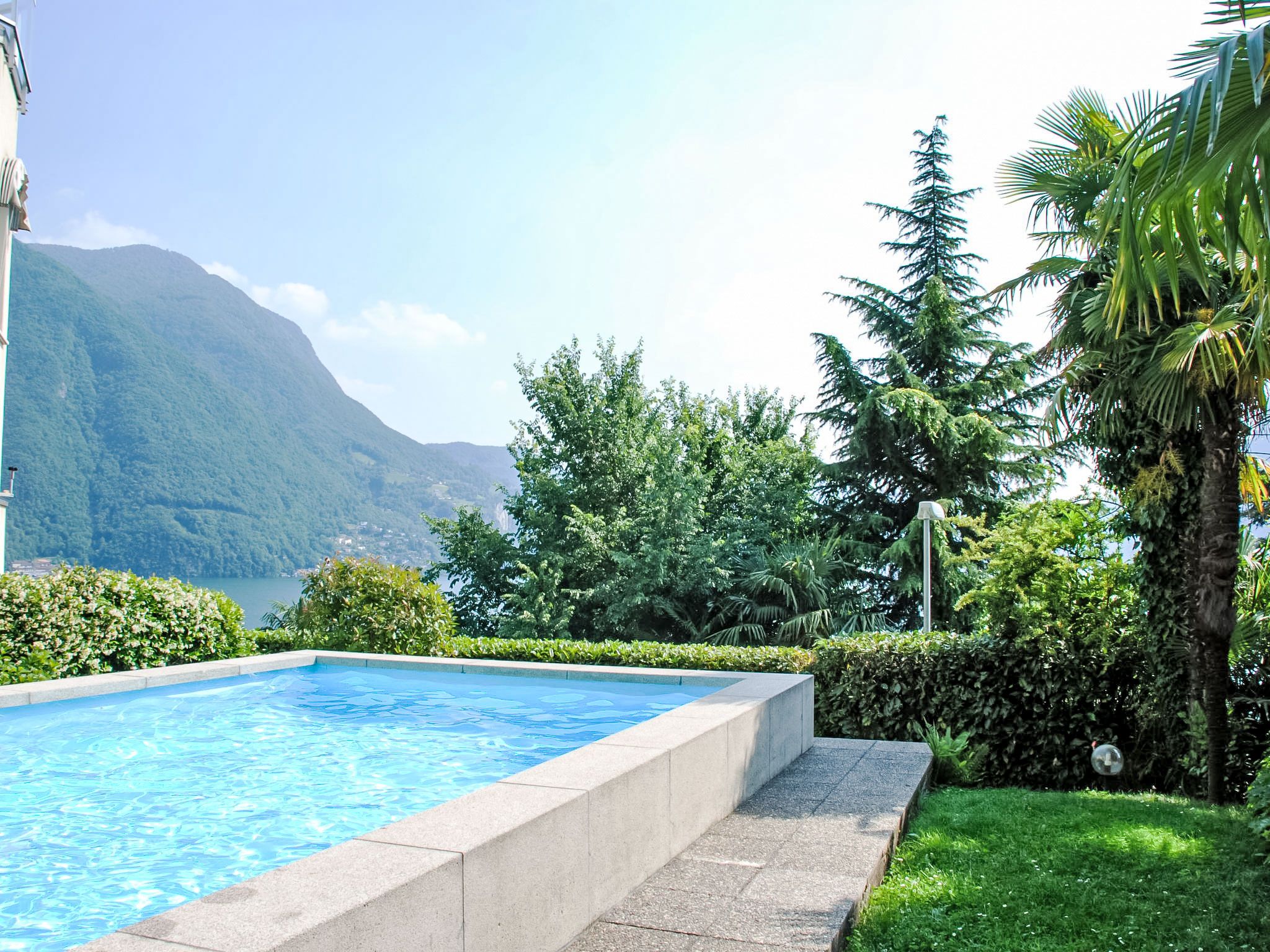 Castagnola 3 km von Lugano: Grosse, komfortable Residenz Eldorado. Am Ortsrand, ruhige, sonnige, erhöhte Lage, exzellente Lage: Absolut zentral und dennoch ruhig, 1 km vom See, Richtung Süden. Zur Mitbenutzung: kleiner Garten Pflanzen, Wiese, Schwimmbad eckig eingezäunt (3 x 4 m, saisonale Verfügbarkeit: 01.Jun. - 15.Sep.). Aussendusche, Sitzplatz, Gartenmöbel. Im Hause: Fahrstuhl, Einstellraum für Fahrräder, Zentralheizung, Waschmaschine, Wäschetrockner (zur Mitbenutzung, extra). Zufahrt bis zum Haus. Gemeinschaftsgarage beim Haus. Parkplatz/Garage nur für kleine - mittlere Fahrzeuge geeignet. Maße: Höhe 150 cm. Einkaufsgeschäft 1 km, Lebensmittelgeschäft 1 km, Supermarkt 1 km, Restaurant 300 m, Bar, Café, Zentrum zu Fuss in 20 Minuten erreichbar, Bushaltestelle Linie 2 1 m, Bahnstation Lugano SBB-CFF 3.6 km. Tennis 1 km, Wanderwege ab Haus 1 m. Nahe gelegene Sehenswürdigkeiten: Gandria-Porlezza-Como, Swissminiatur, Melide 9.2 km, Outlet Fowtown, Mendrisio 22 km, Mercato Como, Ponte Tresa, Luino IT. Bekannte Seen in der Umgebung sind gut erreichbar: Lago di Lugano, Lago di Como, Lago Maggiore. Wandergebiete: Monte Bré, Monte Tamaro, San Salvatore, Monte San Giorgio, Monte Lema. Bitte beachten: Babyausstattung auf Anfrage (extra).