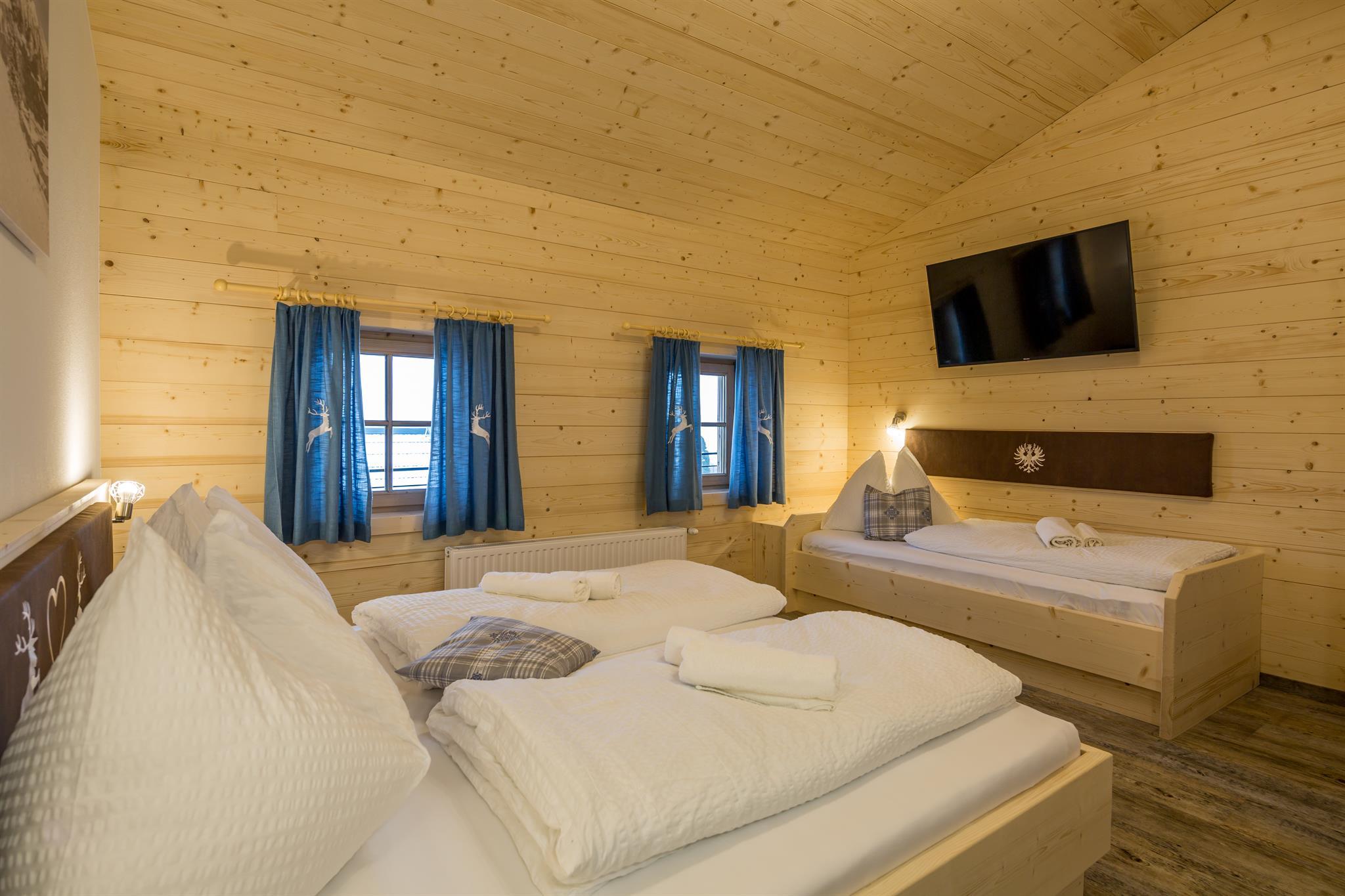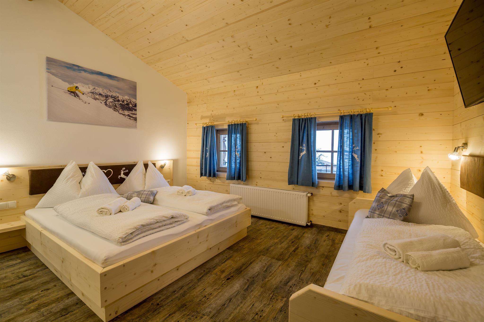 Die drei Schlafzimmer sind ein Doppelzimmer, ein Doppelzimmer mit Zusatzbett und ein Vierbettzimmer. Die Schlafräume sind mit feinem Teppich ausgelegt und zwei verfügen über einen modernen Fernseher.
