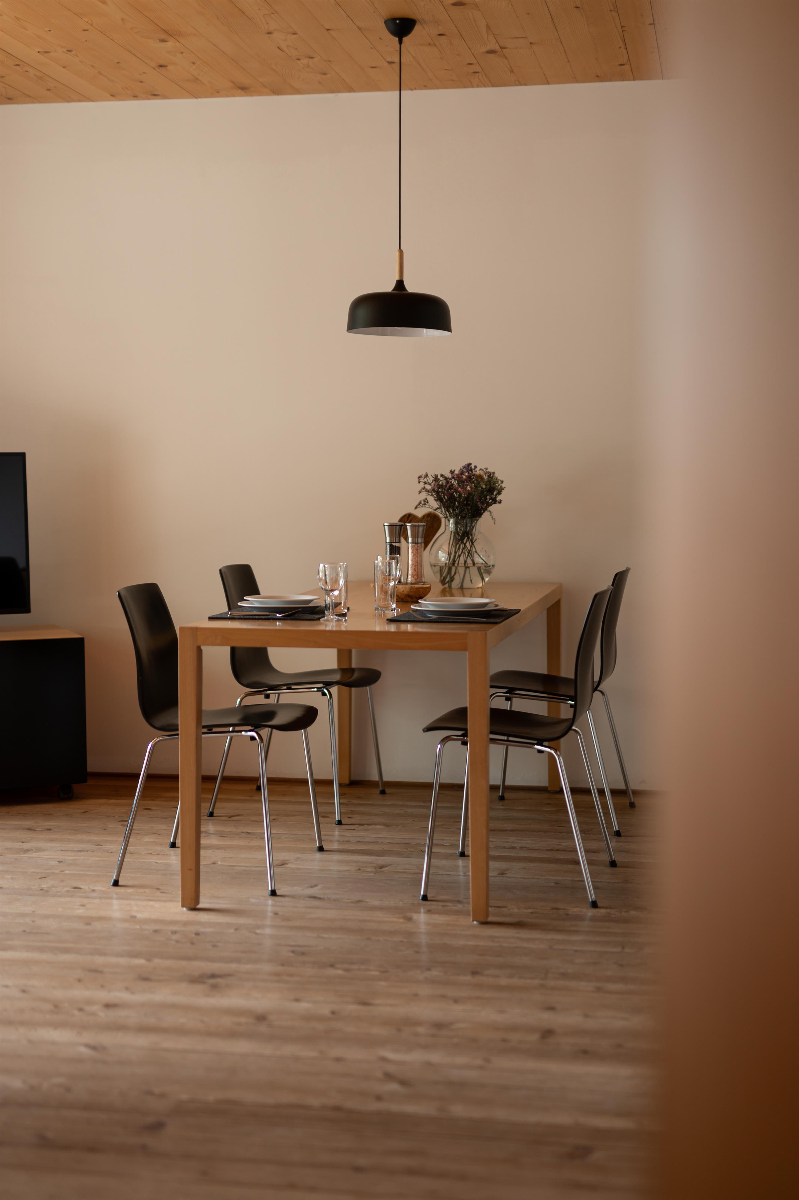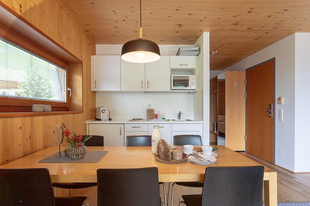 Stimmig ist die schlichte und moderne Ausstattung. Die großen Glasfronten holen die Natur direkt in Ihr zu Hause auf Zeit. Der Boden aus Lärchenholz und die reduzierte Möblierung laden ein, mit allen Sinnen zu geniessen. Hier können sie mit 2 bis 4 Personen ihren Urlaub in Warth, verbringen.