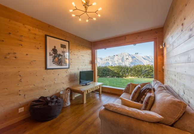 - Sehr helles Wohnzimmer mit Kaminofen, Kabelfernsehen, WIFI, Zugang zum Balkon mit atemberaubendem Blick auf die Berge.
