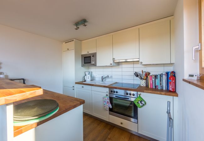 - Vollständig ausgestattete Küche mit grossem Kühlschrank, Backofen, Filterkaffeemaschine, Mikrowelle und Geschirrspüler.