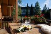 • Oberer Balkon: Direkt erreichbar vom offenen Wohnbereich mit Blick auf die Jungfrau bis zum Lobhorn. Verfügt über einen massiven Holztisch und Bänke.