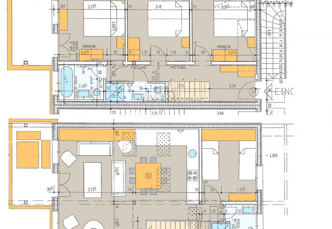 • 2. Schlafzimmer: Auf der Eingangsebene gelegen verfügt dieses Schlafzimmer über ein Doppelbett (180x200cm oder zwei Einzelbetten 90x200cm), passende Nachttische, Kleiderschrank, Regale, Nachttischlampen und 2 Stühle mit passenden Vorhängen.