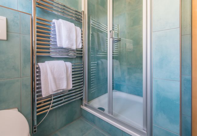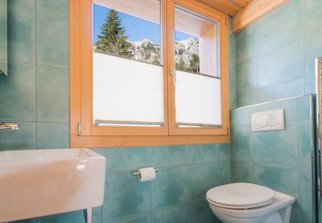 • 2. Duschraum: Inspiriert vom türkisfarbenen Wasser des Brienzer Sees verfügt dieser Duschraum im Obergeschoss über Spiegelschrank, Toilette, Waschbecken, beheizten Handtuchtrockner und Duschkabine.