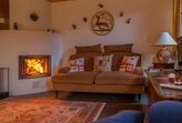 Der attraktive Wohn- und Essbereich ist eine Mischung aus modernem, elegantem Design und Charme. Die Ausstattung besteht aus wunderschönen antiken Möbeln, weichen Plüschmöbeln, einem prächtigen Kamin sowie Panoramafenstern. Ein großartiger Ort für gemütliche Winterabende am Feuer oder kühle Sommergetränke bei geöffneten Balkontüren.